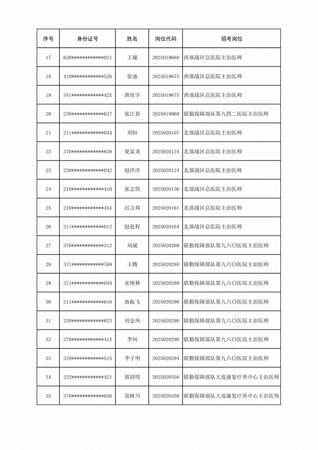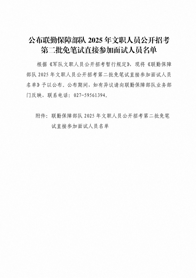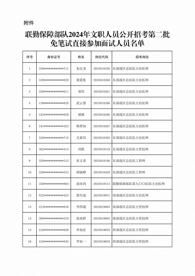 原文標(biāo)題:公布聯(lián)勤保障部隊(duì)2025年文職人員公開(kāi)招考第二批免筆試直接參加面試人員名單