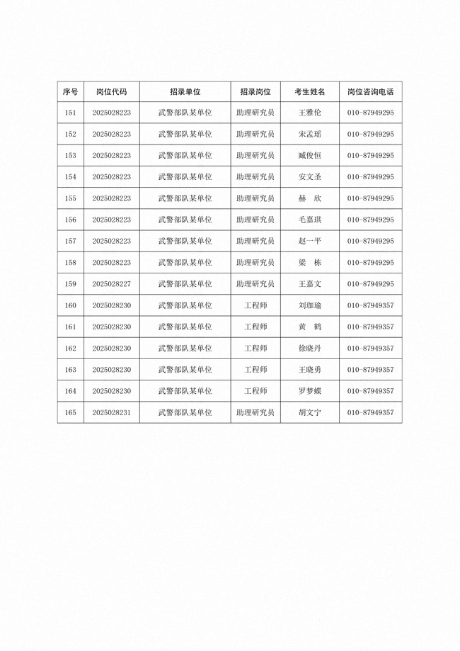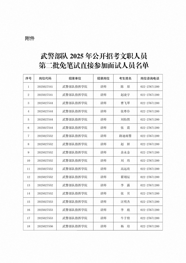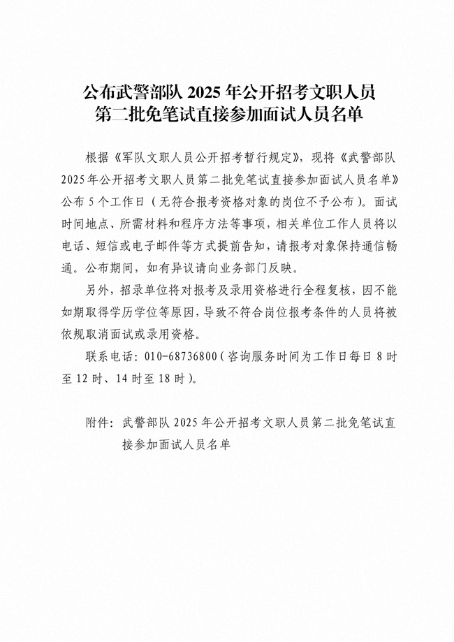 原文標(biāo)題:公布武警部隊(duì)2025年公開(kāi)招考文職人員第二批免筆試直接參加面試人員名單