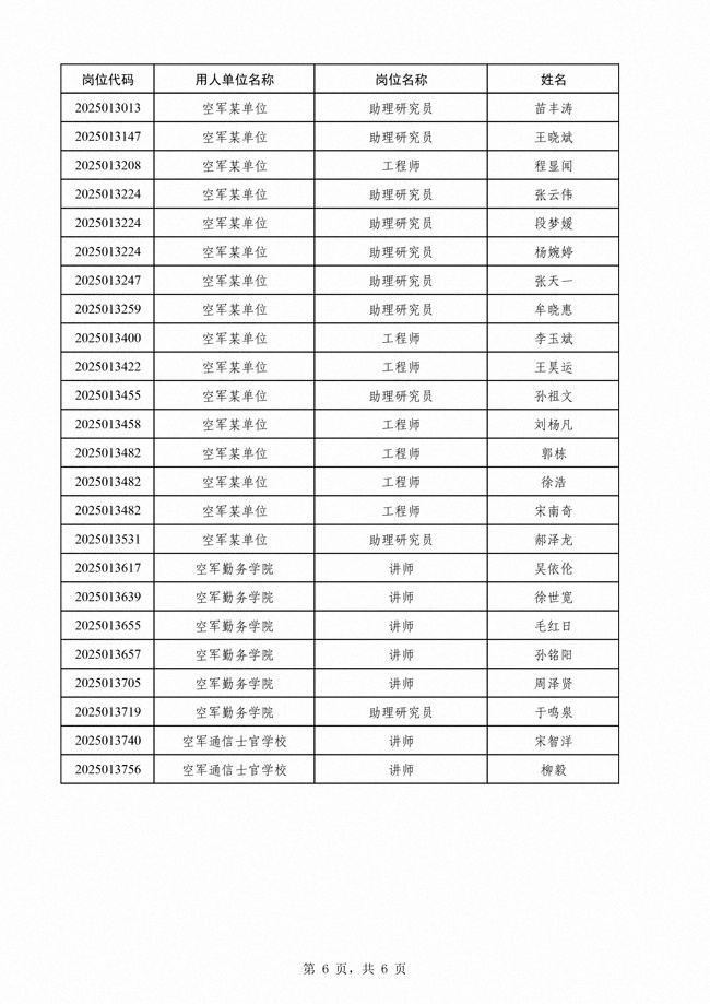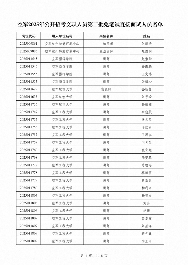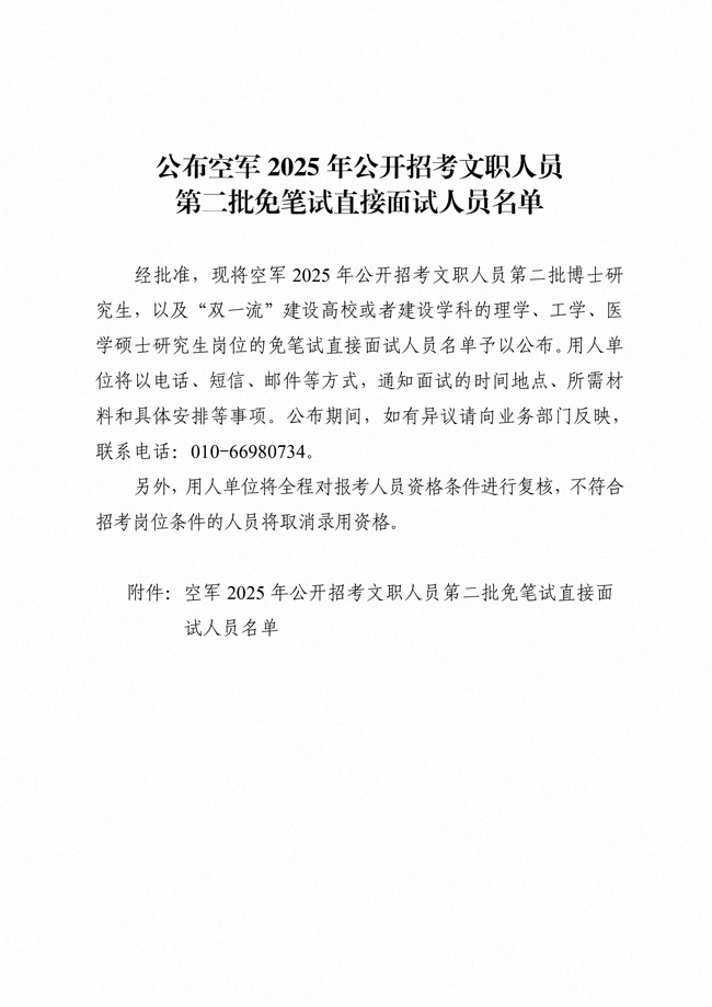 原文標題:公布空軍2025年公開招考文職人員第二批免筆試直接面試人員名單