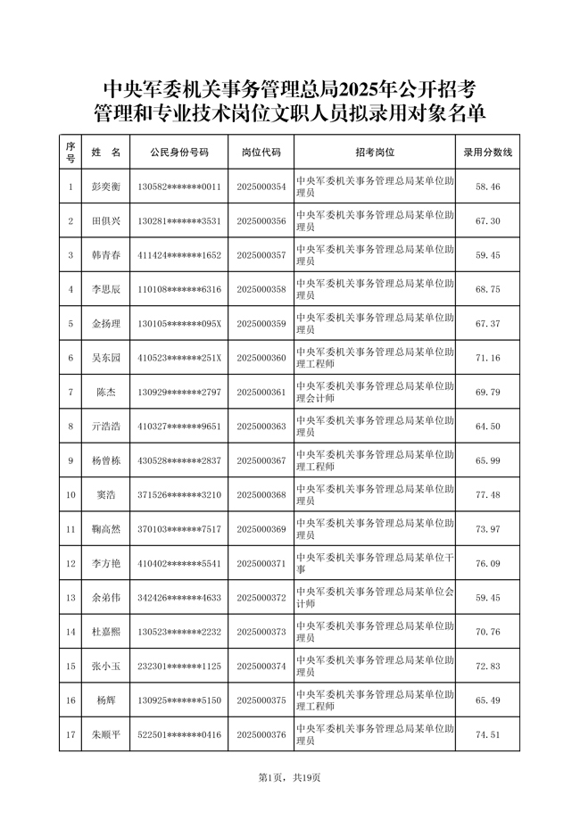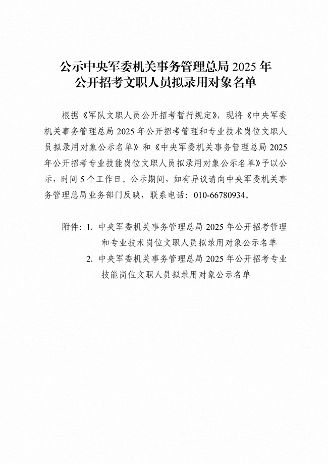 原文標(biāo)題:公示中央軍委機(jī)關(guān)事務(wù)管理總局2025年公開招考文職人員擬錄用對(duì)象名單