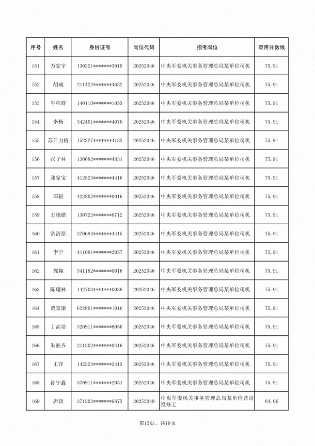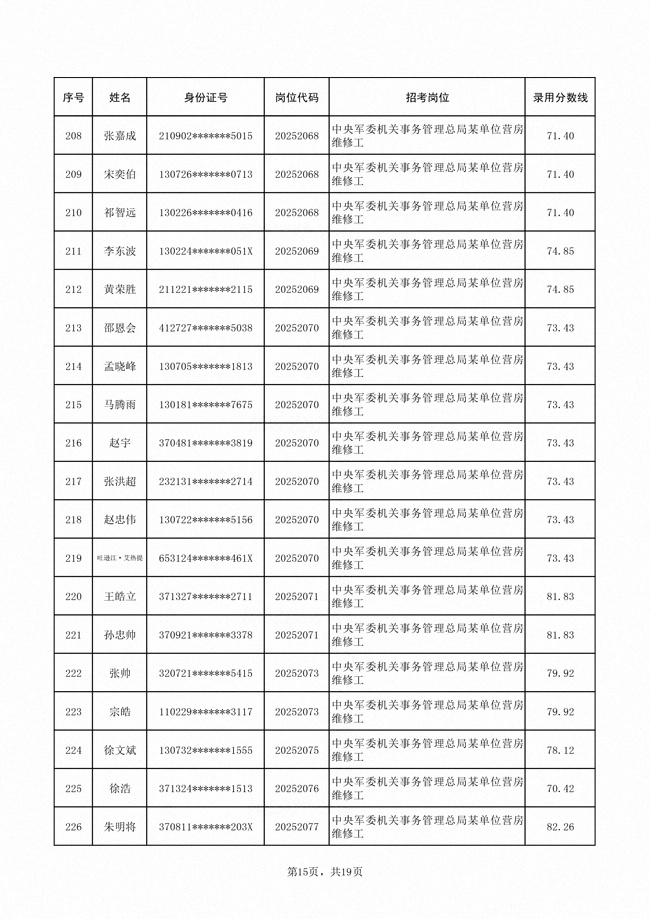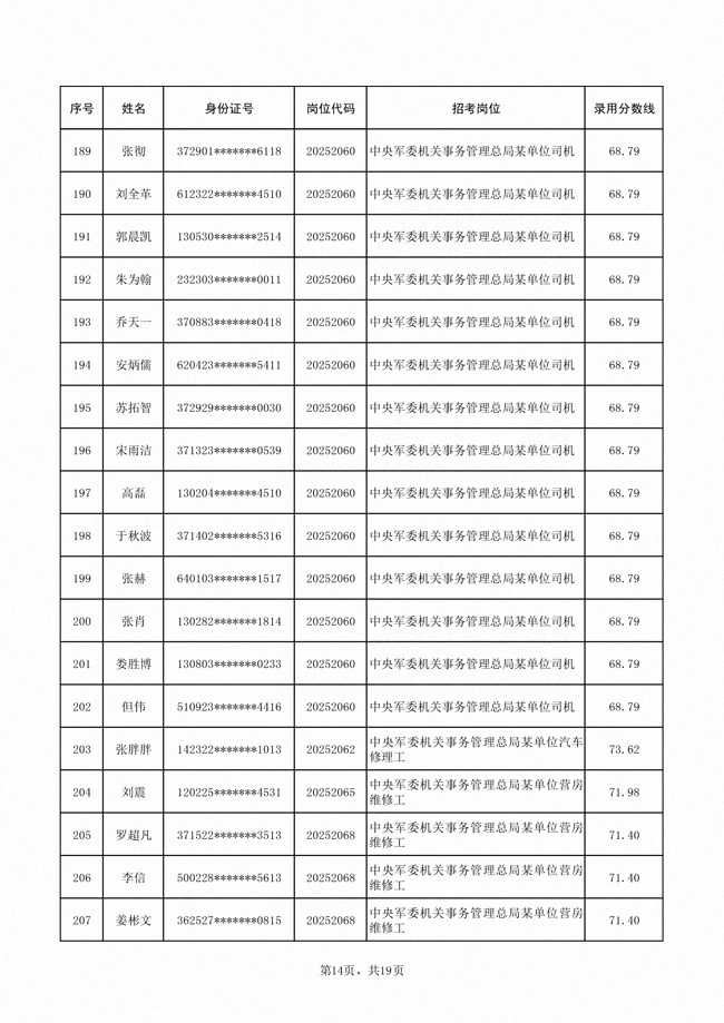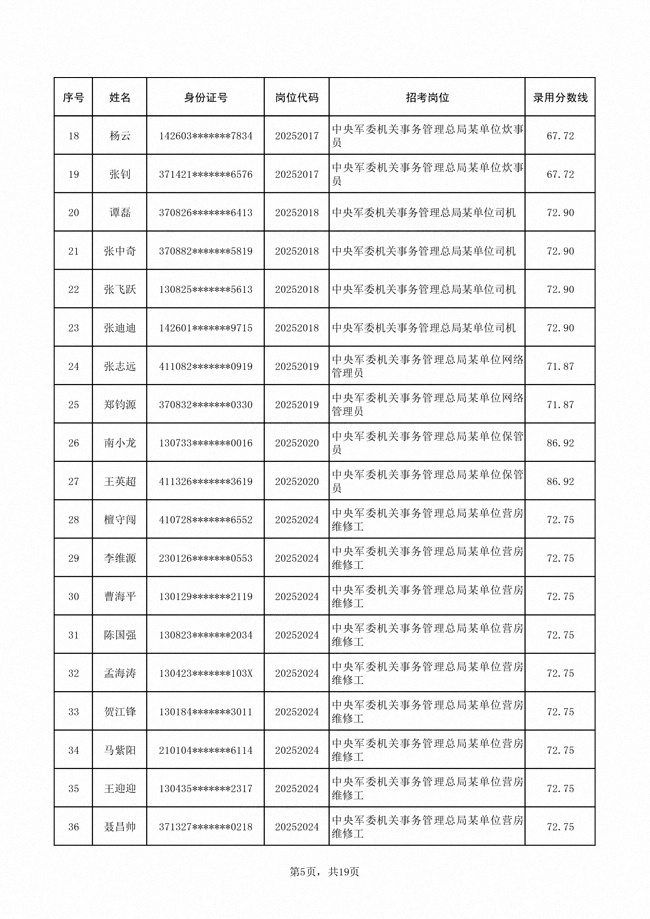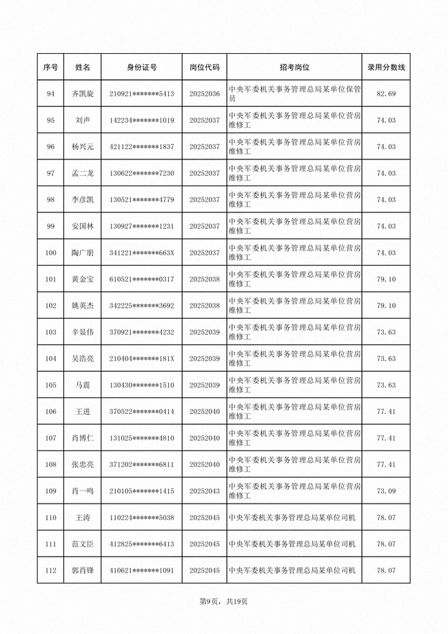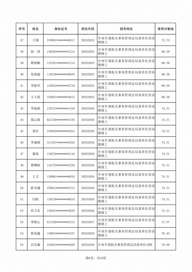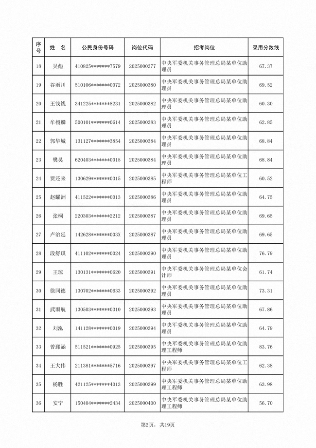 2025年武裝部文職人員擬錄用名單(含上岸分?jǐn)?shù)線) 2025-10-09