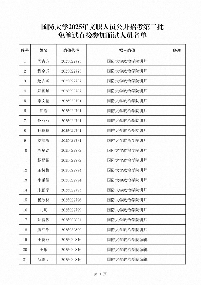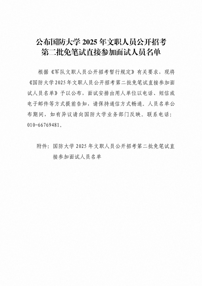 原文標(biāo)題:公布國(guó)防大學(xué)2025年文職人員公開(kāi)招考第二批免筆試直接參加面試人員名單