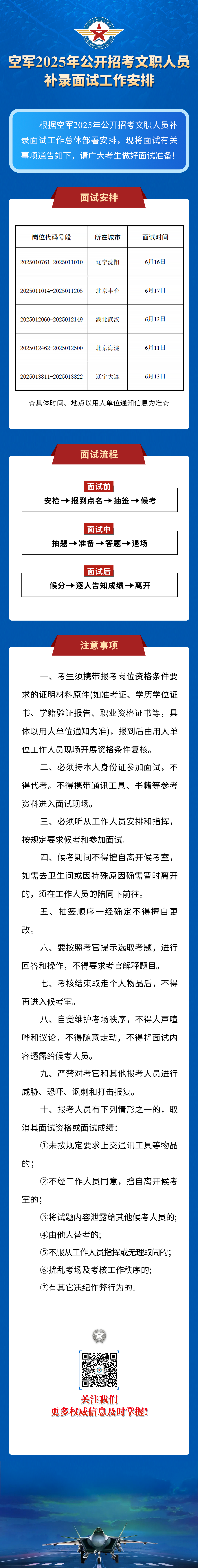 原文標(biāo)題:空軍2025年公開招考文職人員補(bǔ)錄面試工作安排