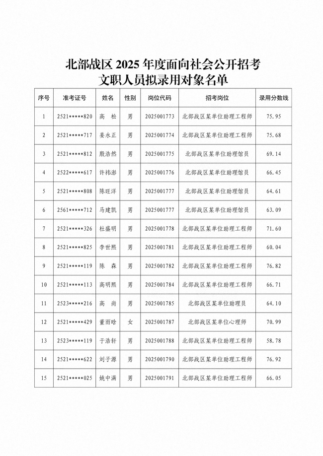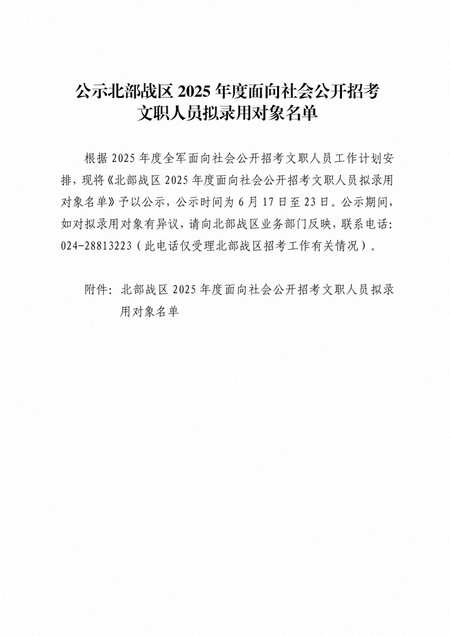 原文標(biāo)題:公示北部戰(zhàn)區(qū)2025年度面向社會(huì)公開招考文職人員擬錄用對(duì)象名單