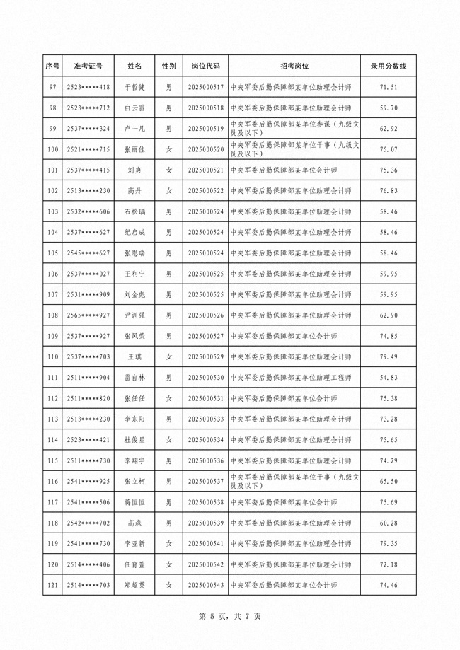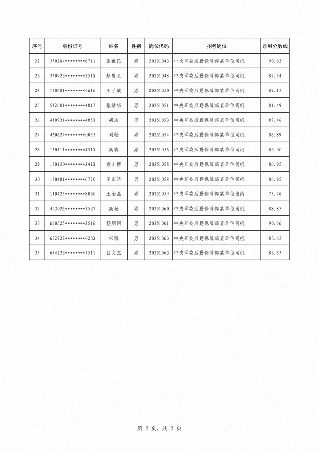 2025年武裝部文職人員擬錄用名單(含上岸分?jǐn)?shù)線) 2025-10-09