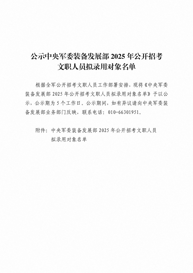 原文標(biāo)題:公示中央軍委裝備發(fā)展部2025年公開(kāi)招考文職人員擬錄用對(duì)象名單