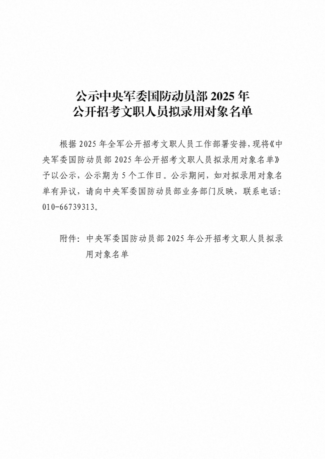原文標(biāo)題:公示中央軍委國防動員部2025年公開招考文職人員擬錄用對象名單