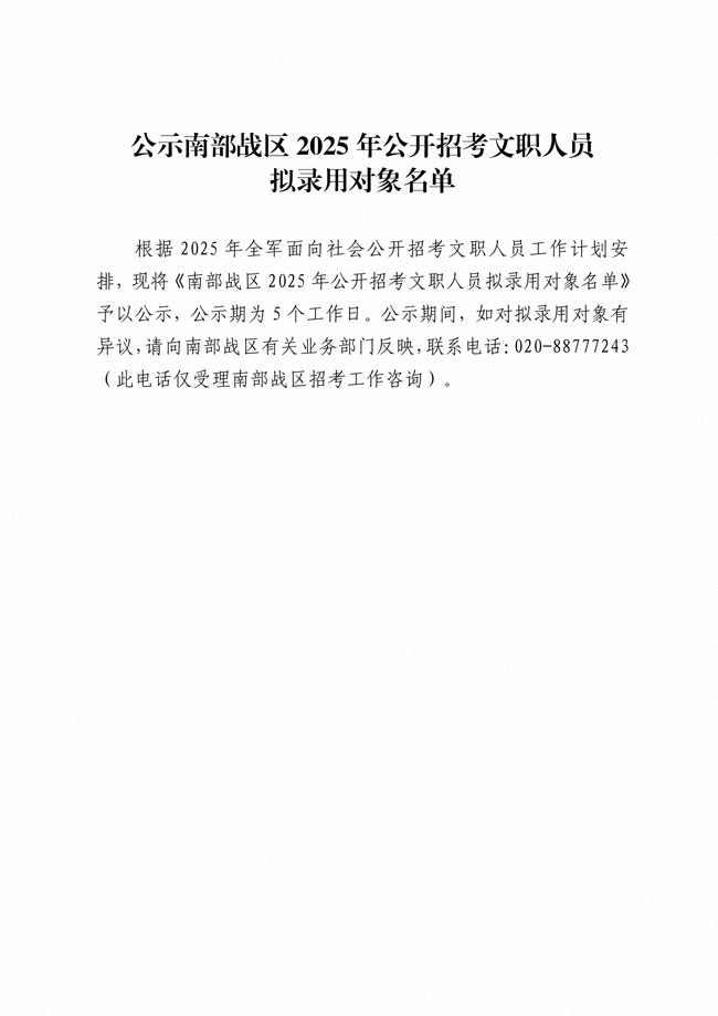 原文標(biāo)題:公示南部戰(zhàn)區(qū)2025年公開招考文職人員擬錄用對(duì)象名單