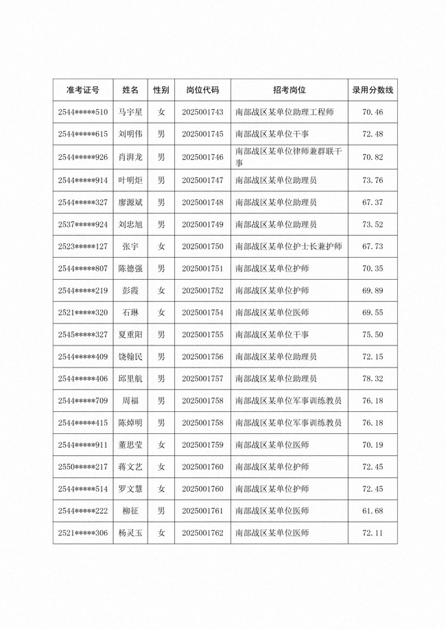 2025年武裝部文職人員擬錄用名單(含上岸分?jǐn)?shù)線) 2025-10-09