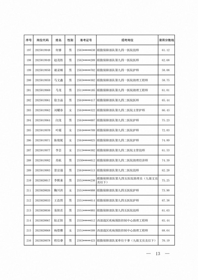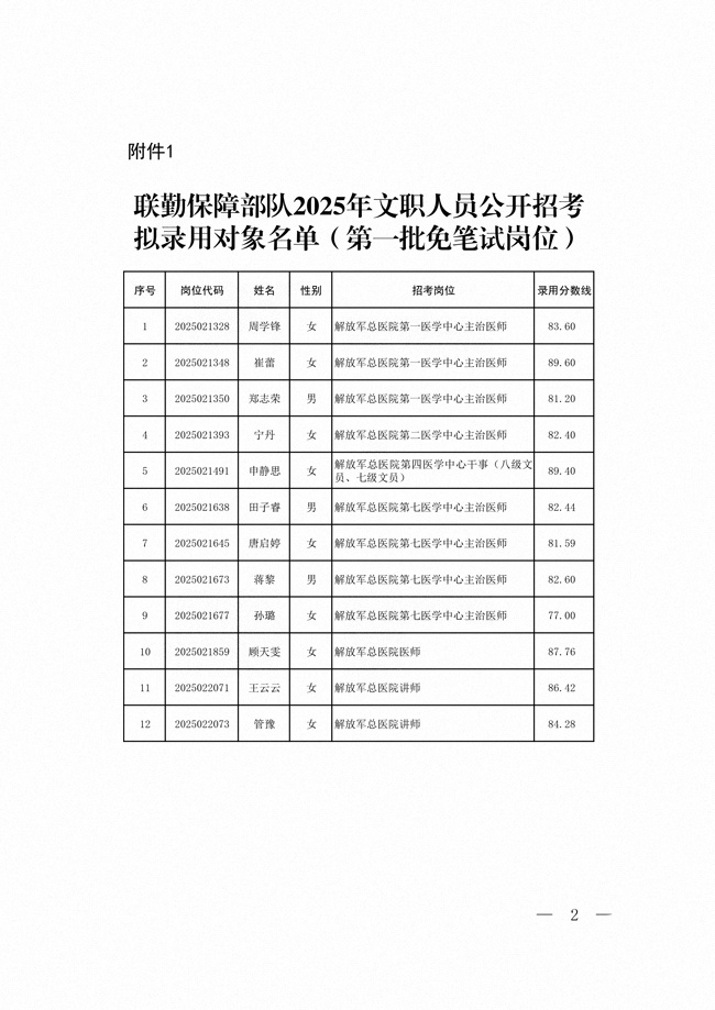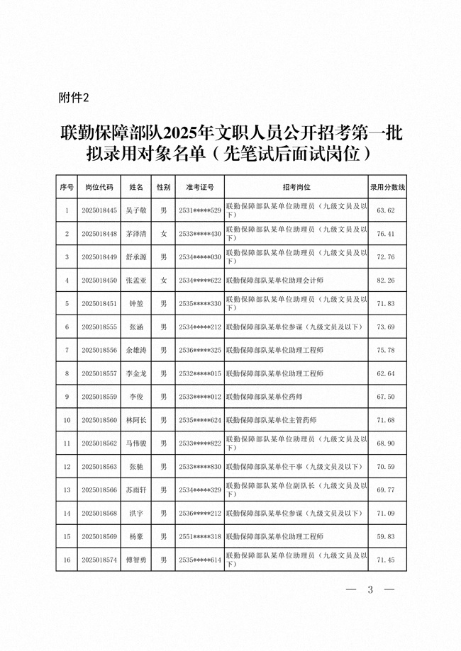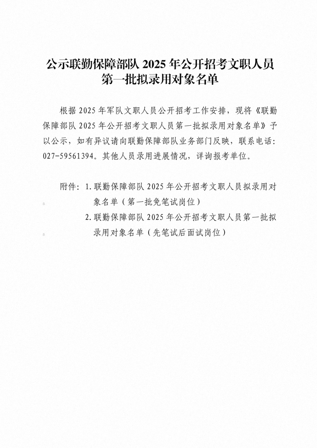 原文標(biāo)題:公示聯(lián)勤保障部隊(duì)2025年公開招考文職人員第一批擬錄用對(duì)象名單