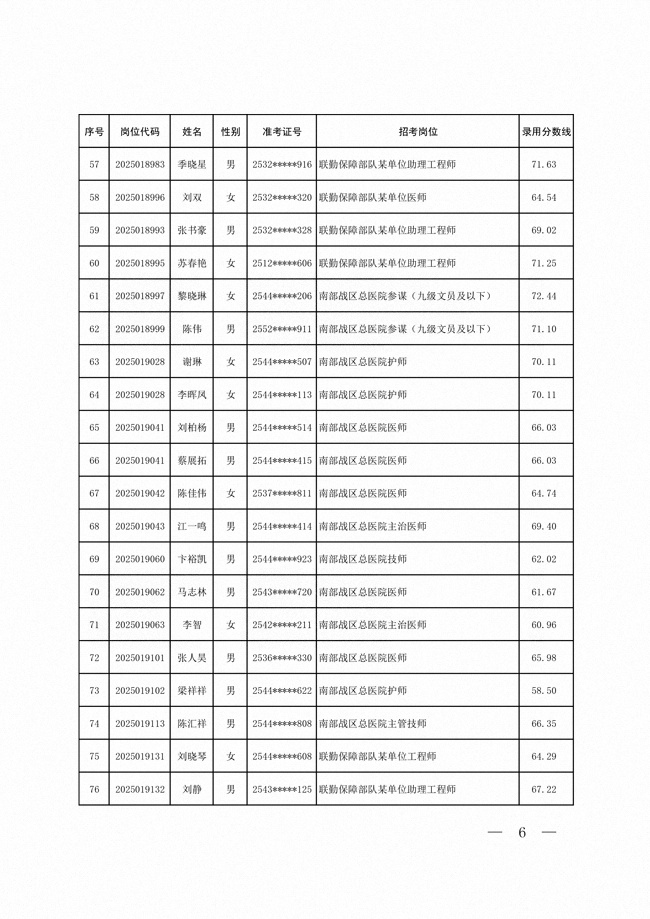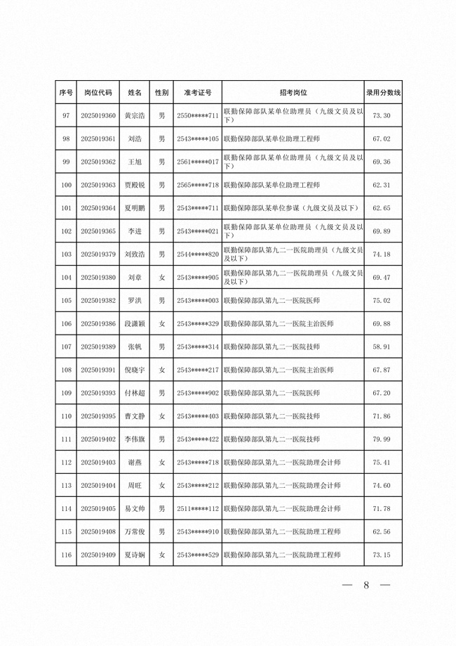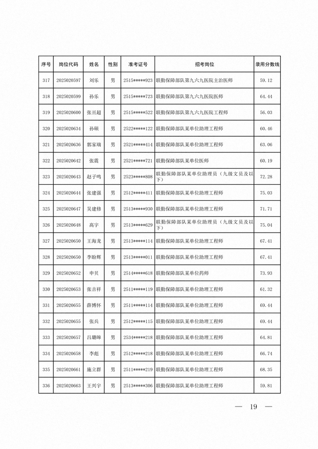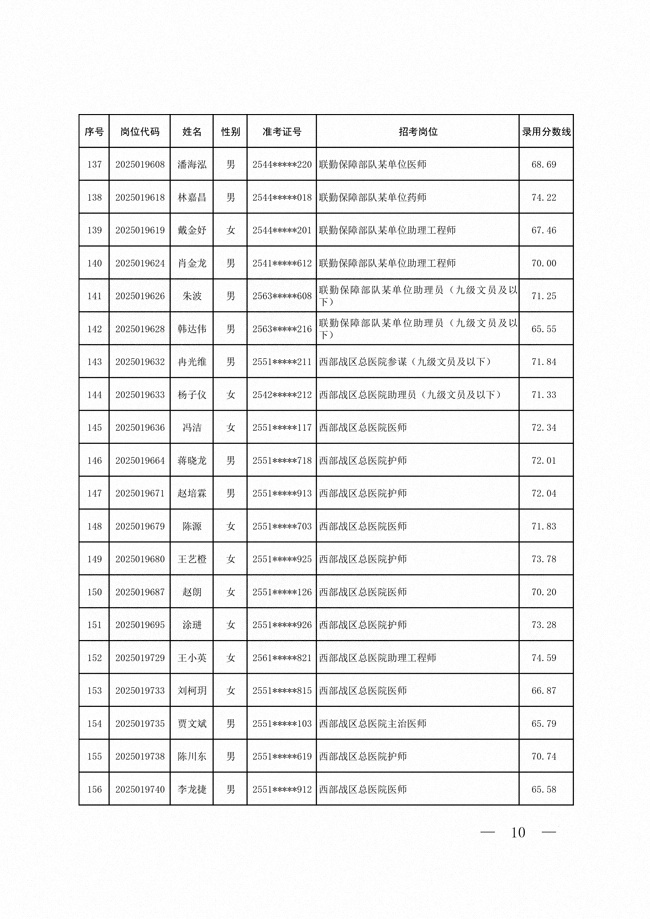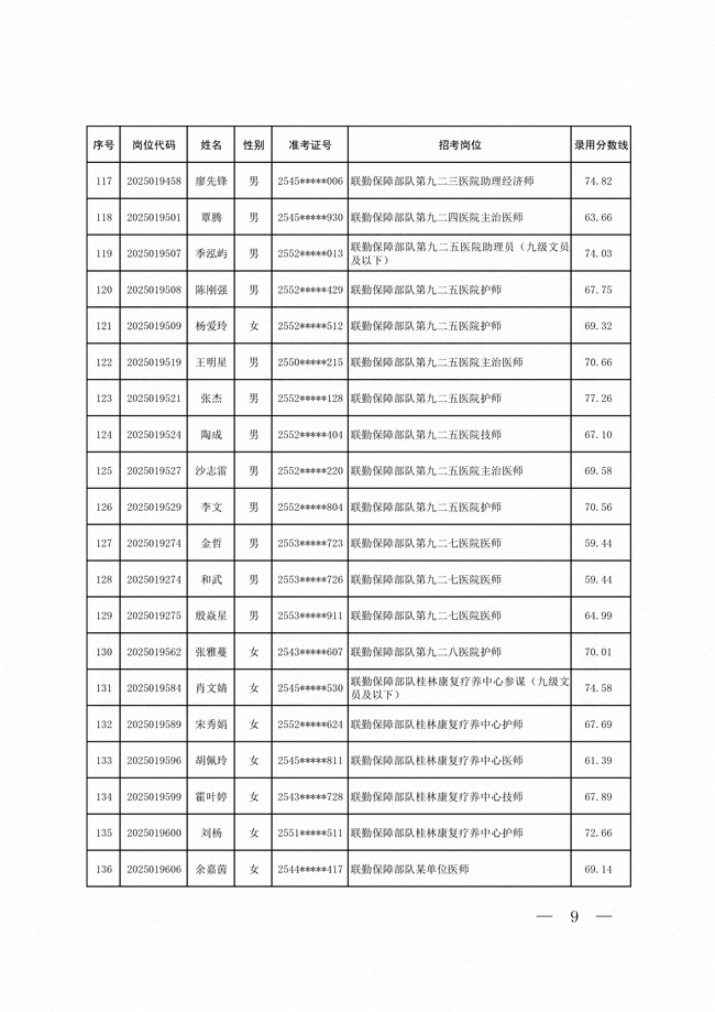 2025年武裝部文職人員擬錄用名單(含上岸分?jǐn)?shù)線) 2025-10-09