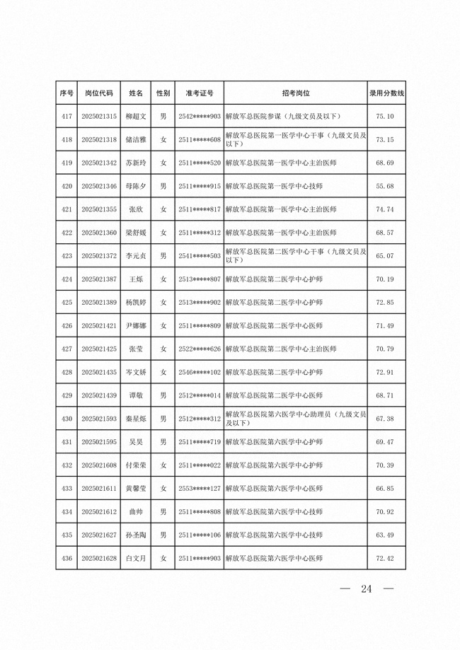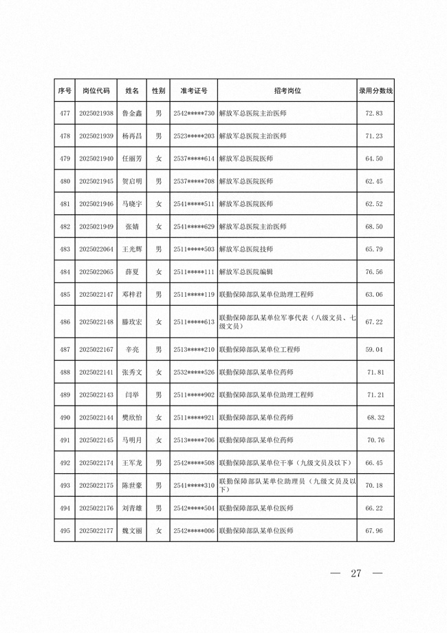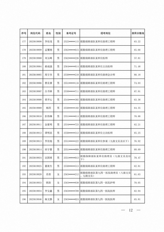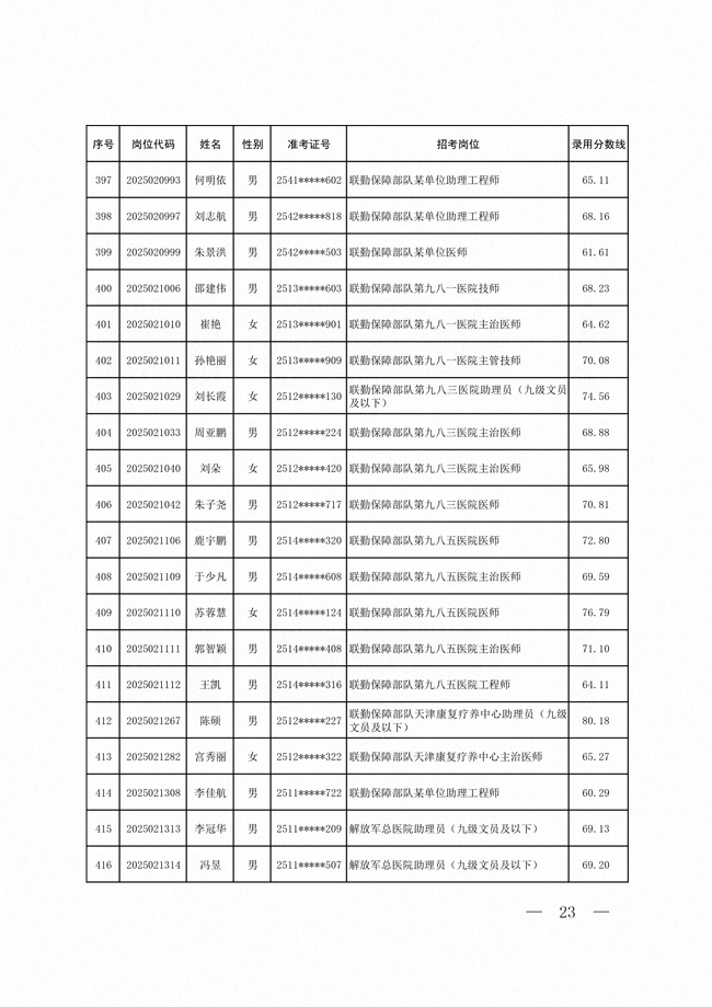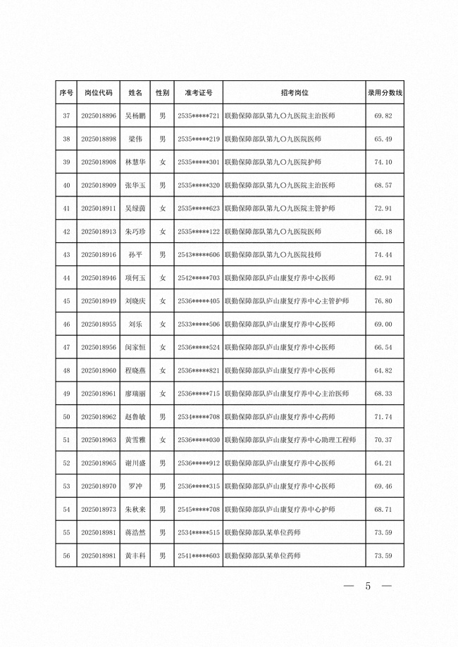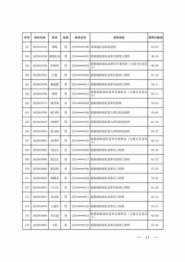 2025年武裝部文職人員擬錄用名單(含上岸分?jǐn)?shù)線) 2025-10-09