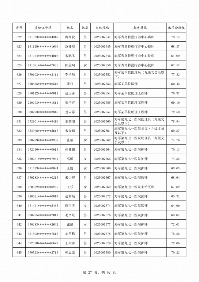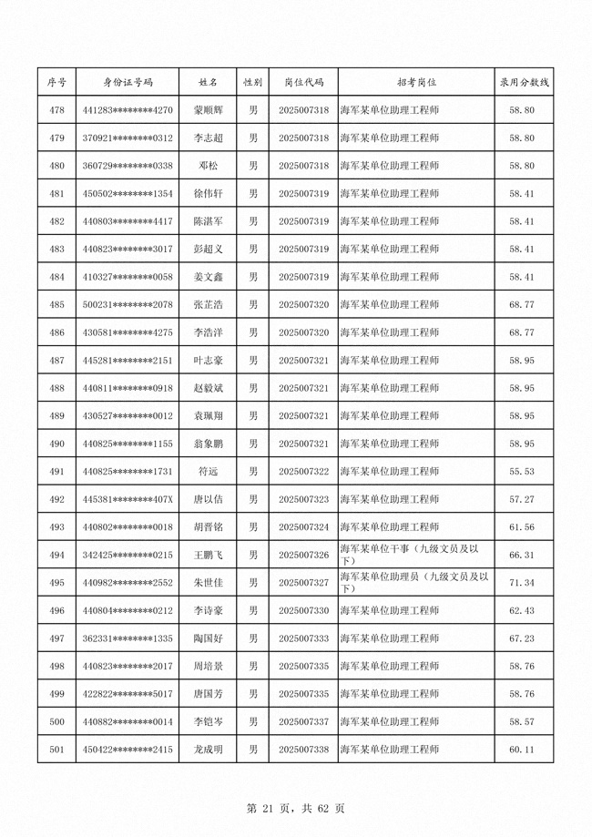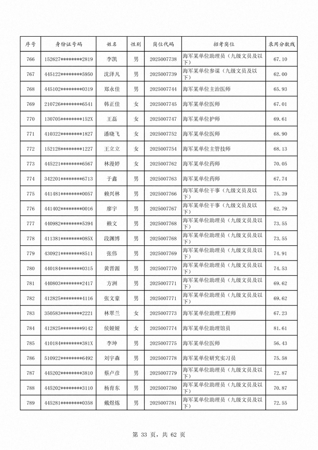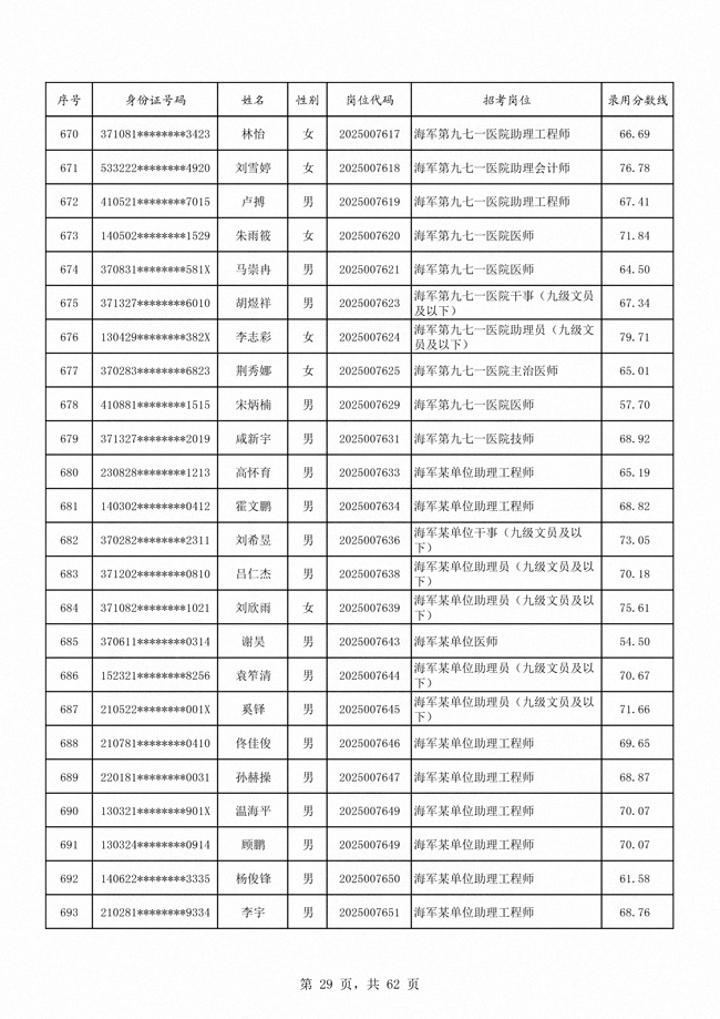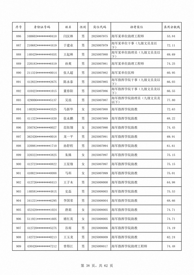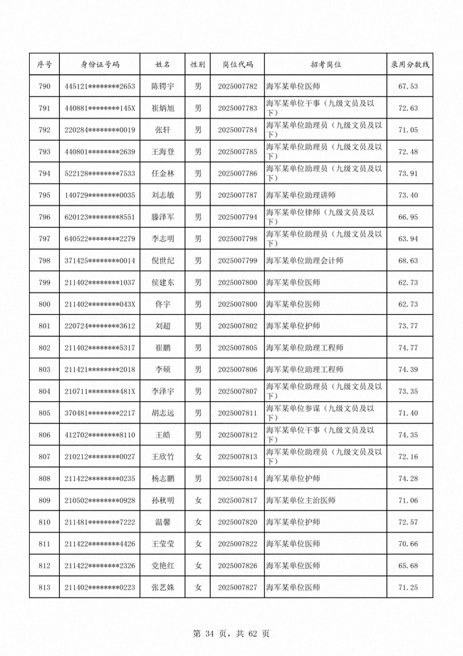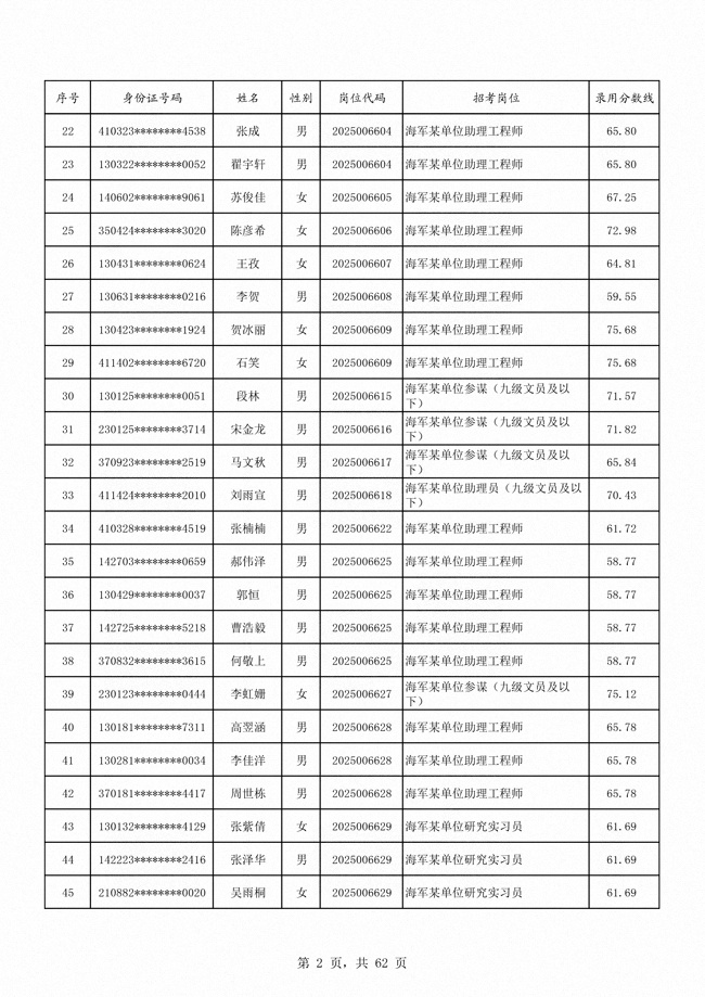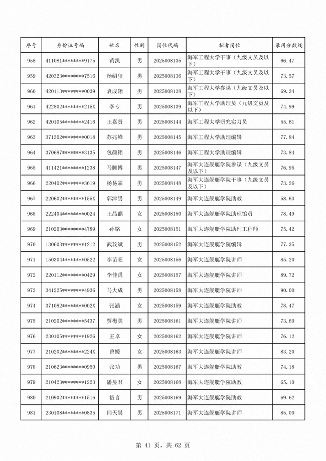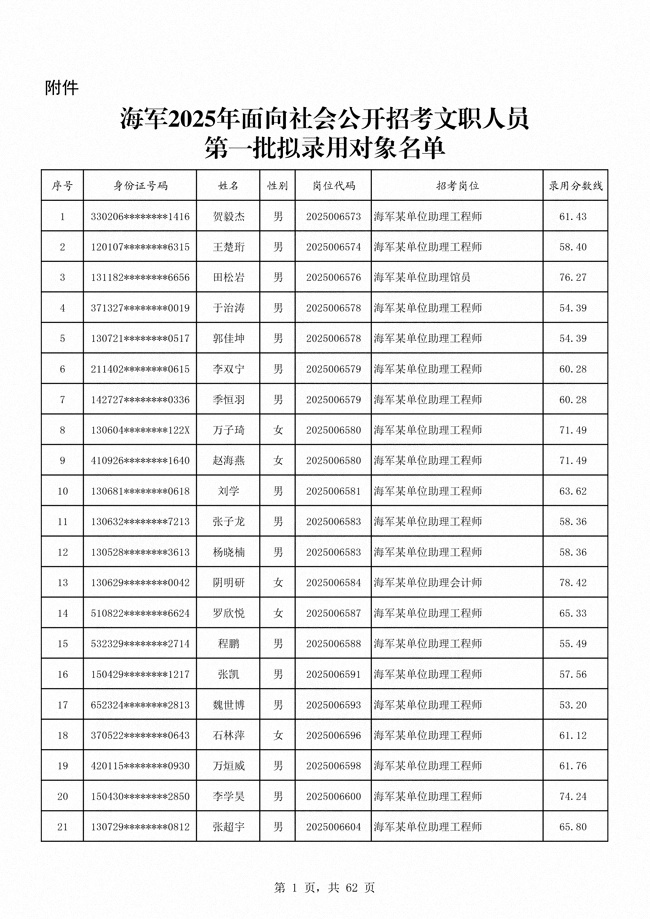 原文標題:公示海軍2025年面向社會公開招考文職人員第一批擬錄用對象名單