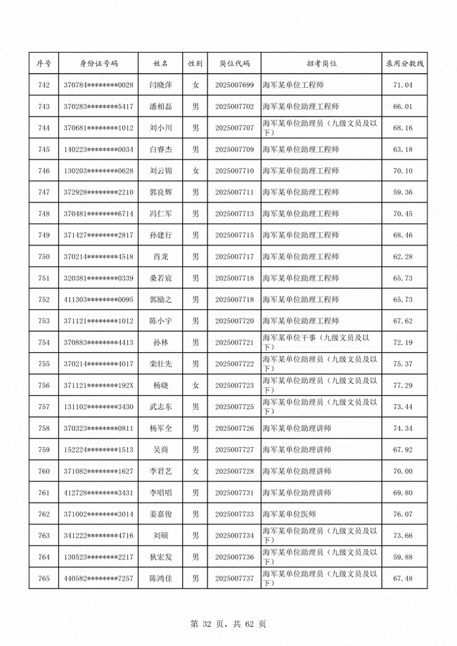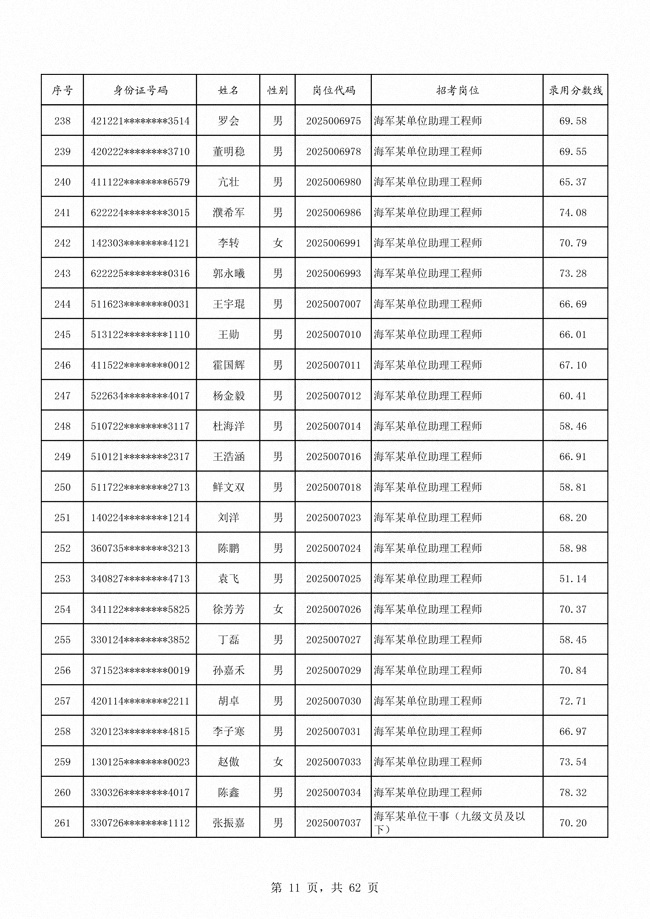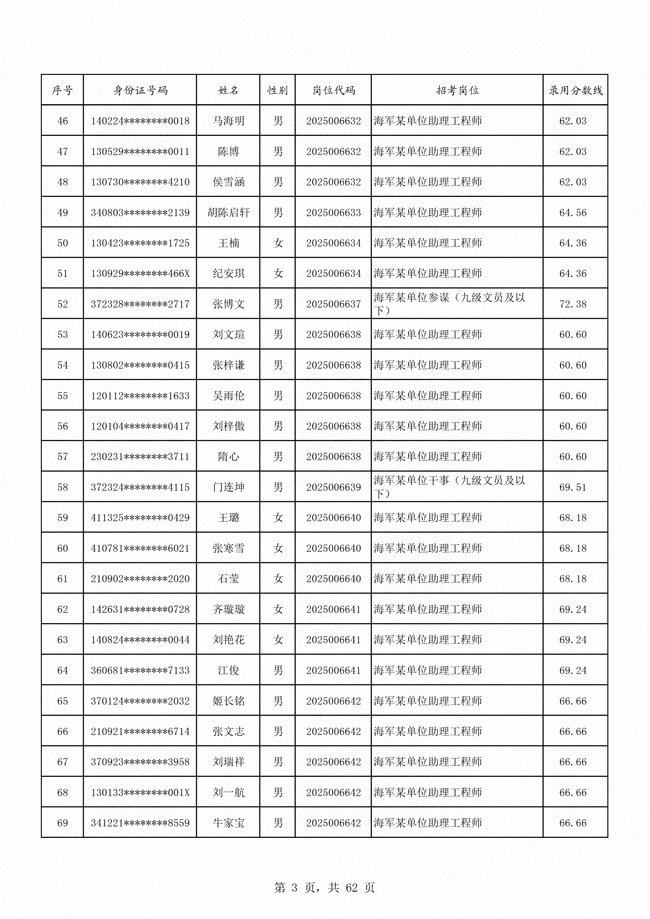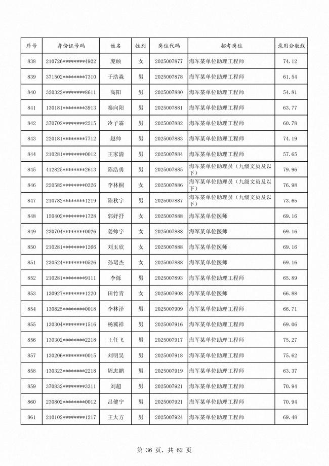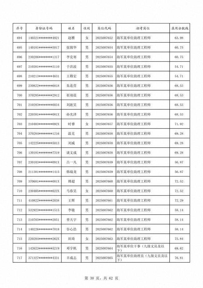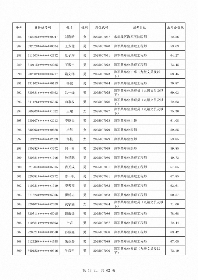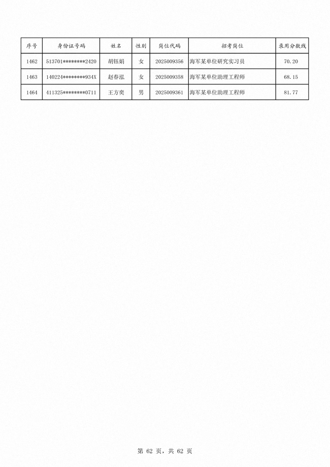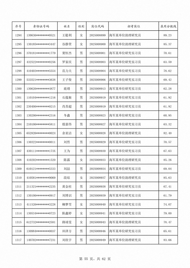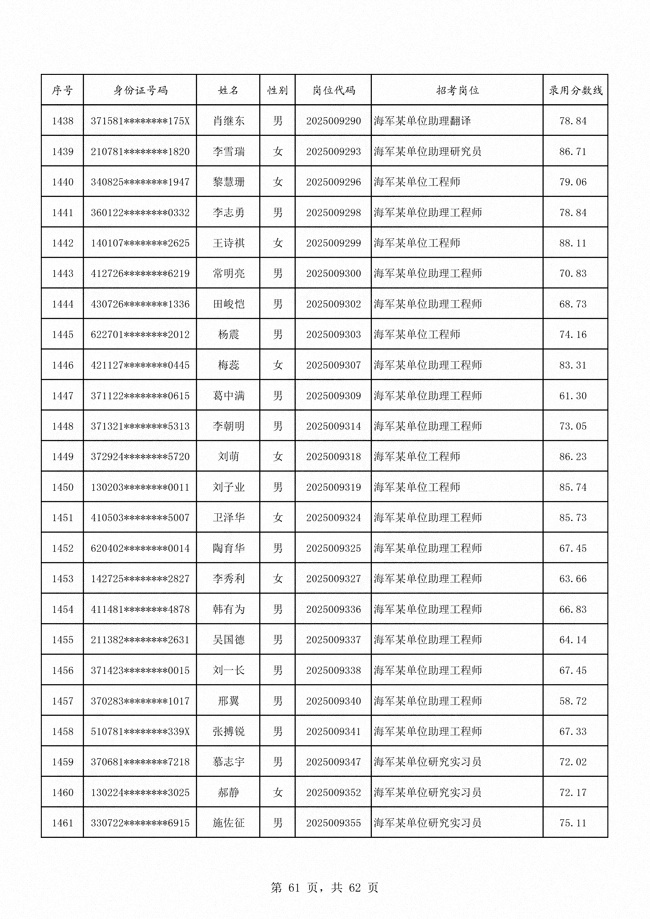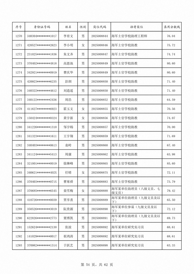 2025年武裝部文職人員擬錄用名單(含上岸分數(shù)線) 2025-10-09