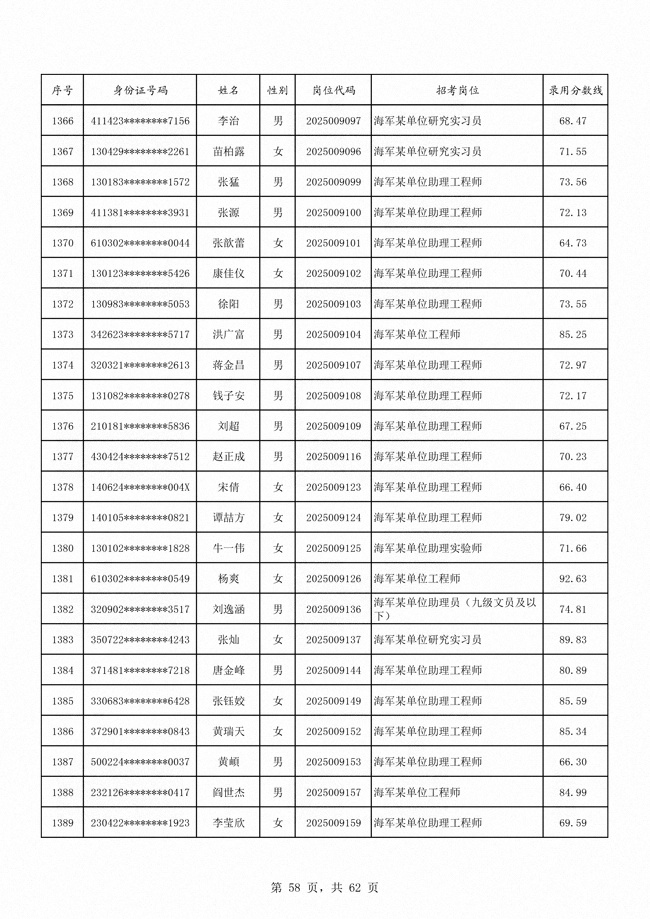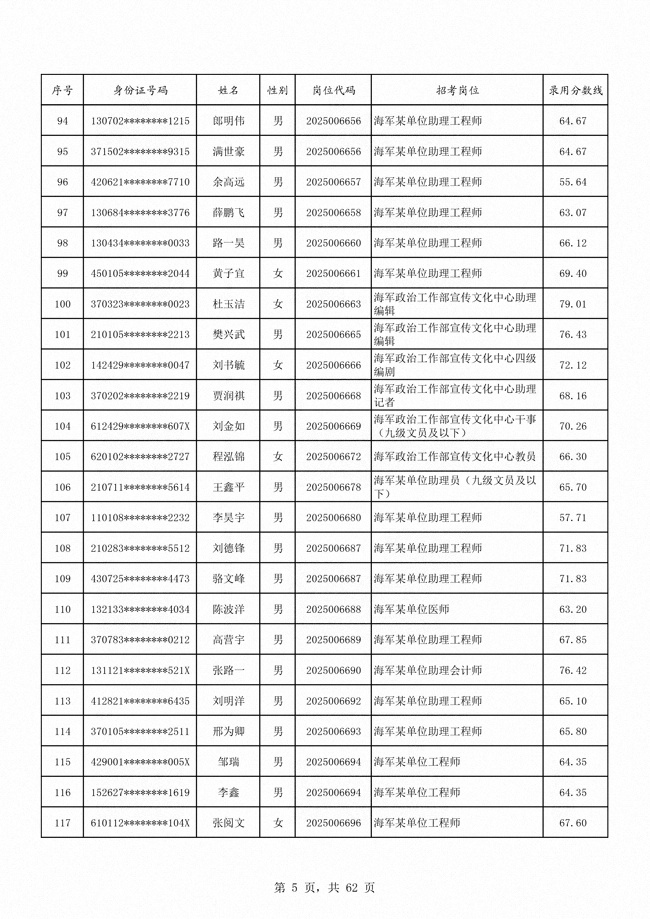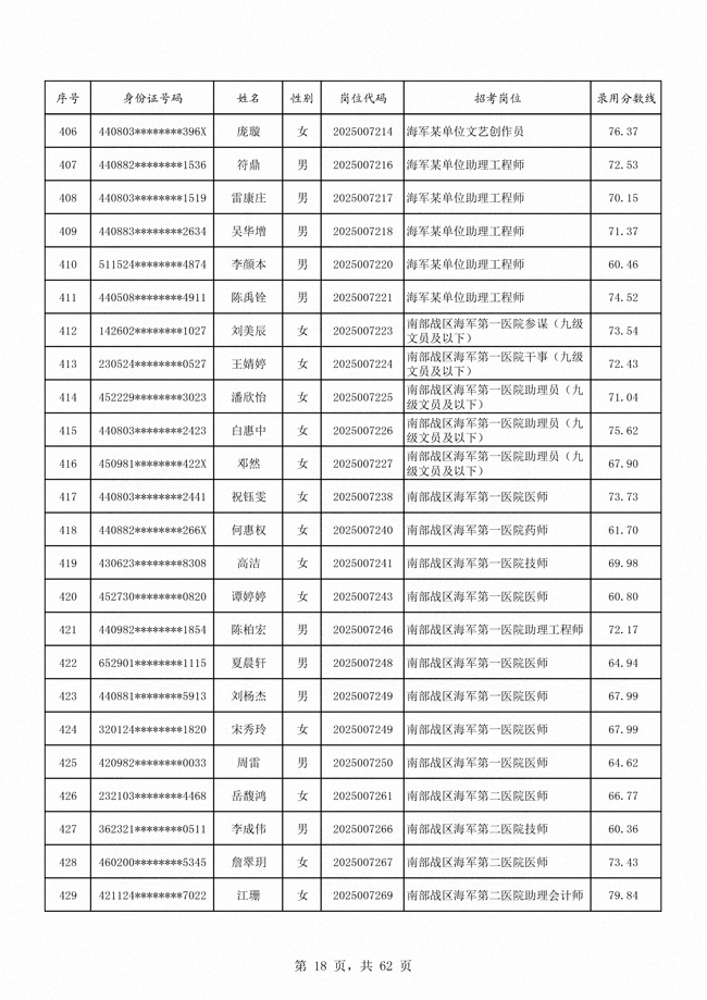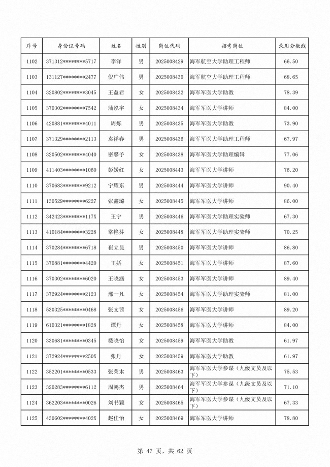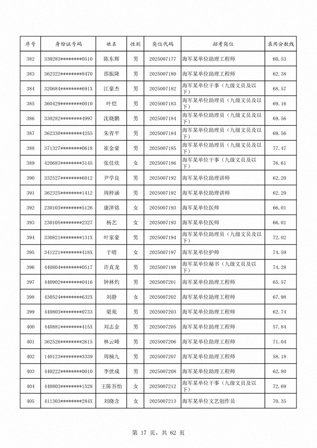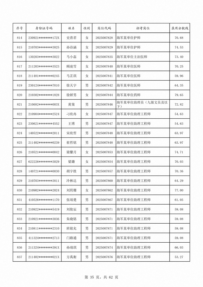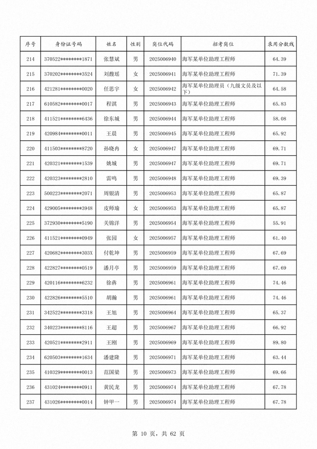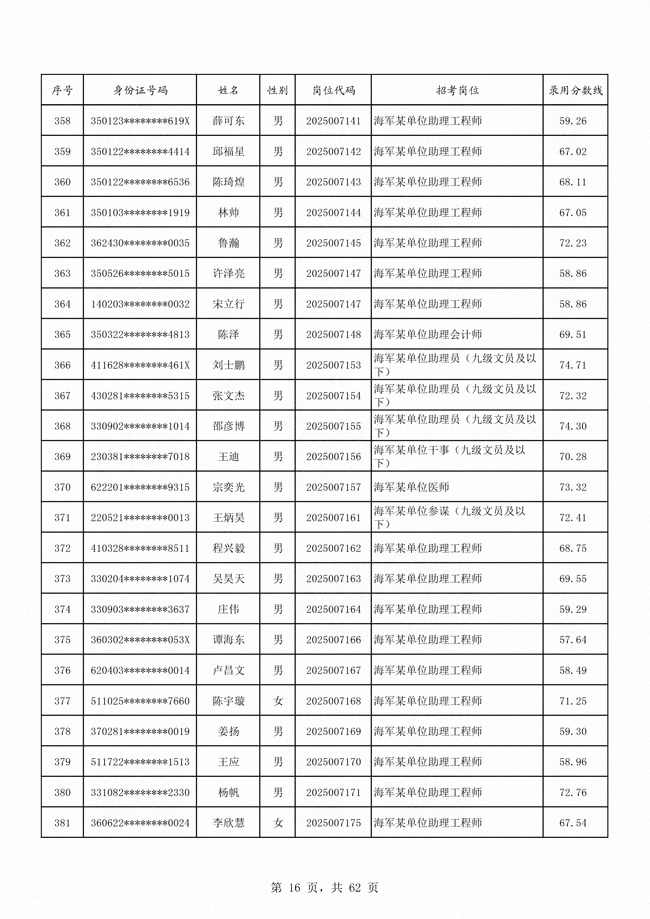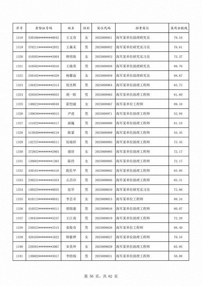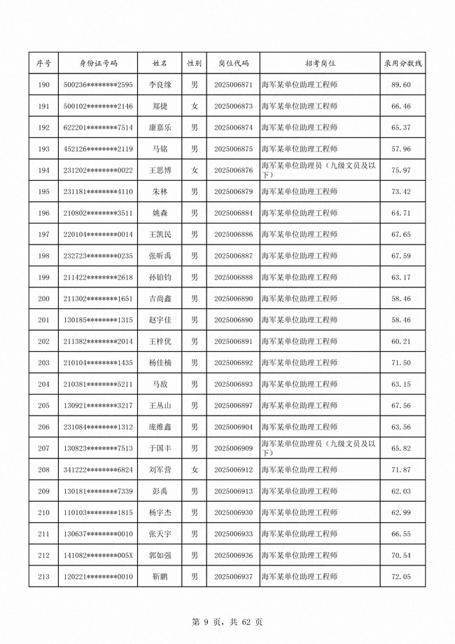 2025年武裝部文職人員擬錄用名單(含上岸分數(shù)線) 2025-10-09