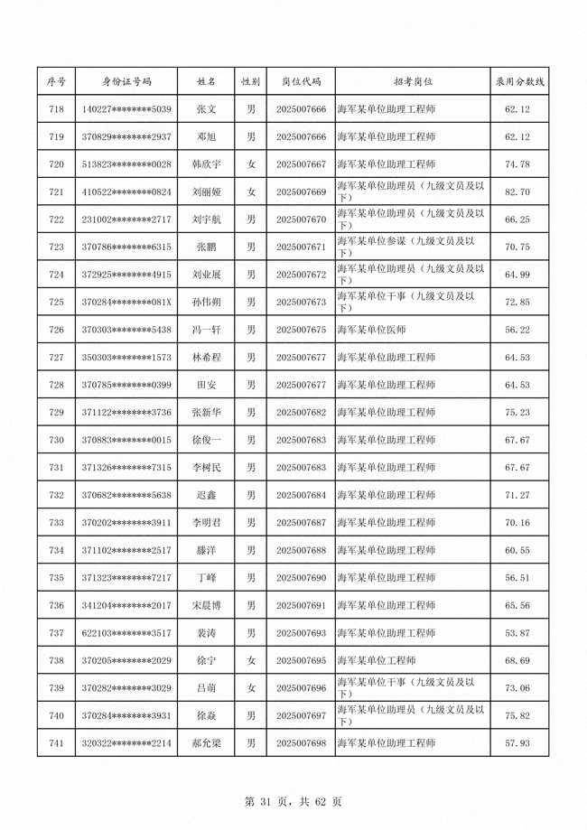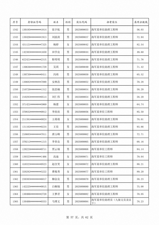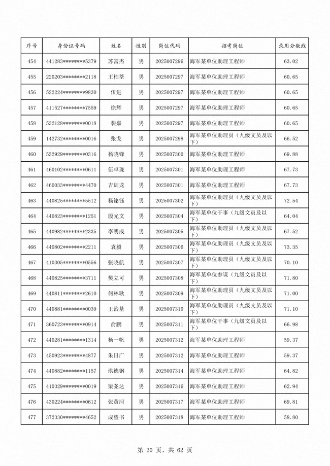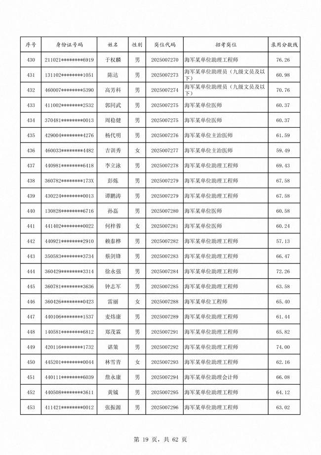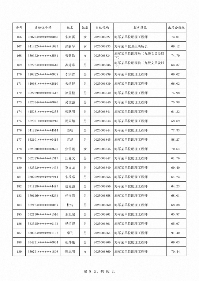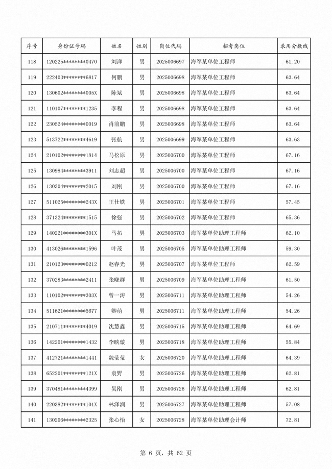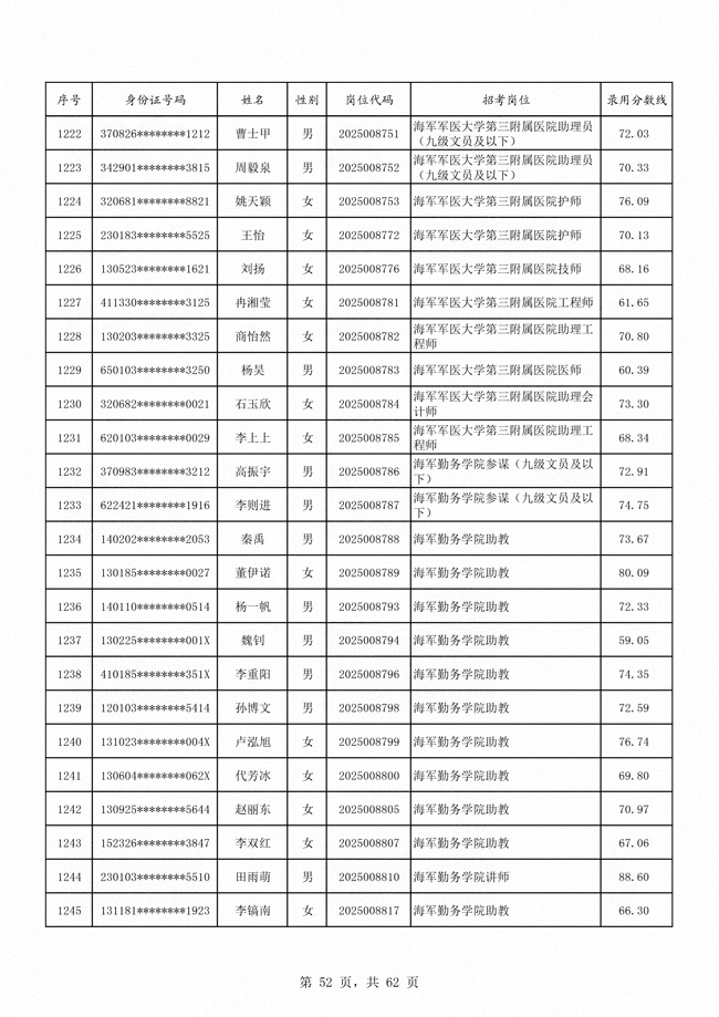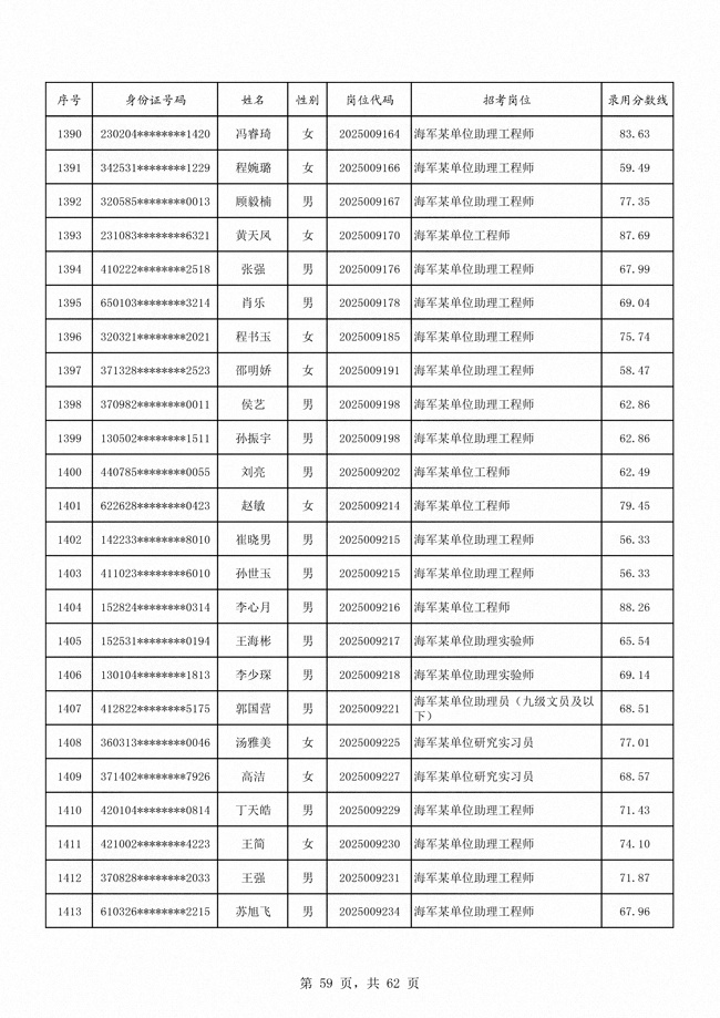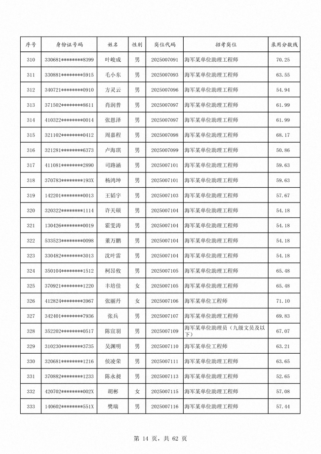 2025年武裝部文職人員擬錄用名單(含上岸分數(shù)線) 2025-10-09