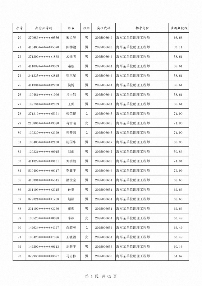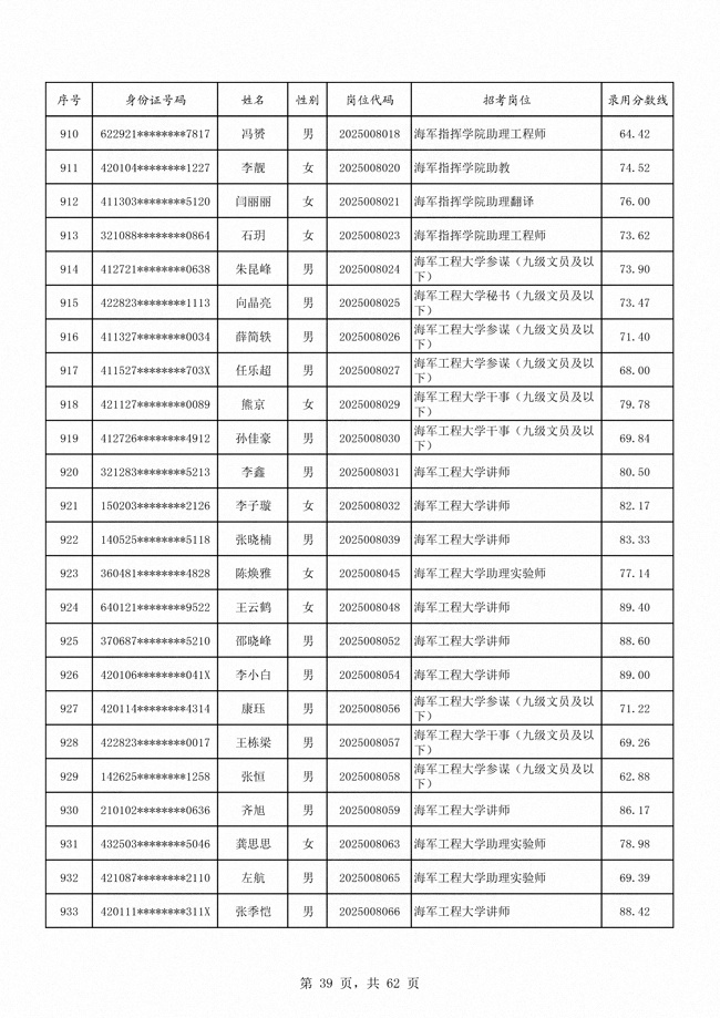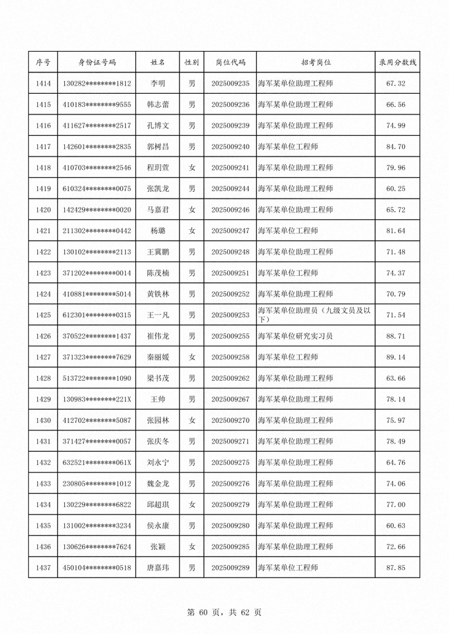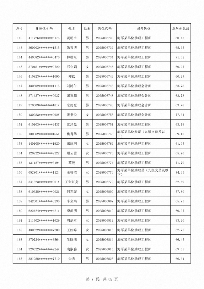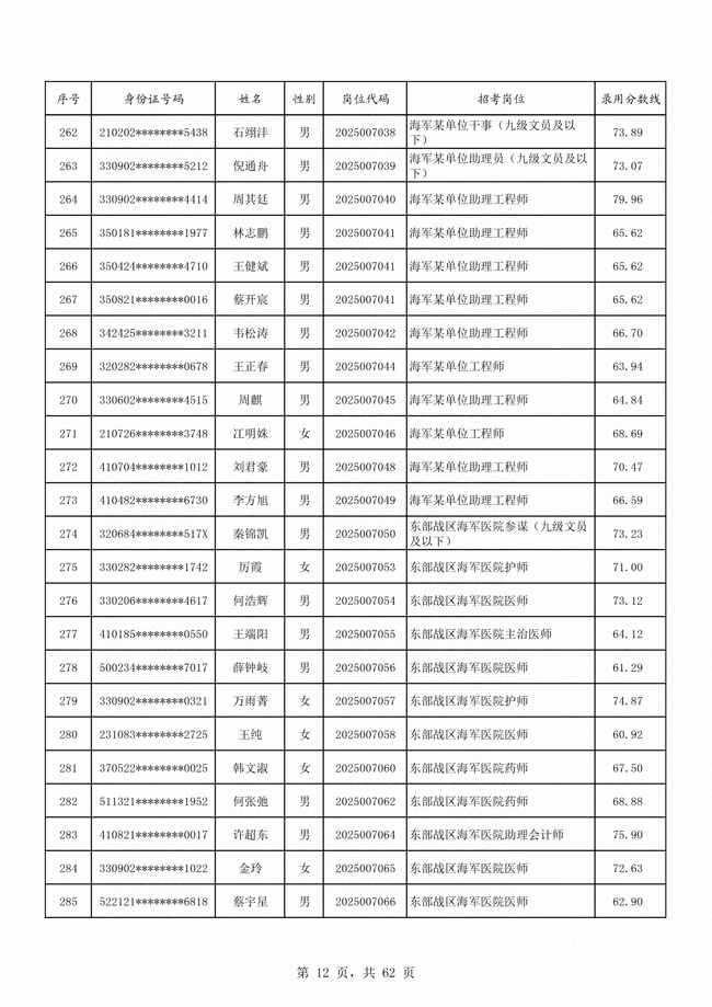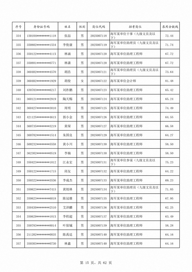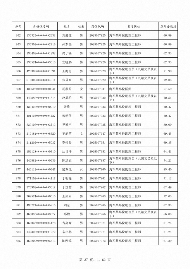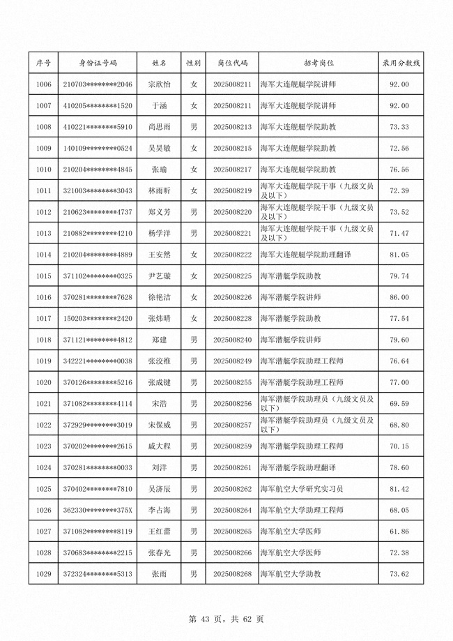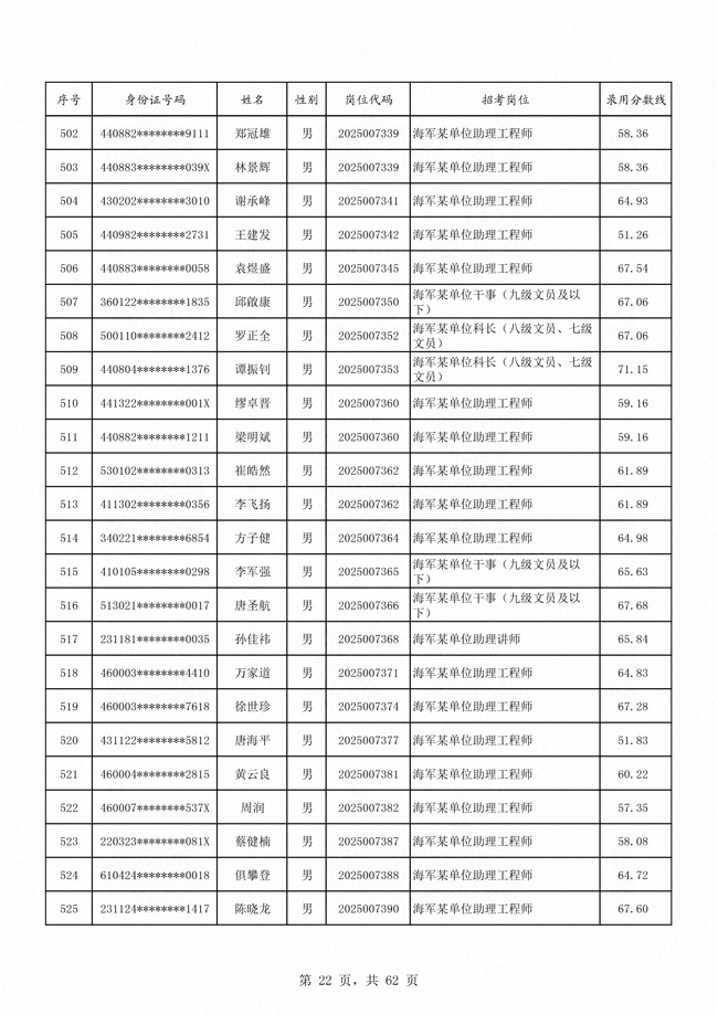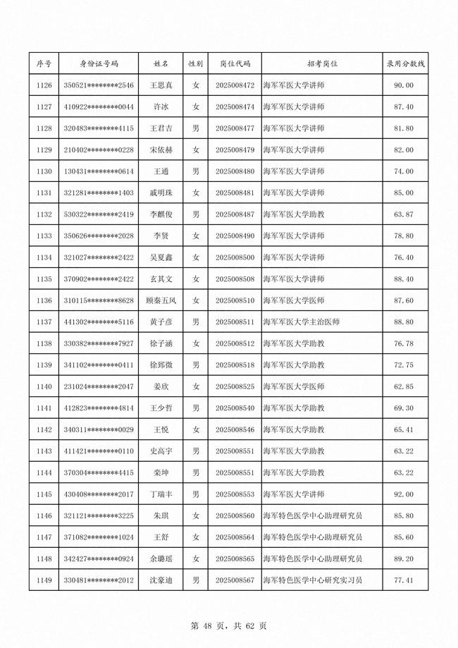 2025年武裝部文職人員擬錄用名單(含上岸分數(shù)線) 2025-10-09