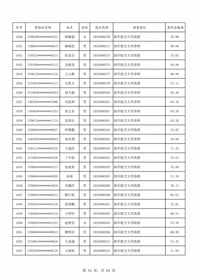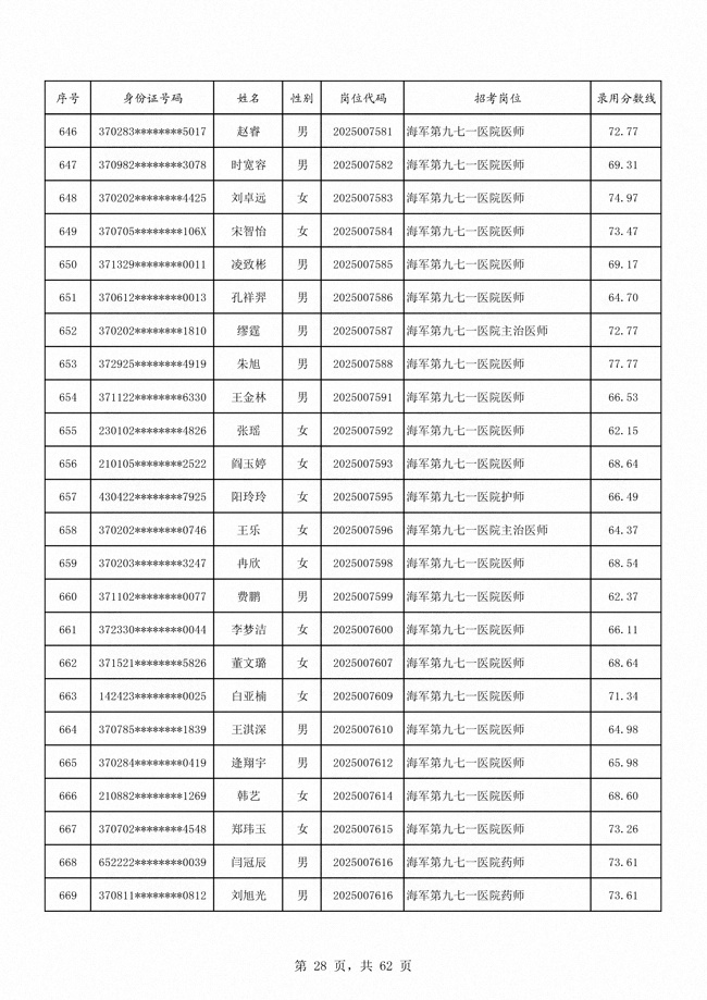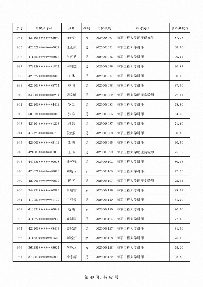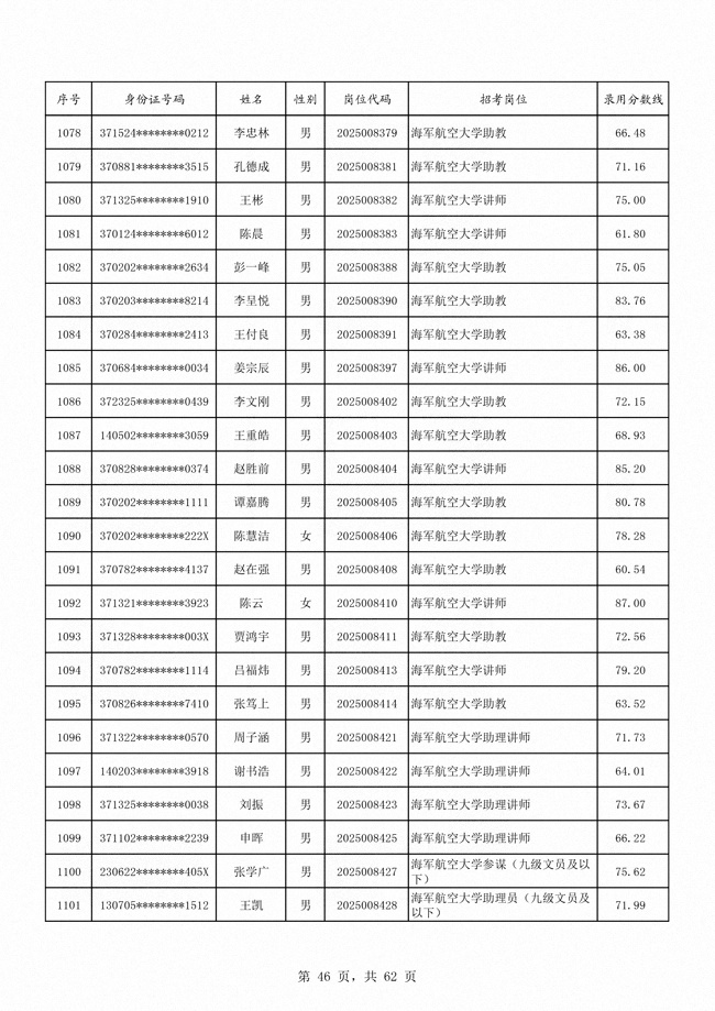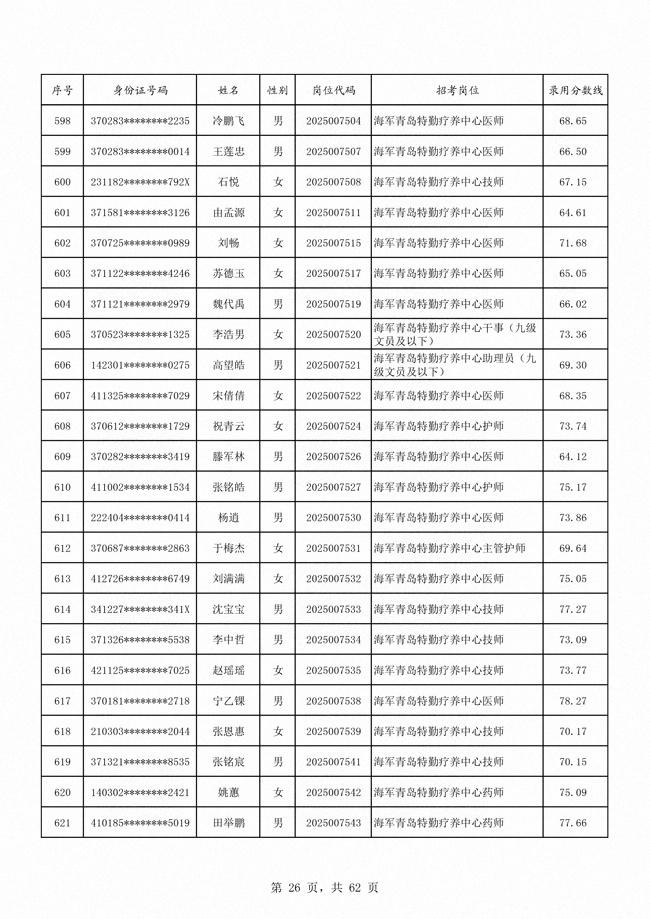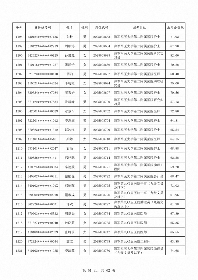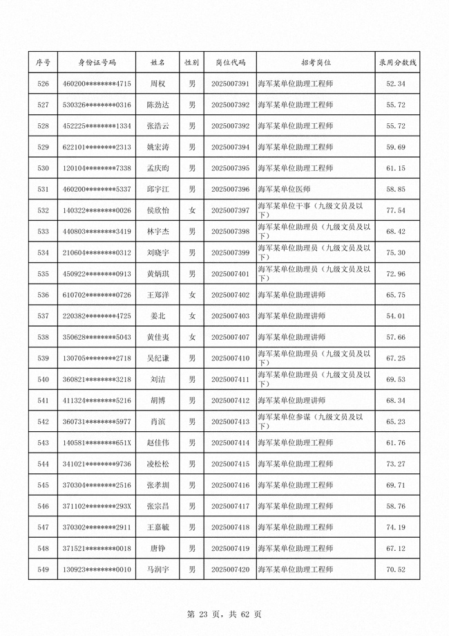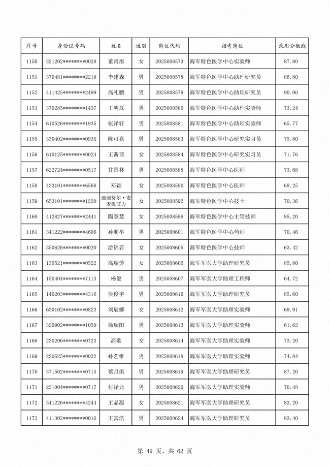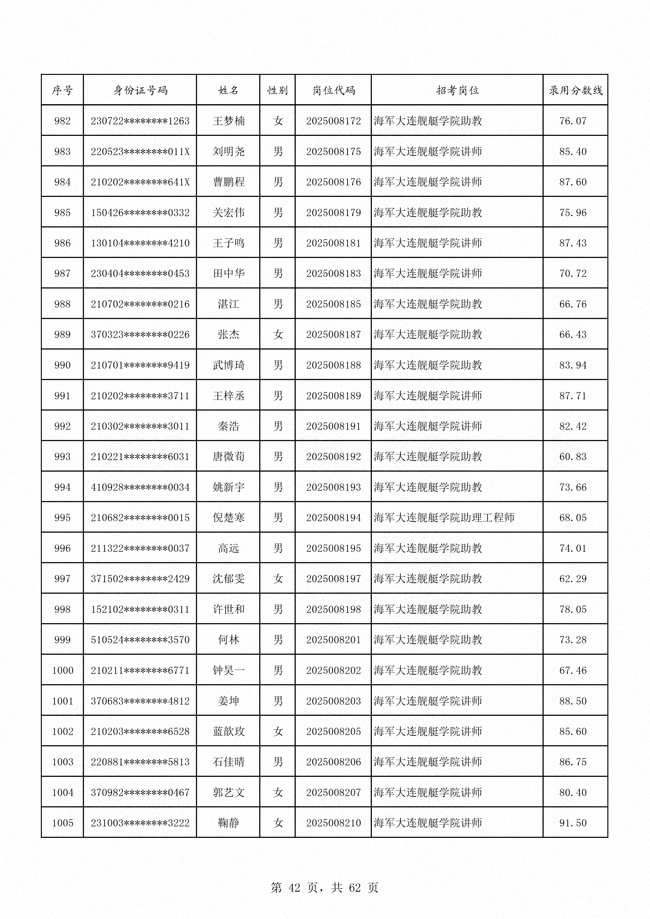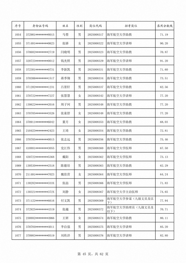 2025年武裝部文職人員擬錄用名單(含上岸分數(shù)線) 2025-10-09