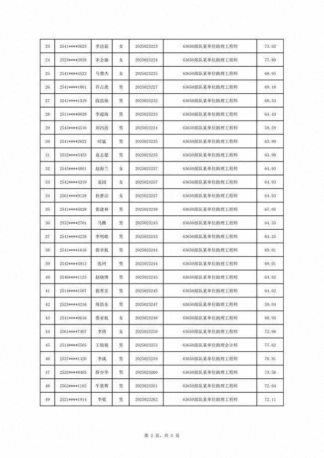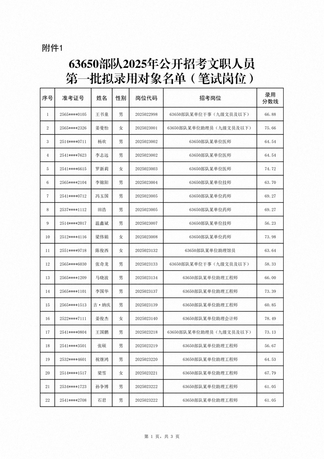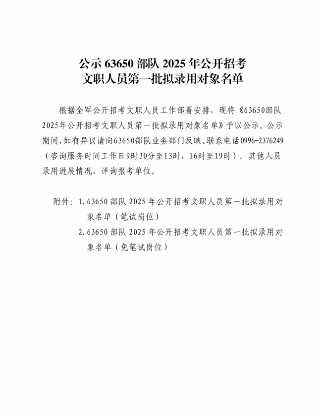 原文標題:公示63650部隊2025年公開招考文職人員第一批擬錄用對象名單