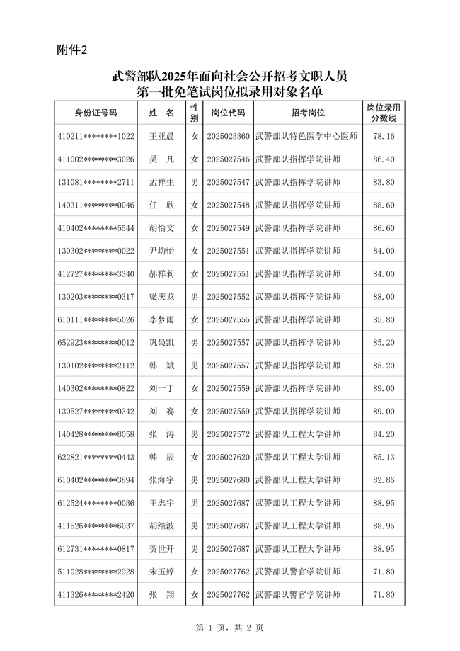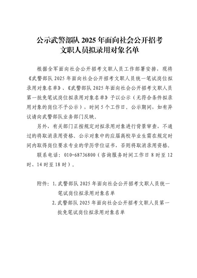 原文標(biāo)題:公示武警部隊(duì)2025年面向社會(huì)公開招考文職人員擬錄用對(duì)象名單