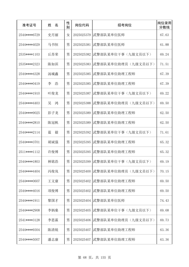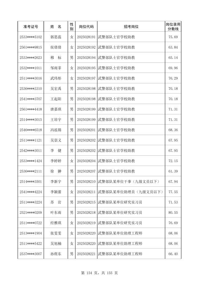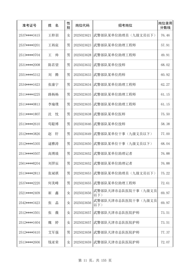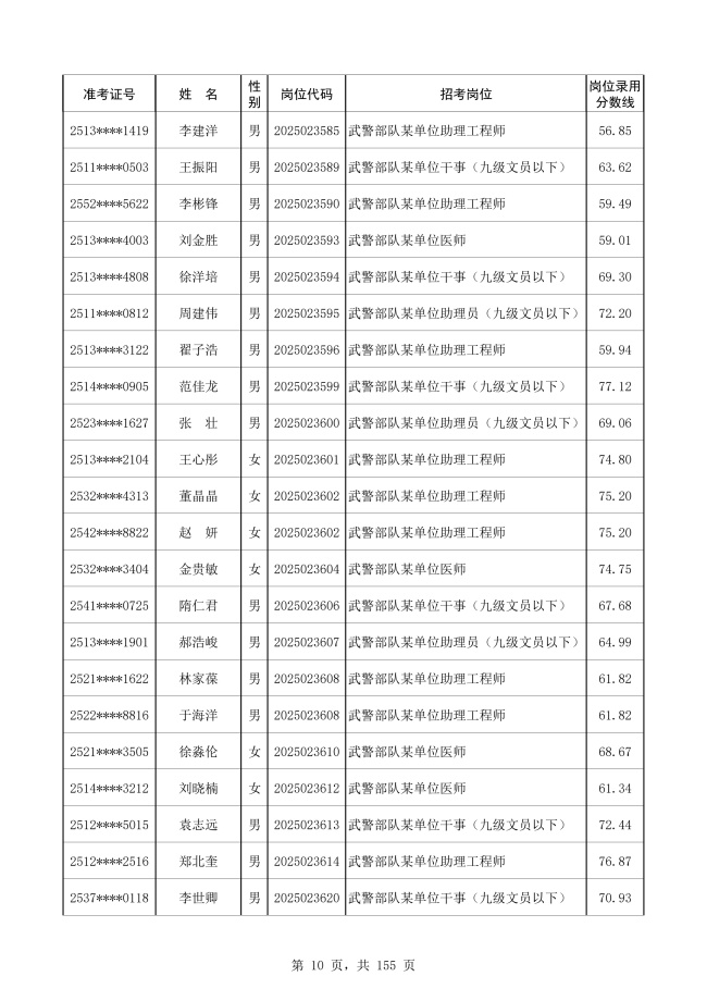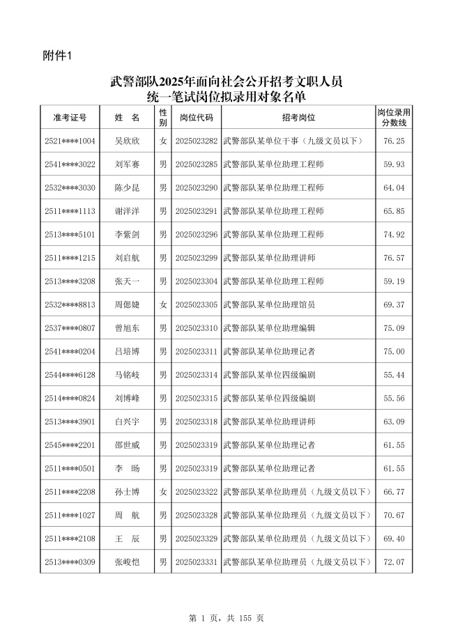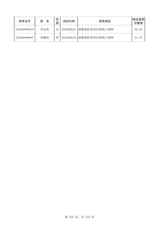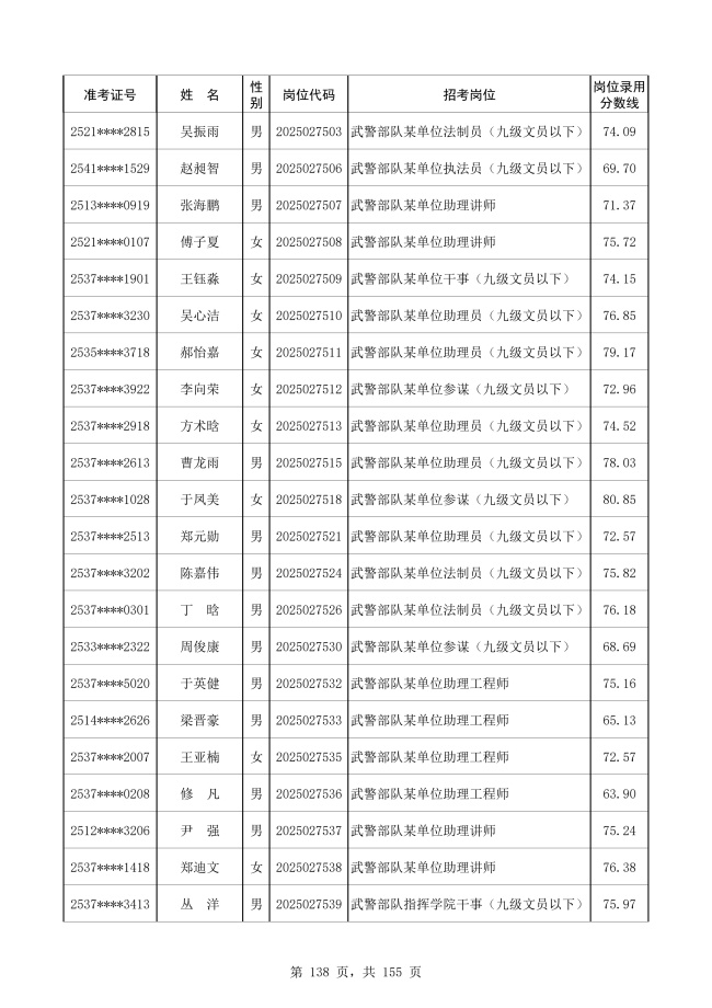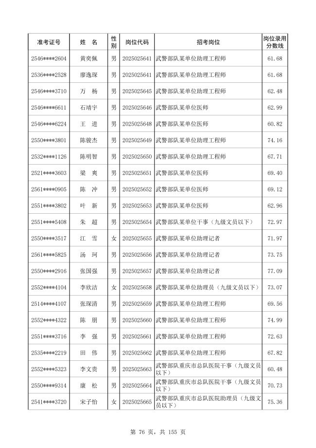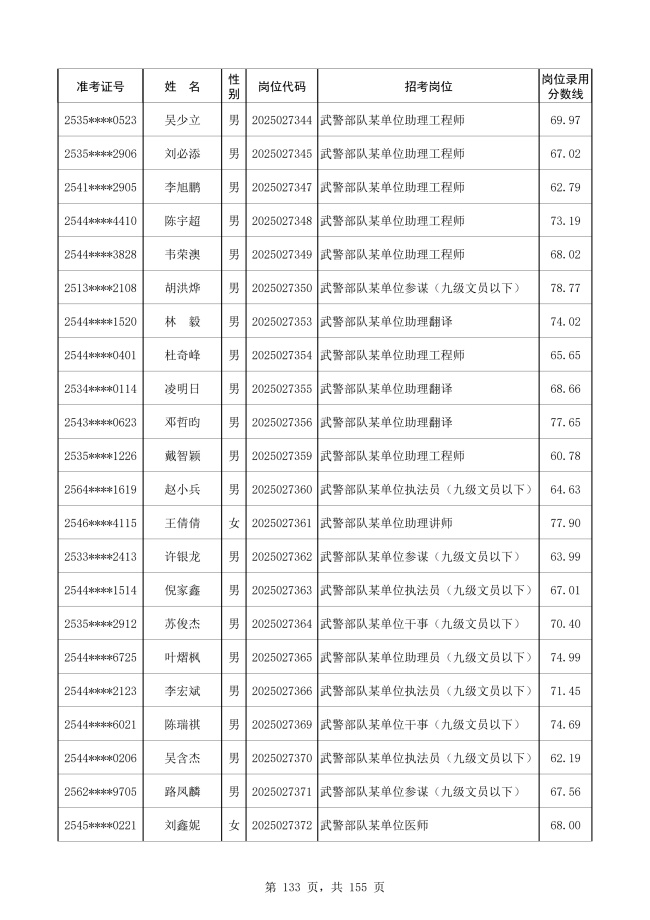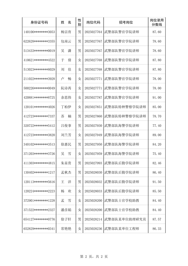 2025年武裝部文職人員擬錄用名單(含上岸分?jǐn)?shù)線) 2025-10-09