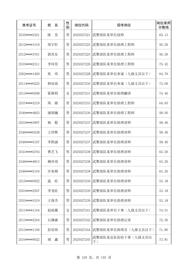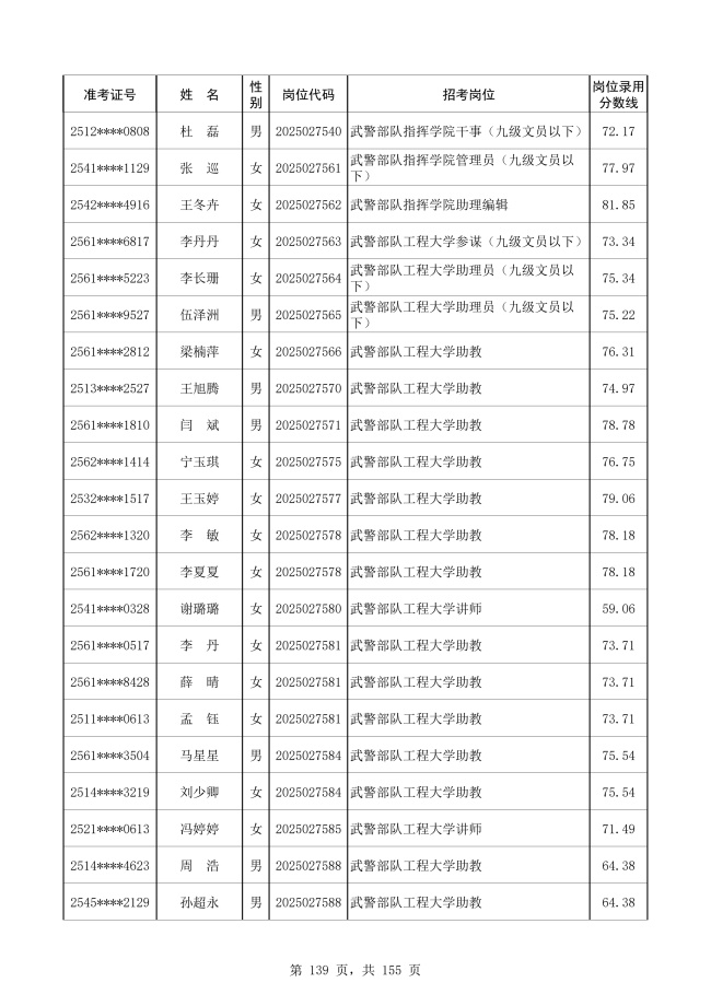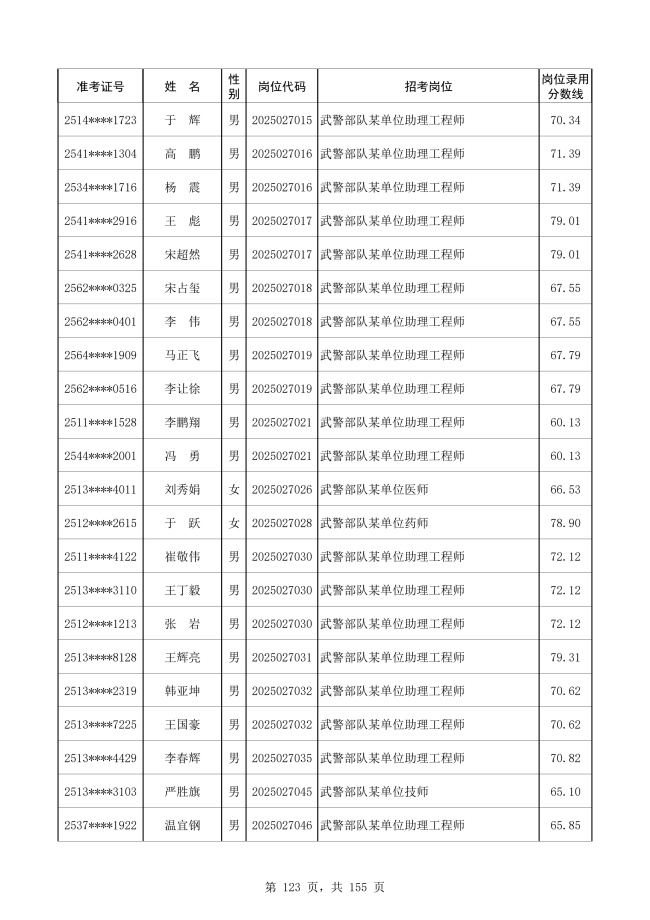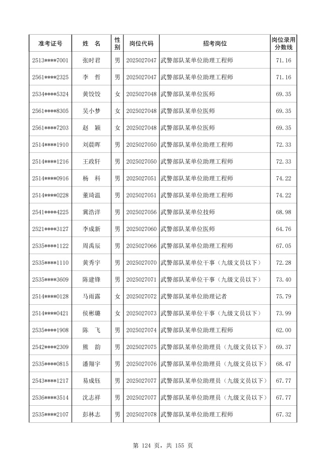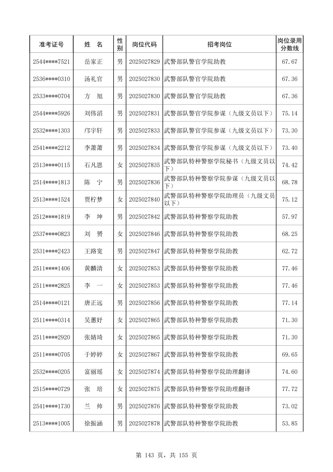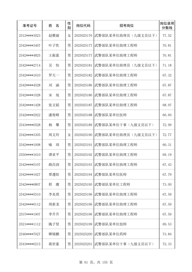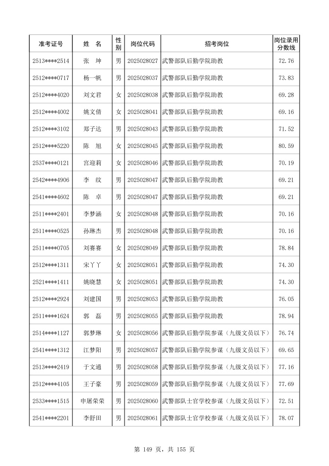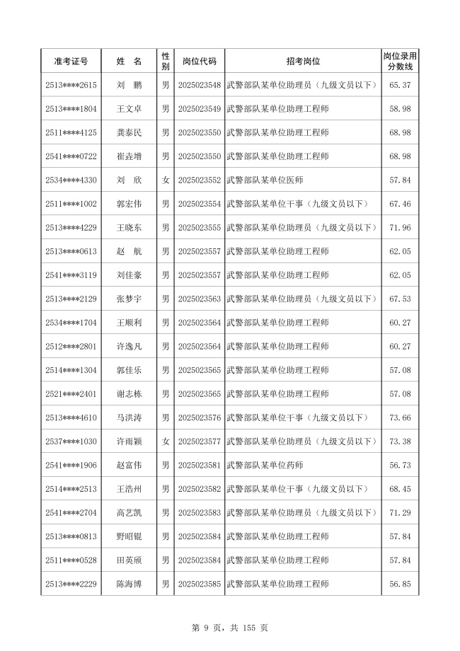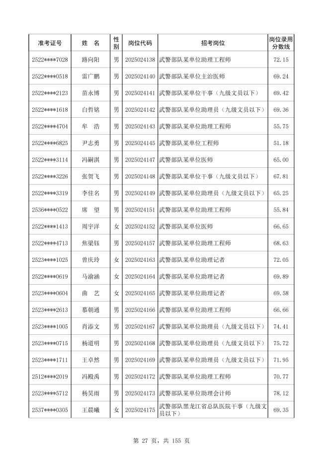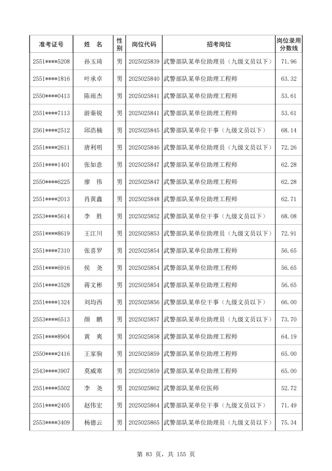 2025年武裝部文職人員擬錄用名單(含上岸分?jǐn)?shù)線) 2025-10-09