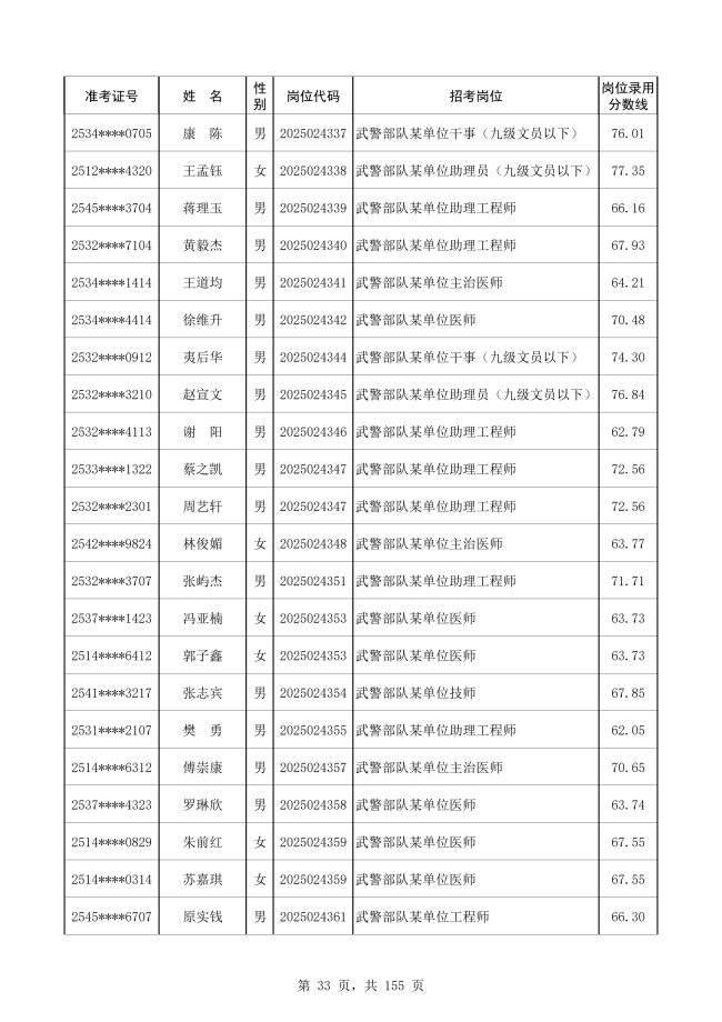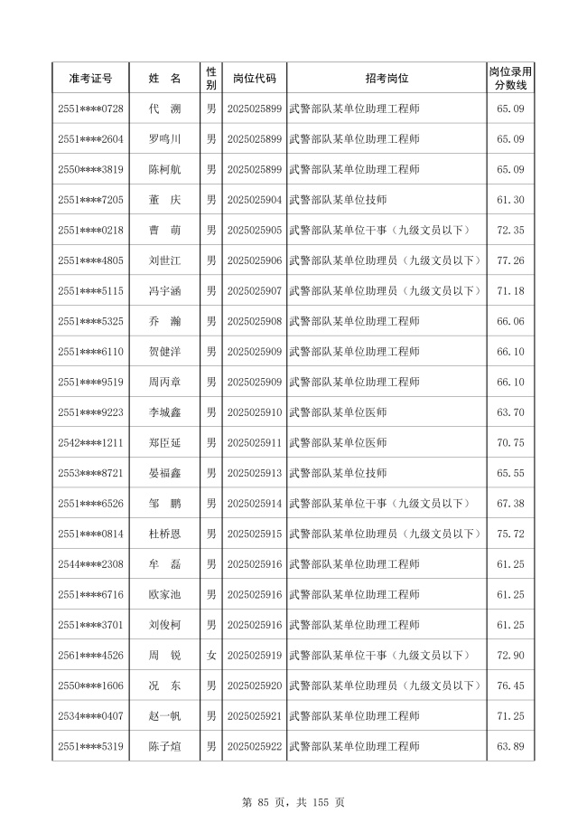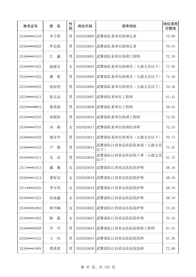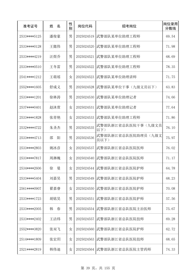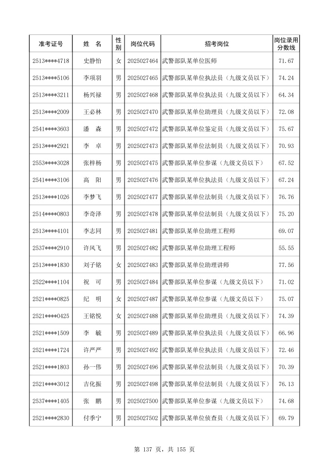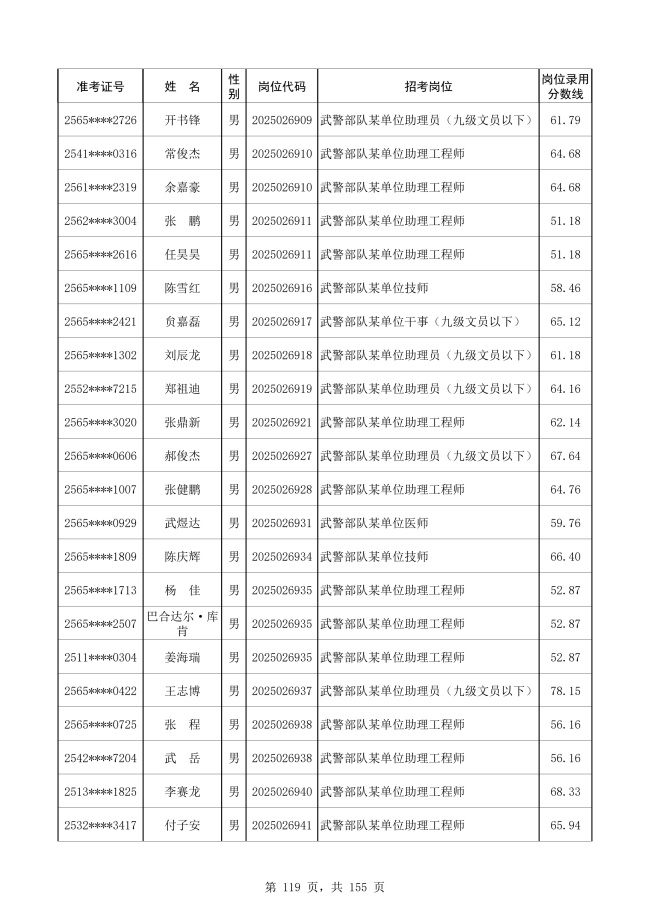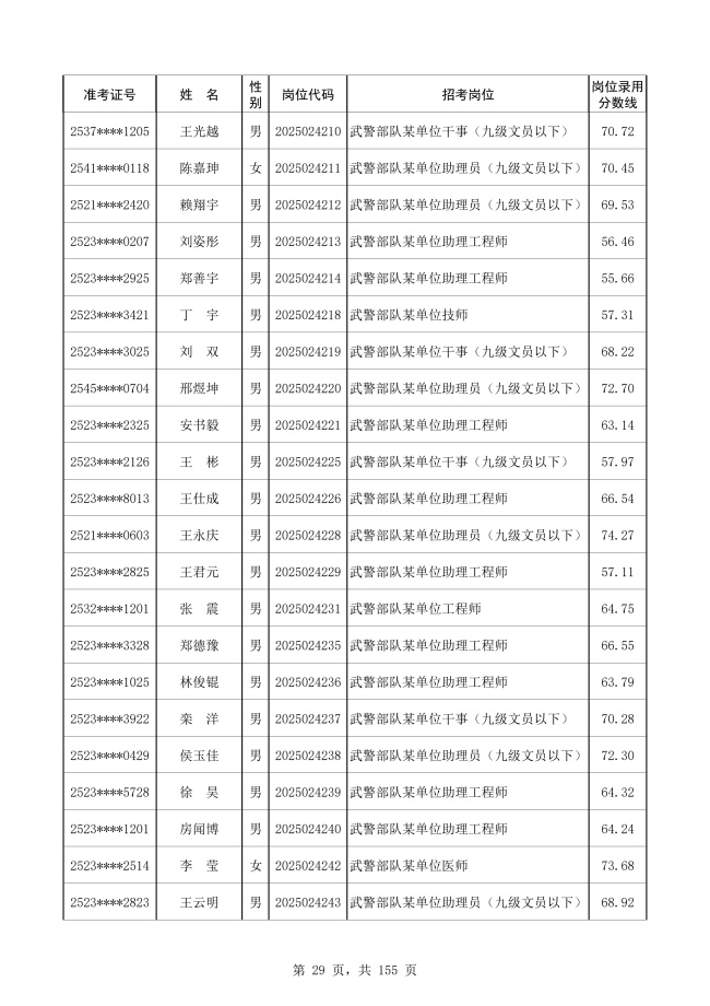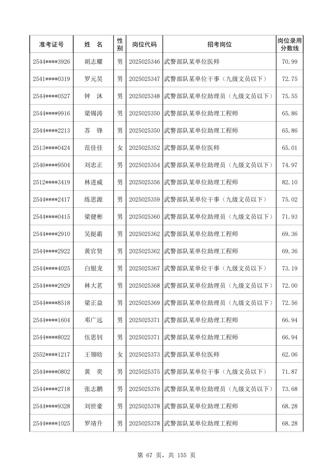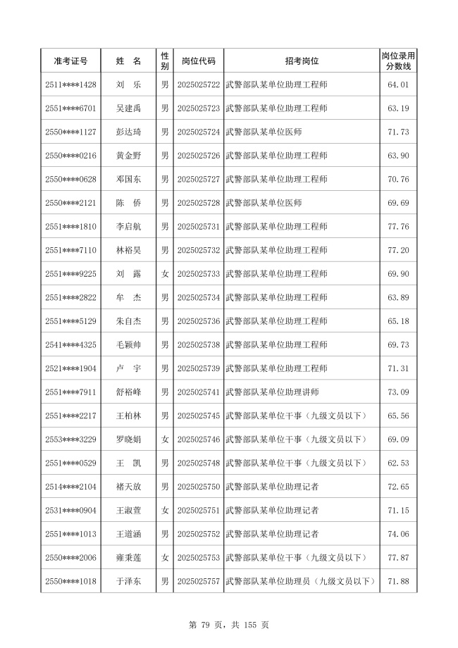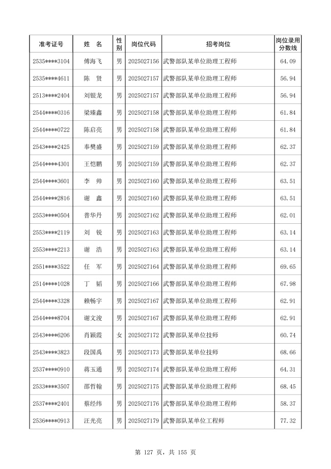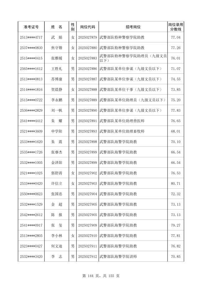 2025年武裝部文職人員擬錄用名單(含上岸分?jǐn)?shù)線) 2025-10-09