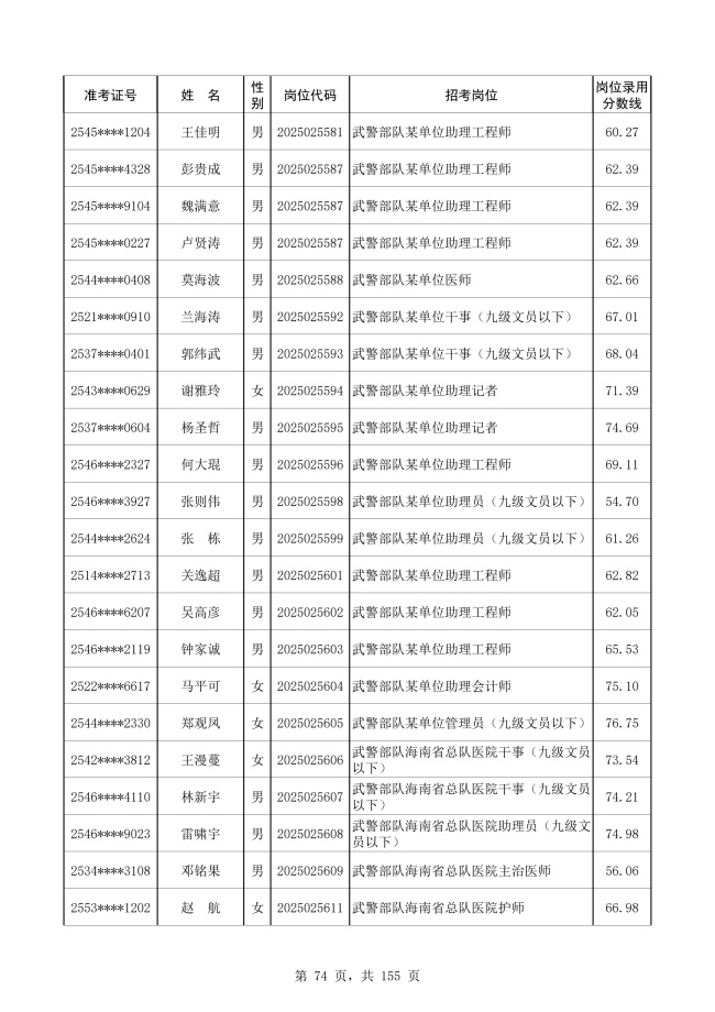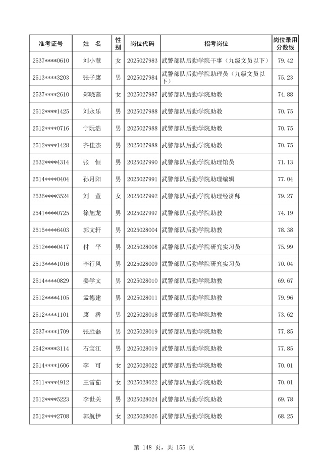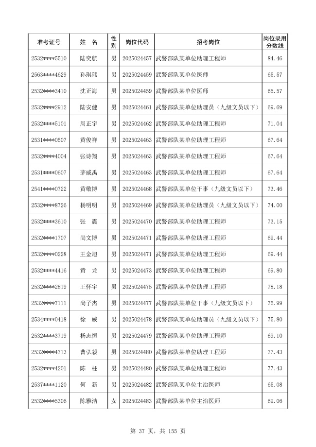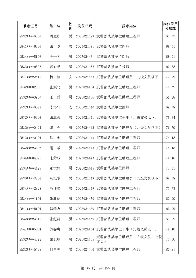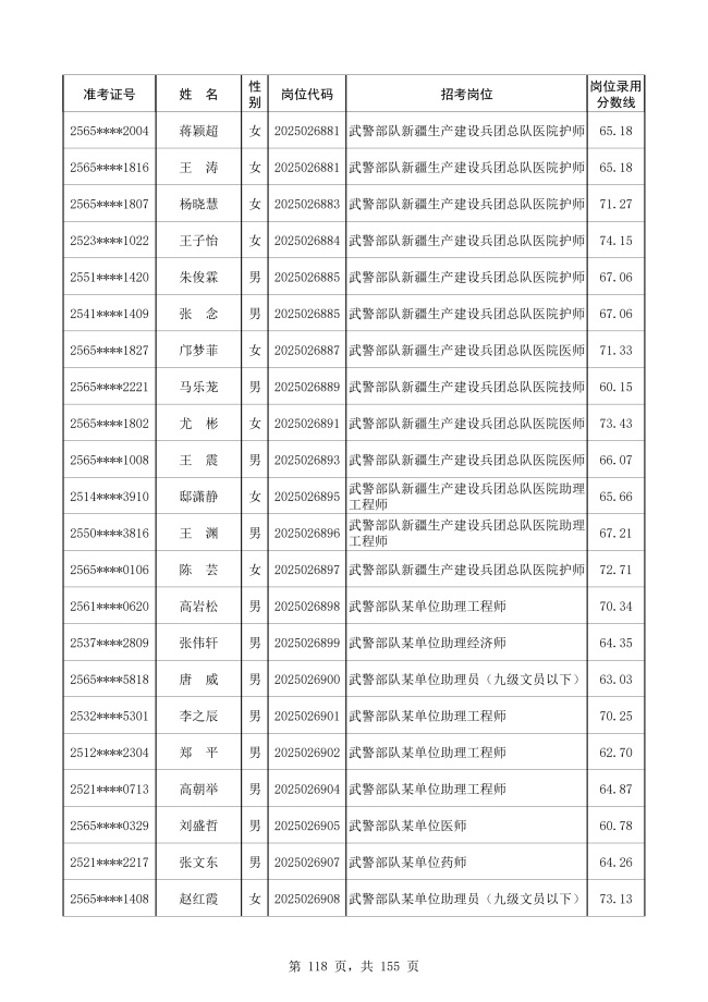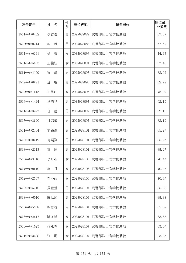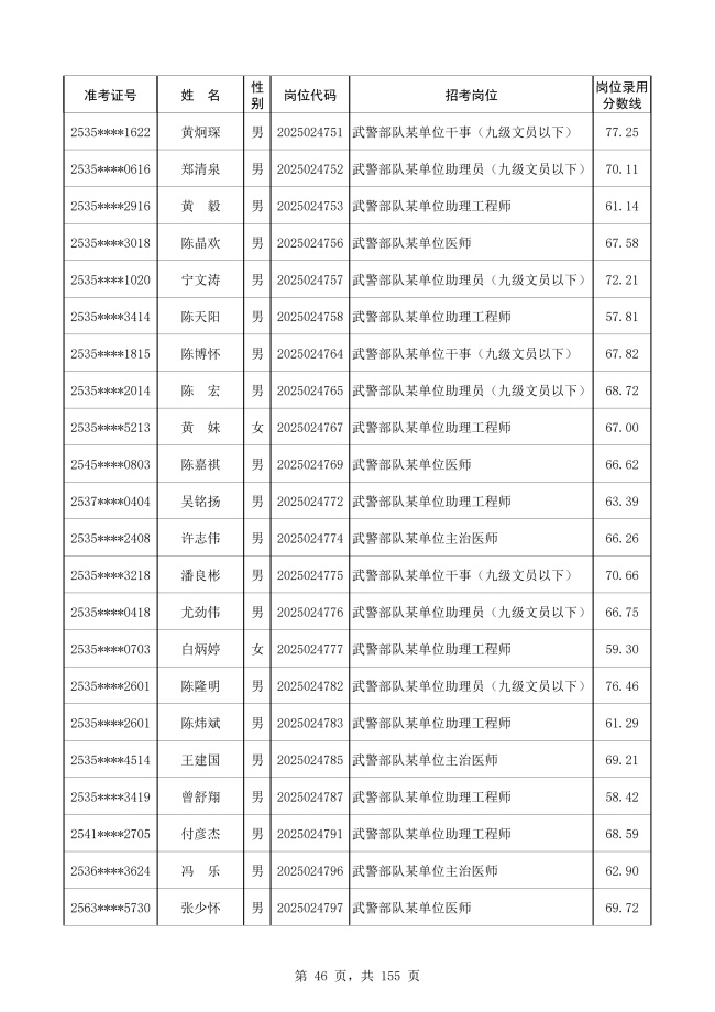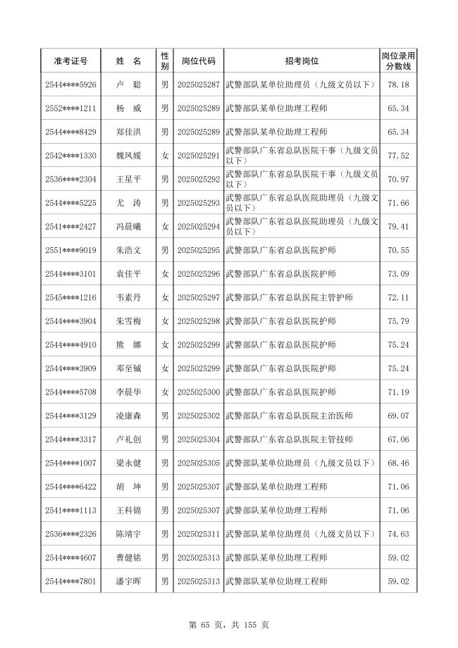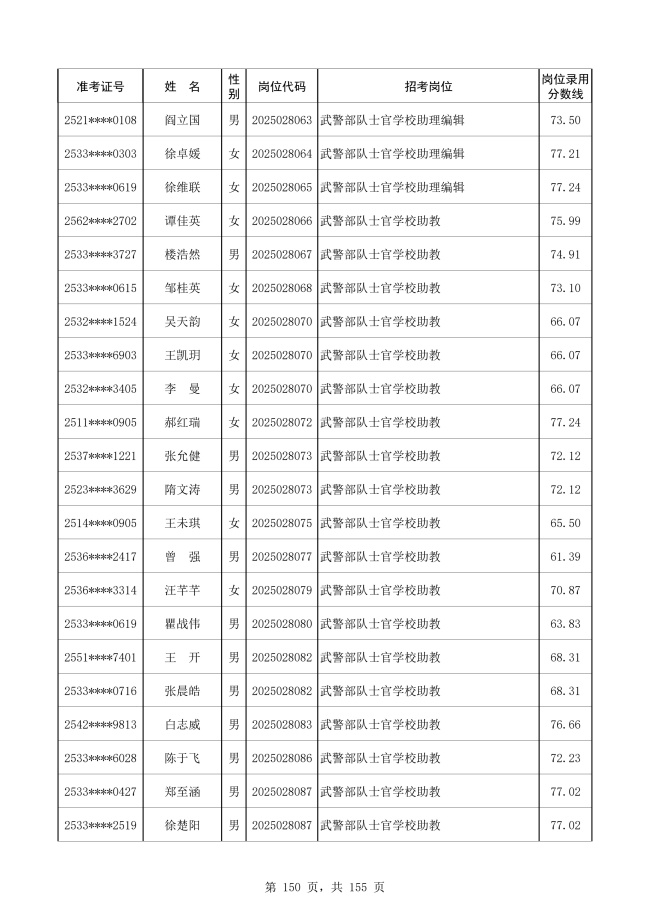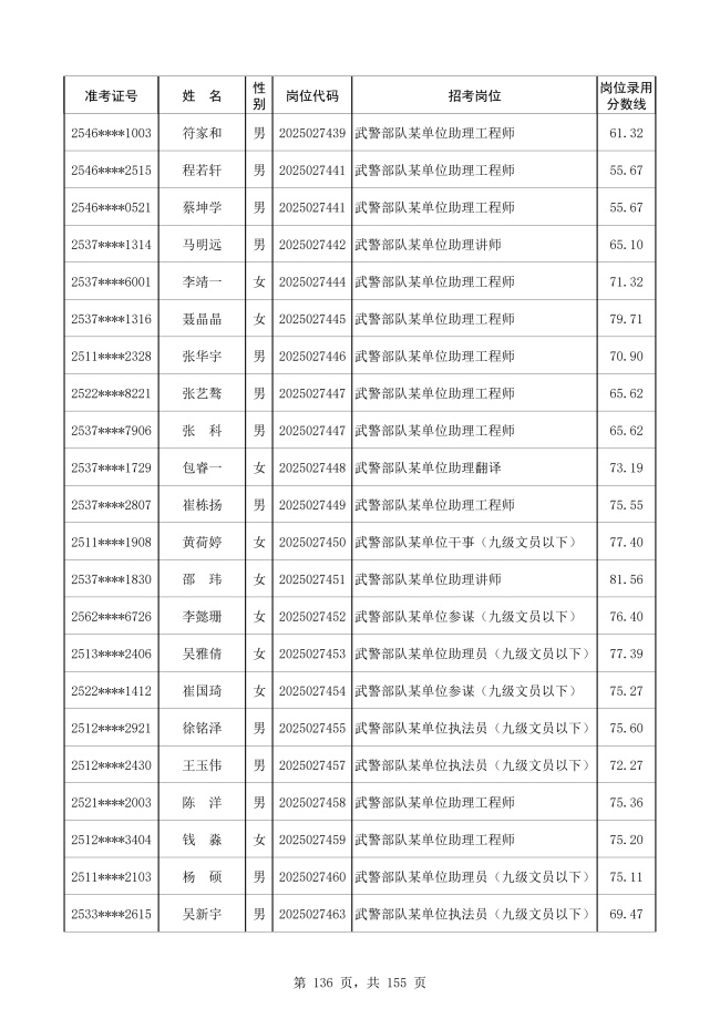2025年武裝部文職人員擬錄用名單(含上岸分?jǐn)?shù)線) 2025-10-09