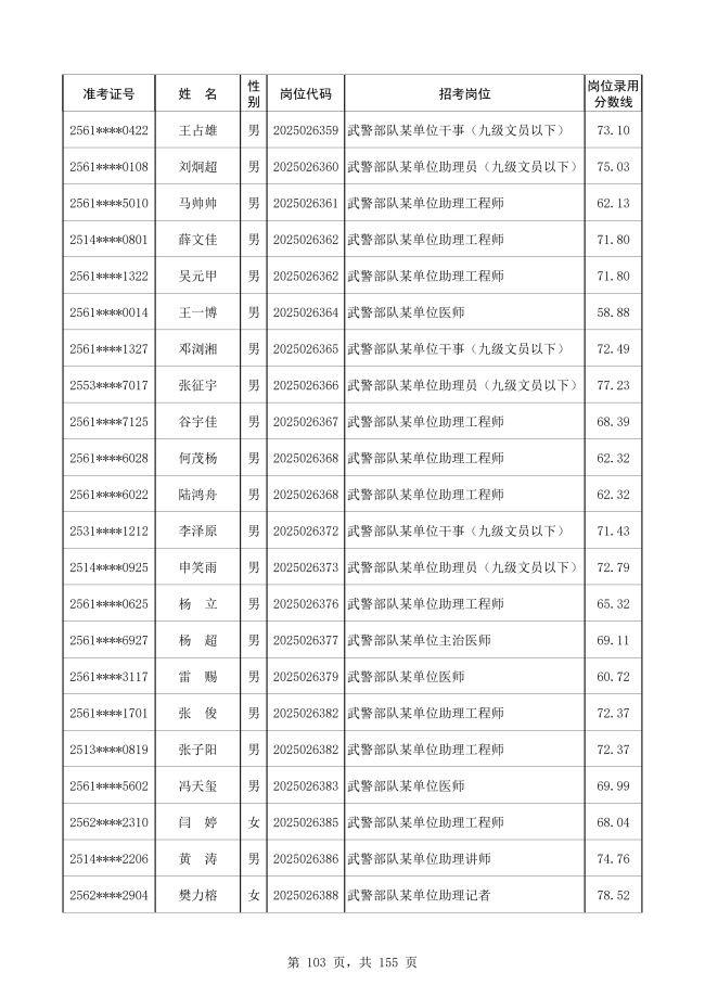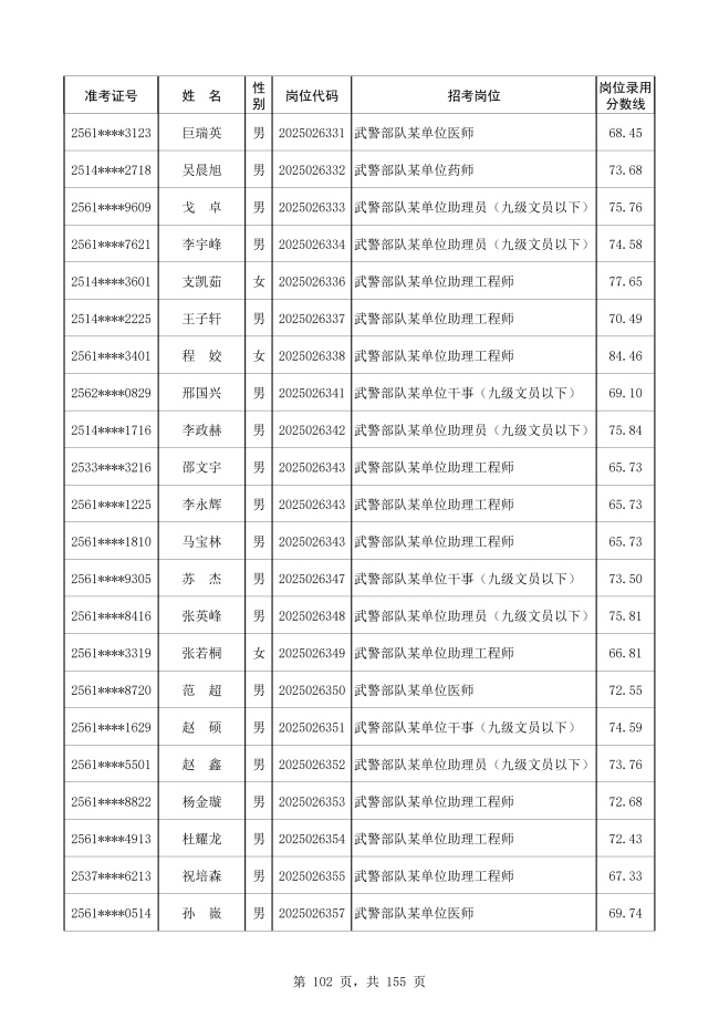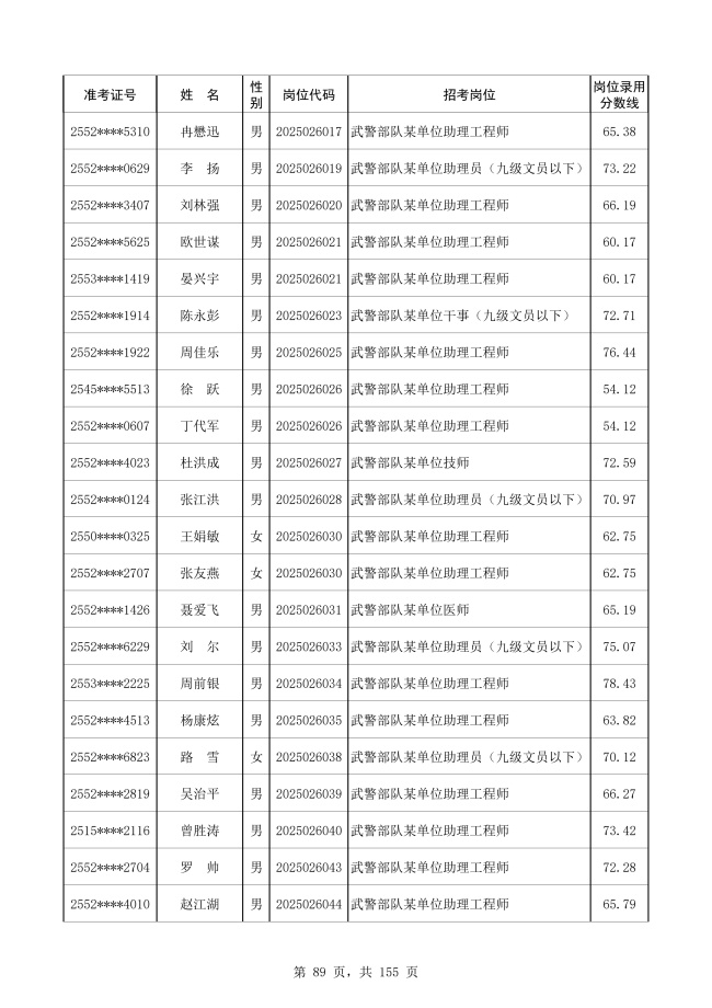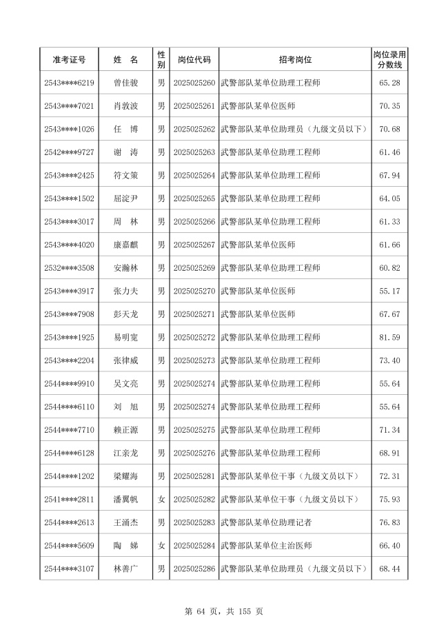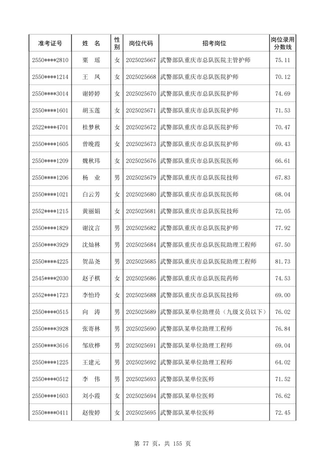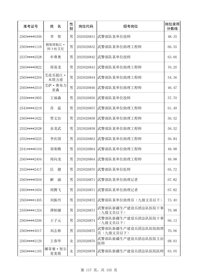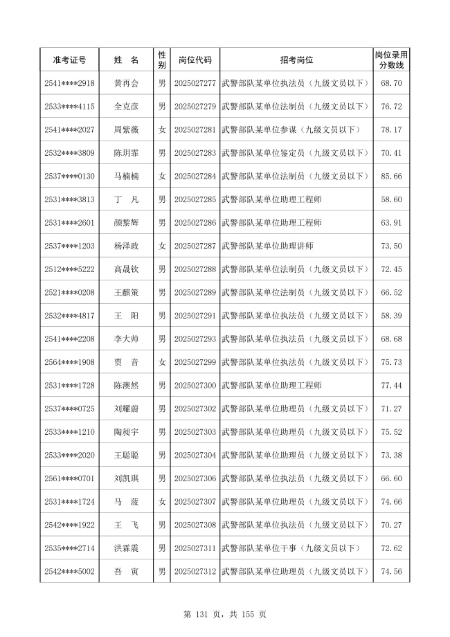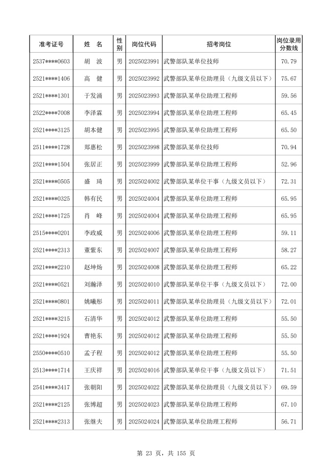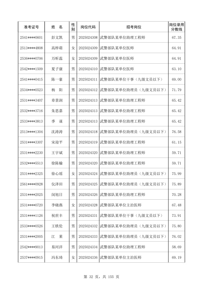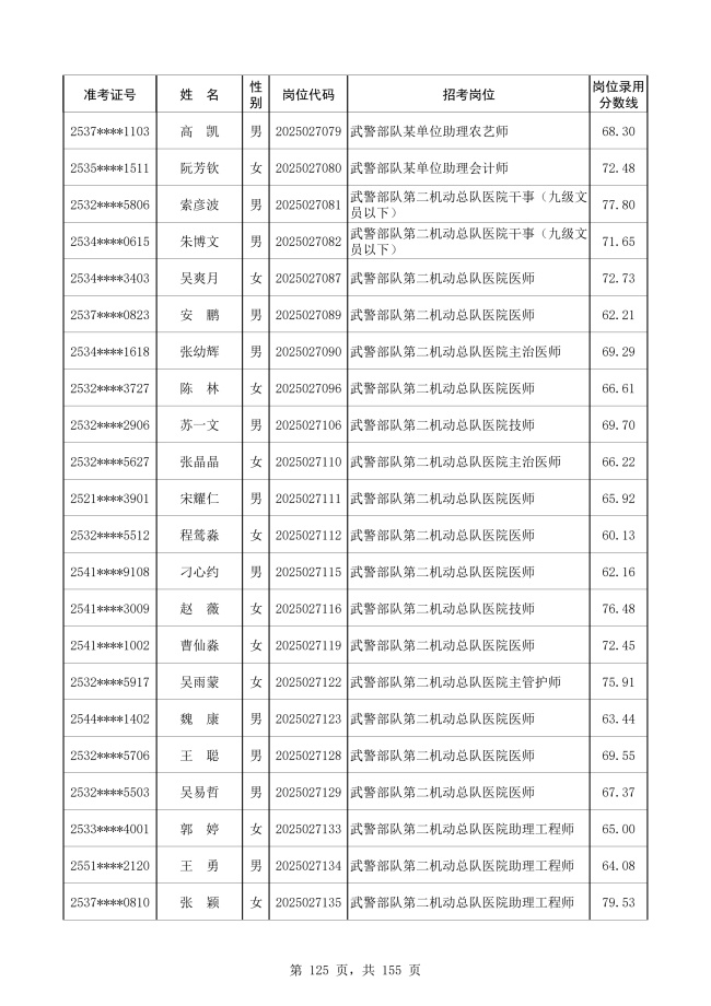 2025年武裝部文職人員擬錄用名單(含上岸分?jǐn)?shù)線) 2025-10-09
