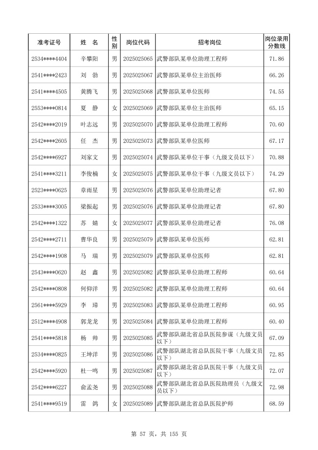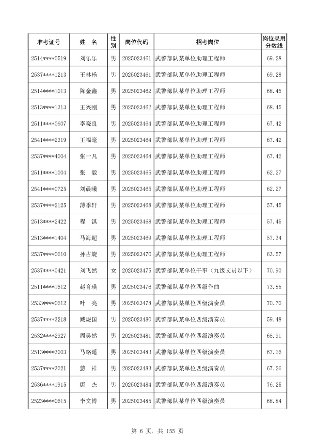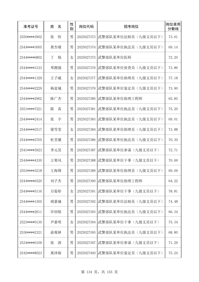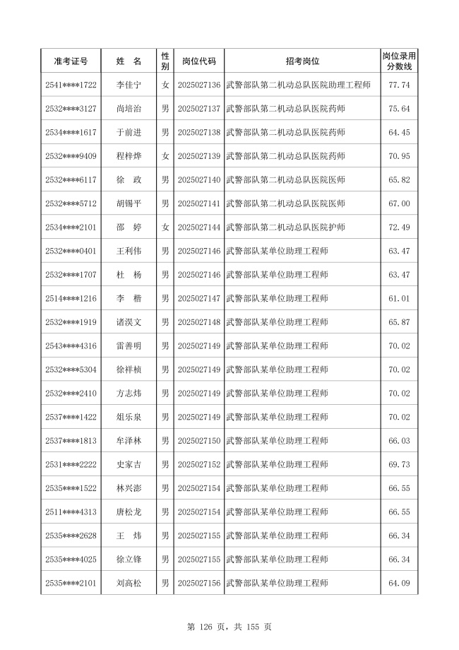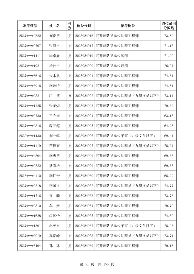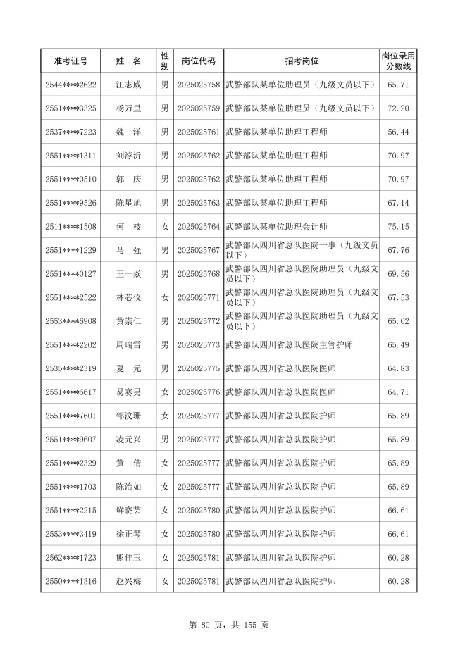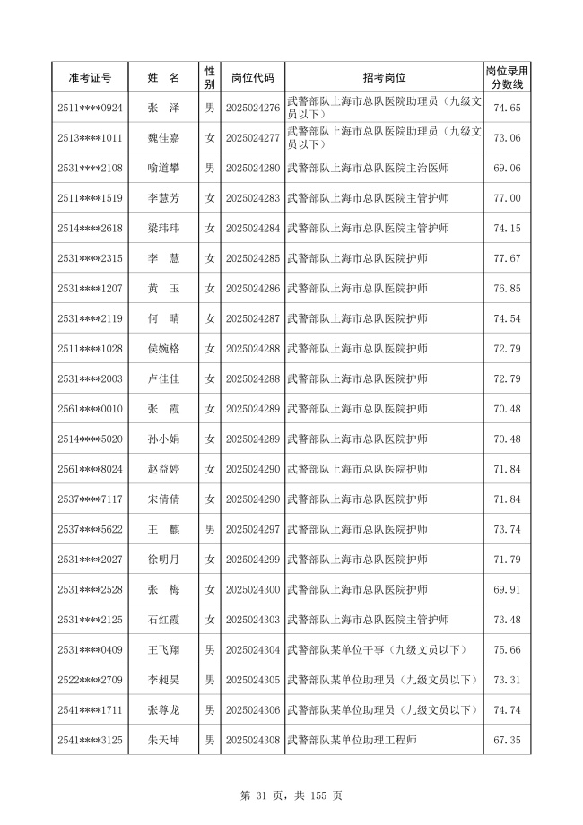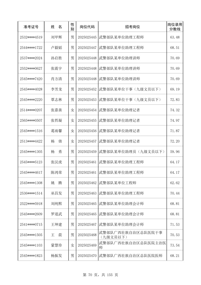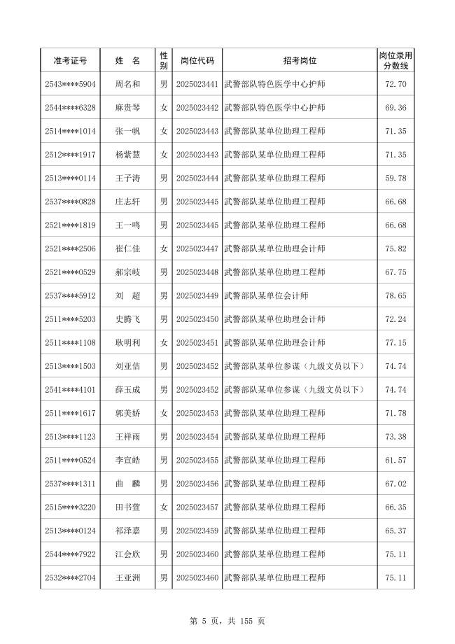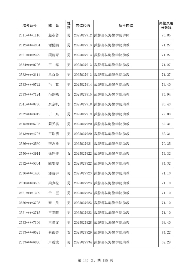 2025年武裝部文職人員擬錄用名單(含上岸分?jǐn)?shù)線) 2025-10-09