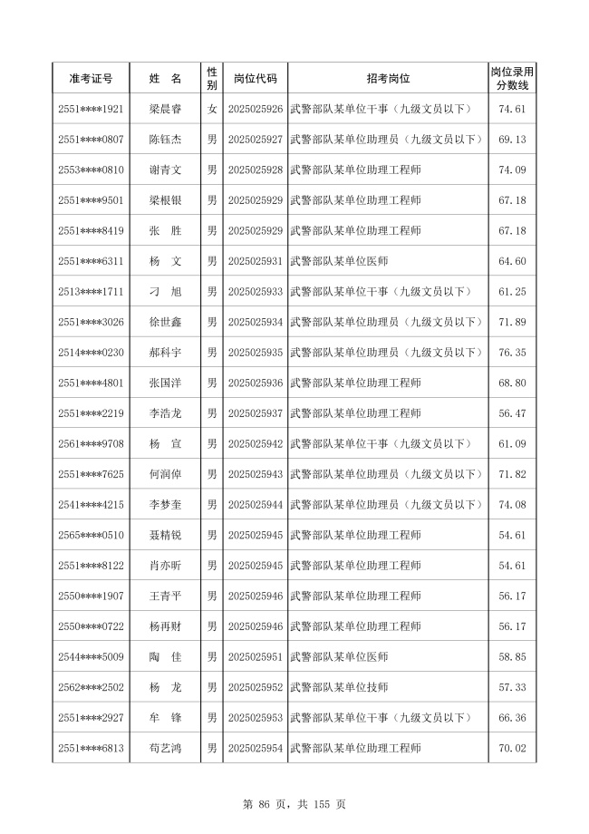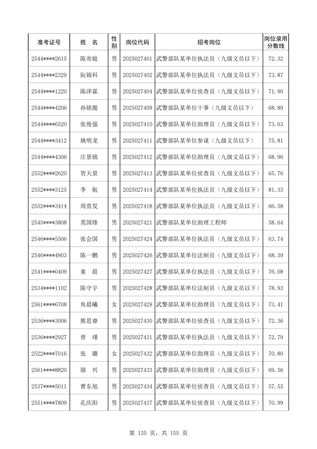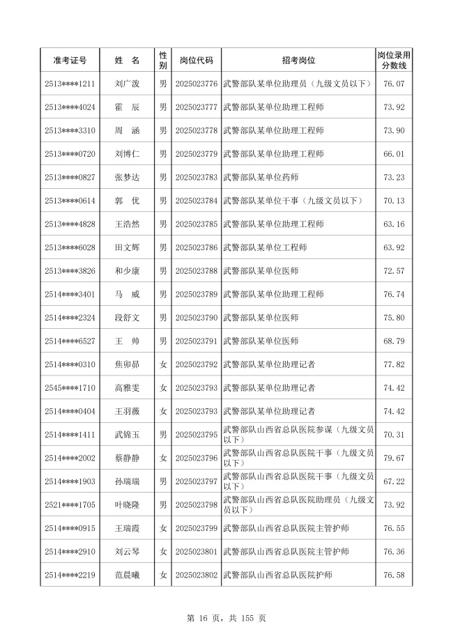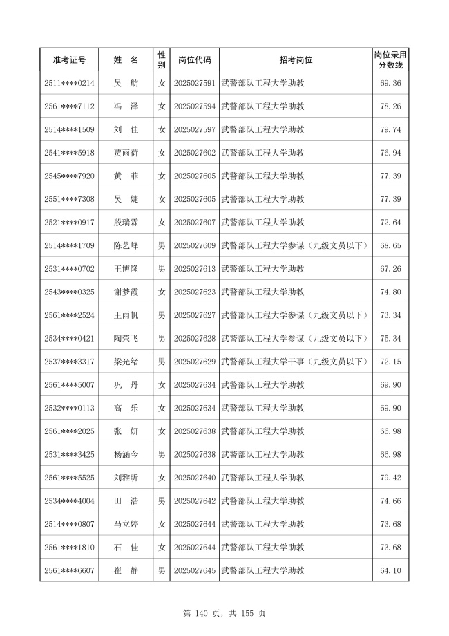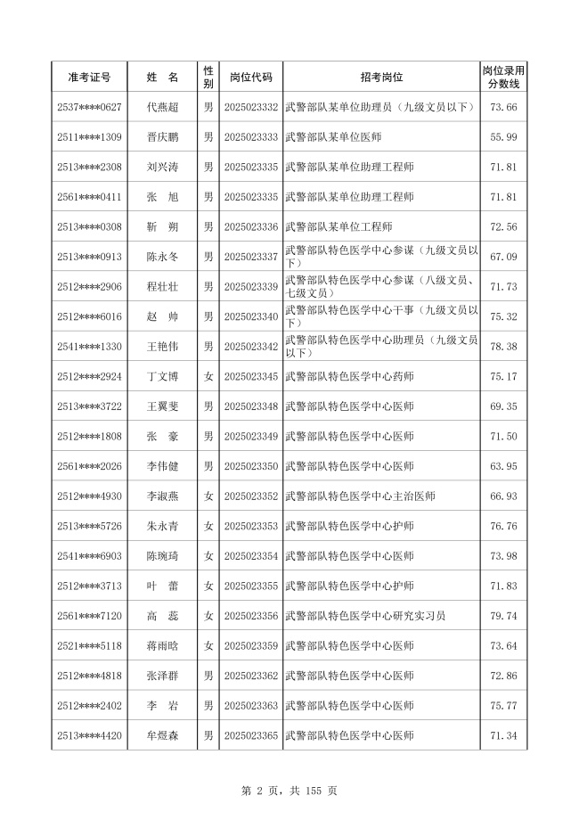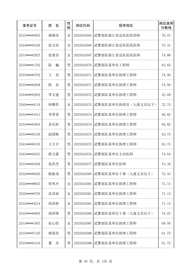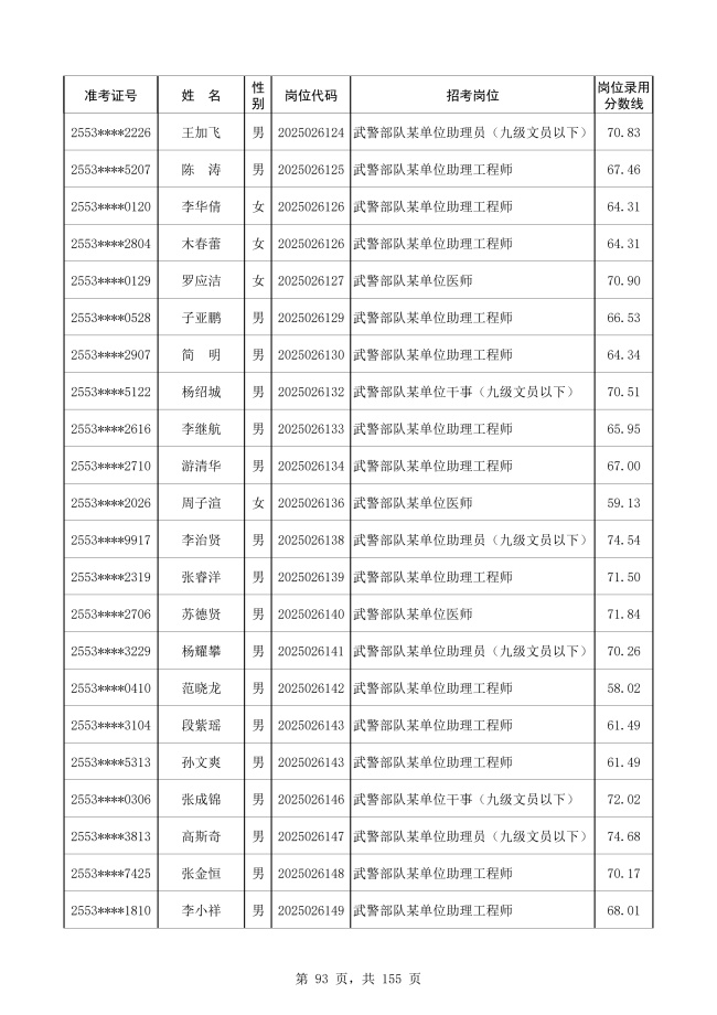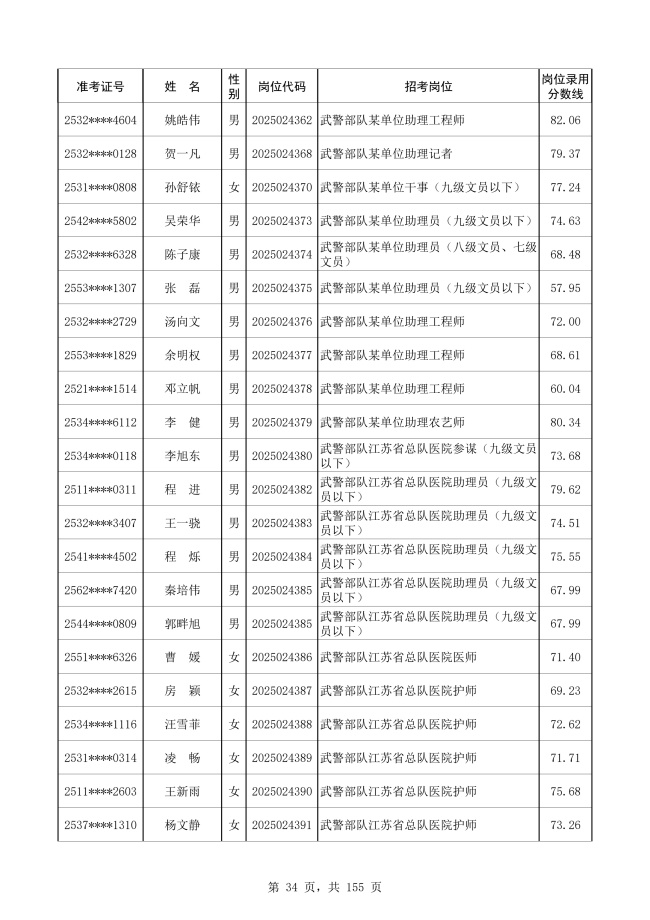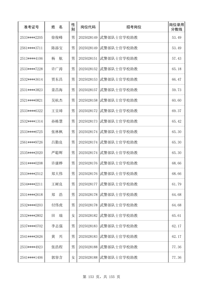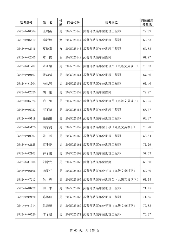 2025年武裝部文職人員擬錄用名單(含上岸分?jǐn)?shù)線) 2025-10-09