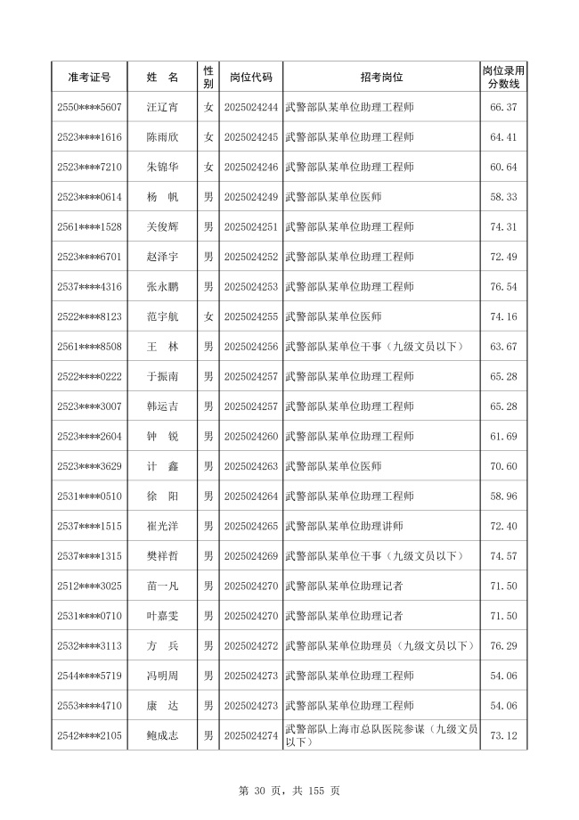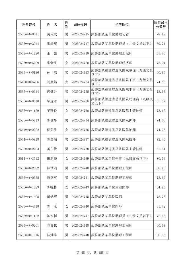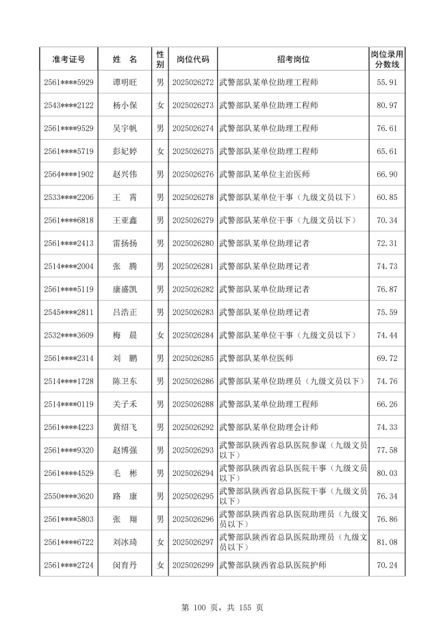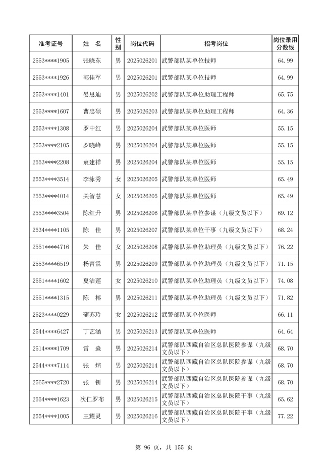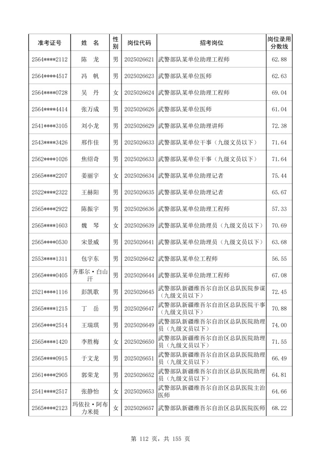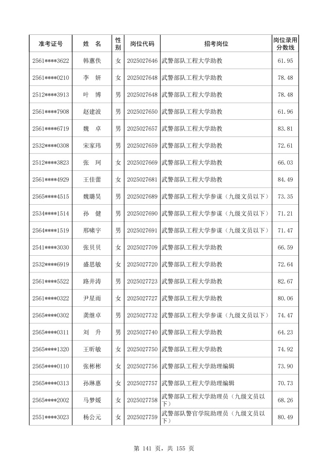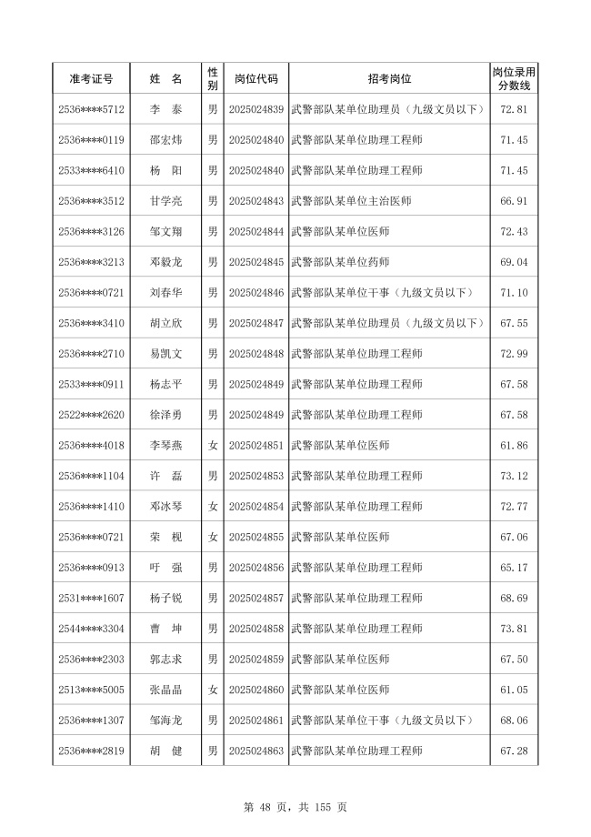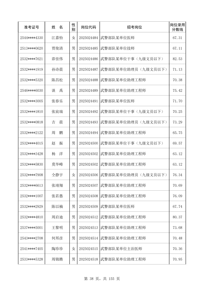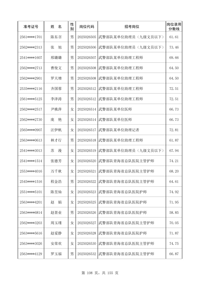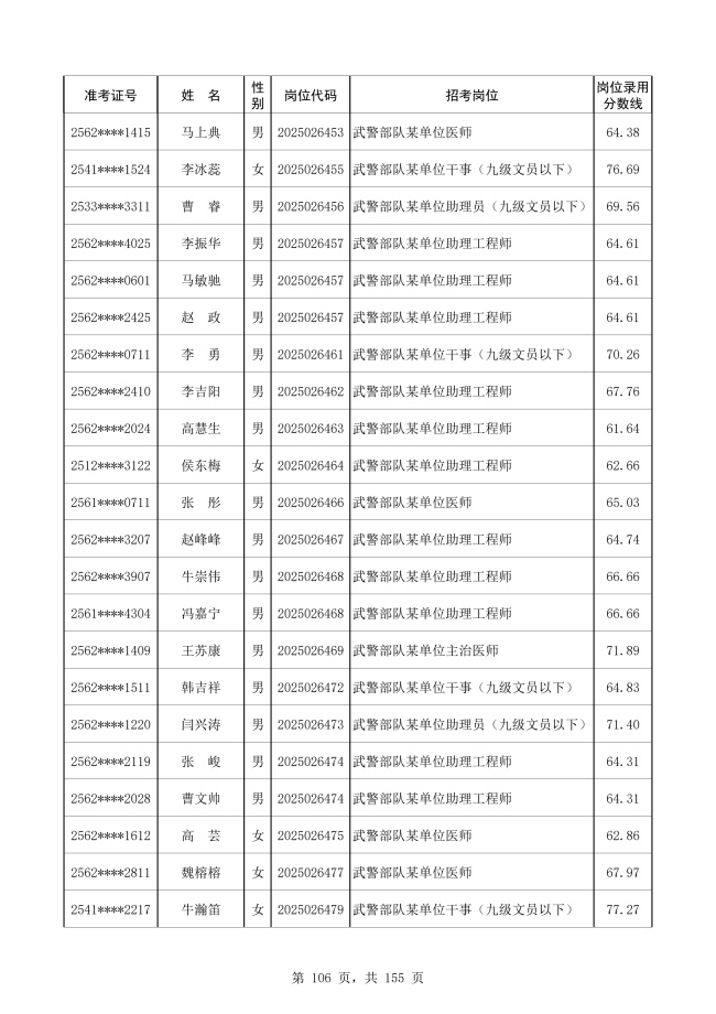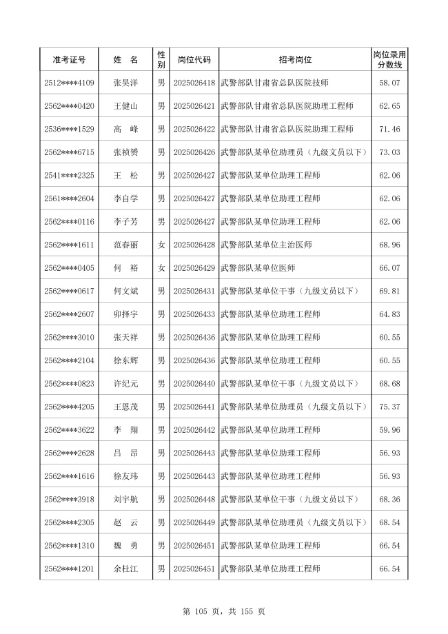 2025年武裝部文職人員擬錄用名單(含上岸分?jǐn)?shù)線) 2025-10-09