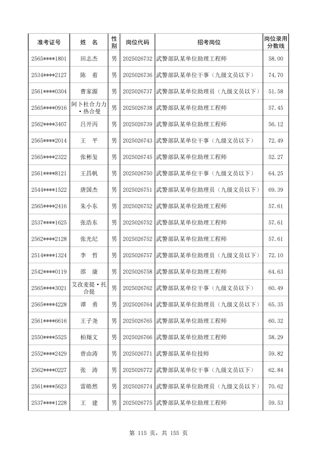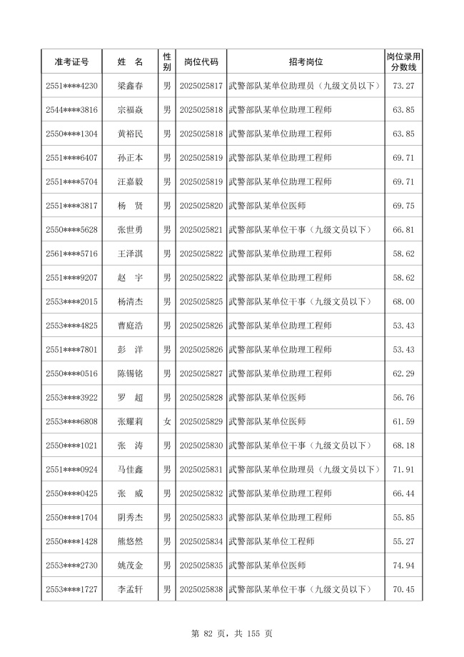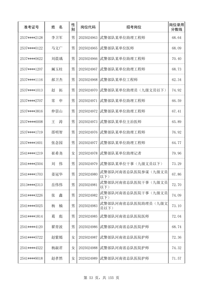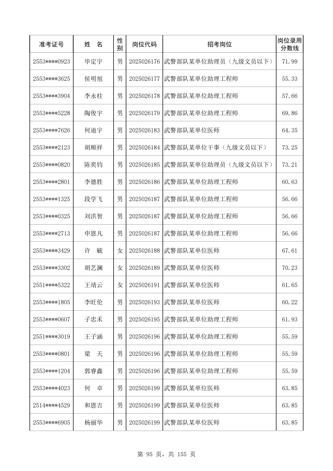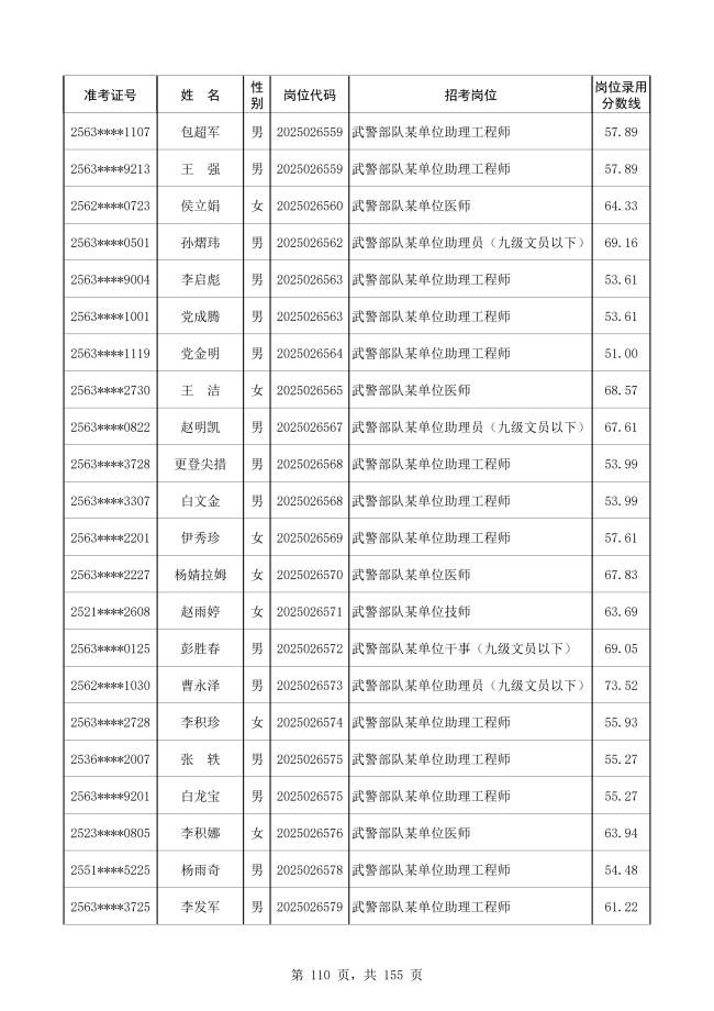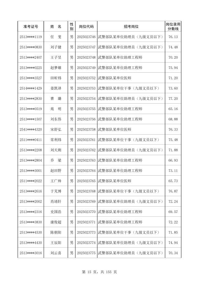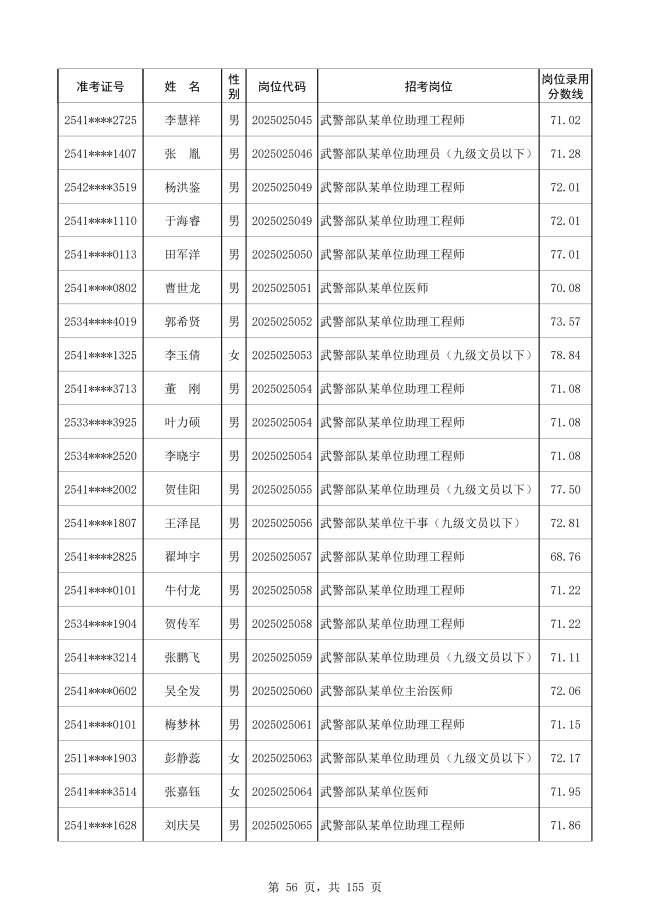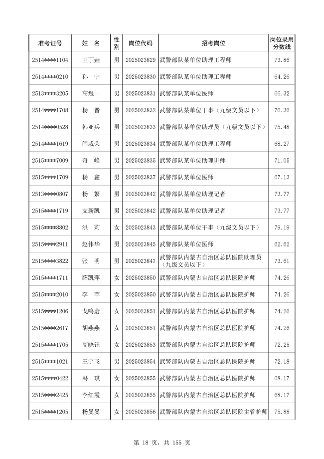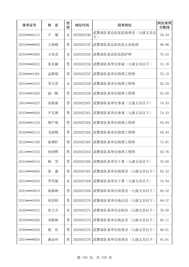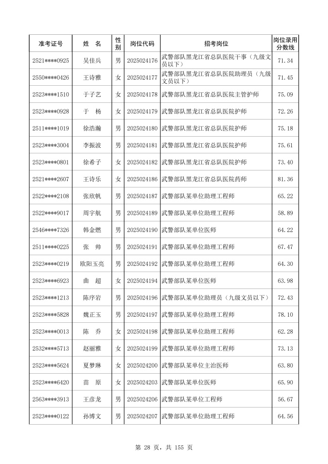 2025年武裝部文職人員擬錄用名單(含上岸分?jǐn)?shù)線) 2025-10-09