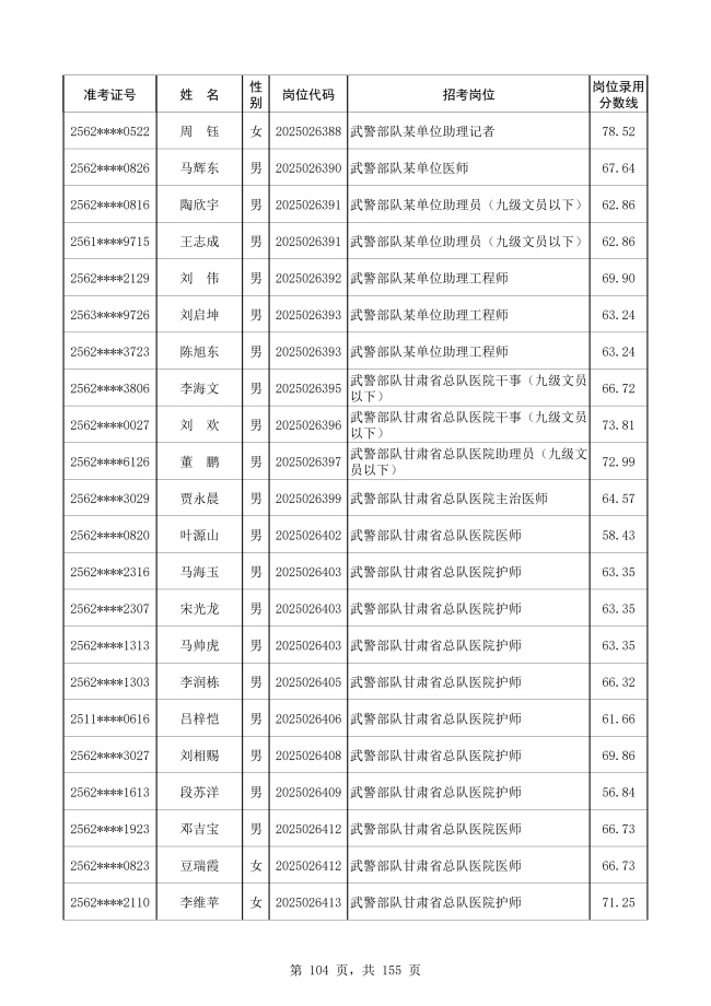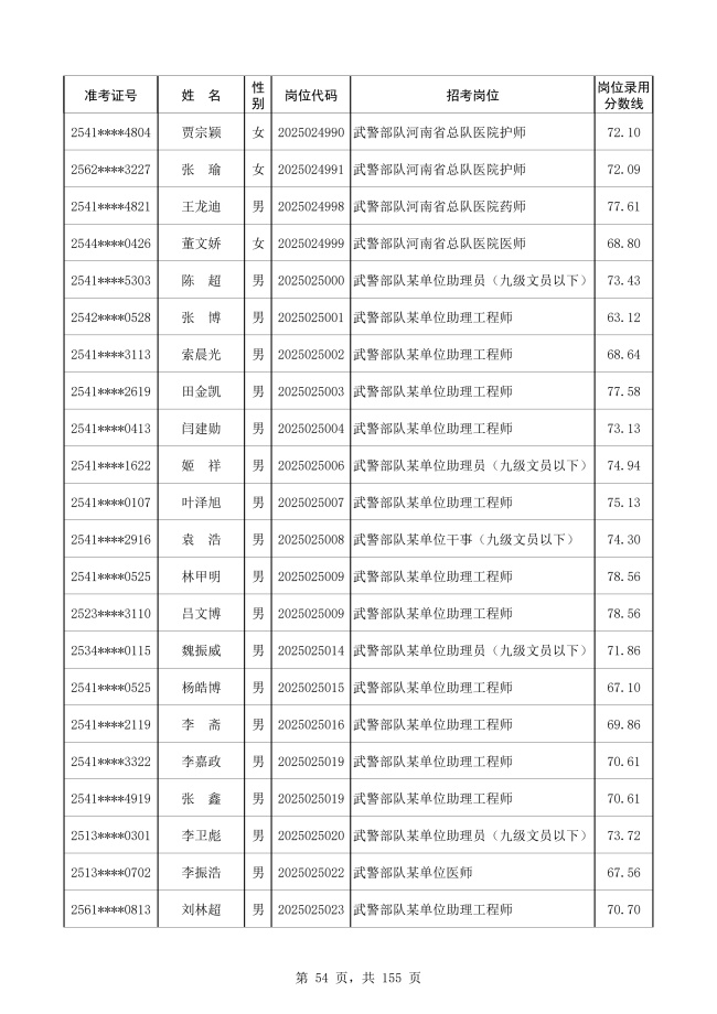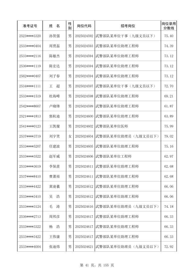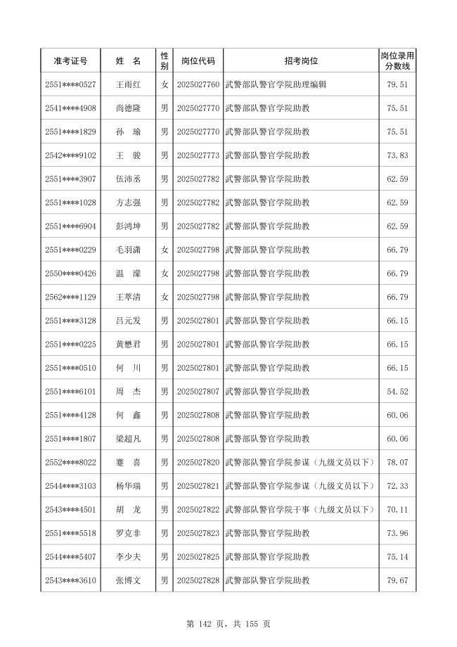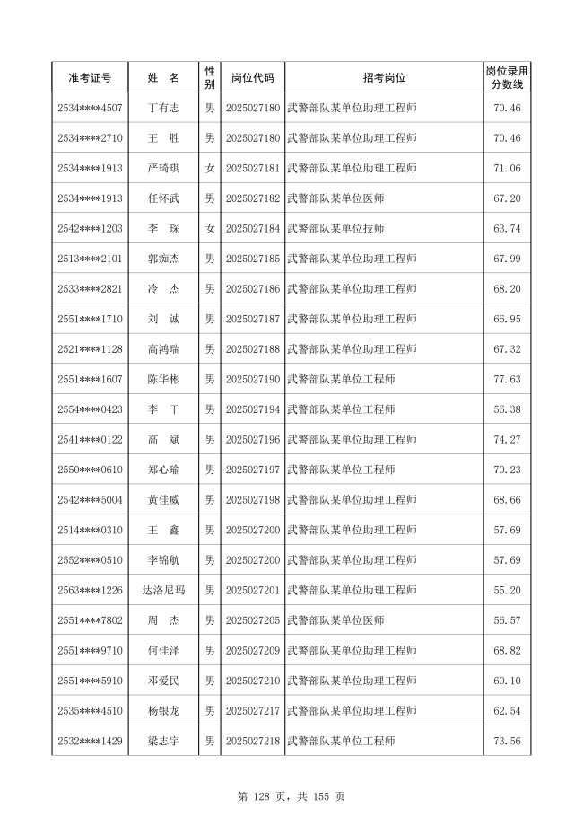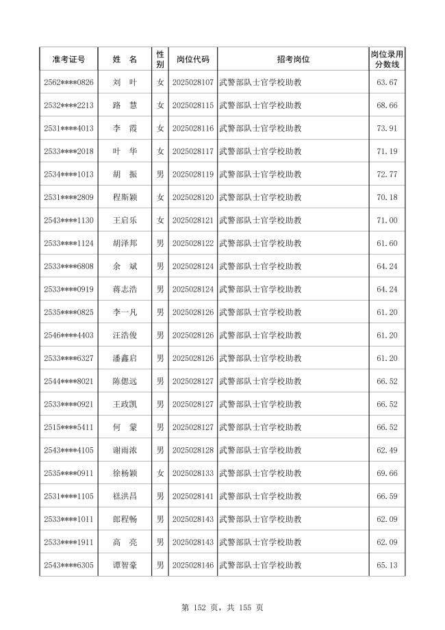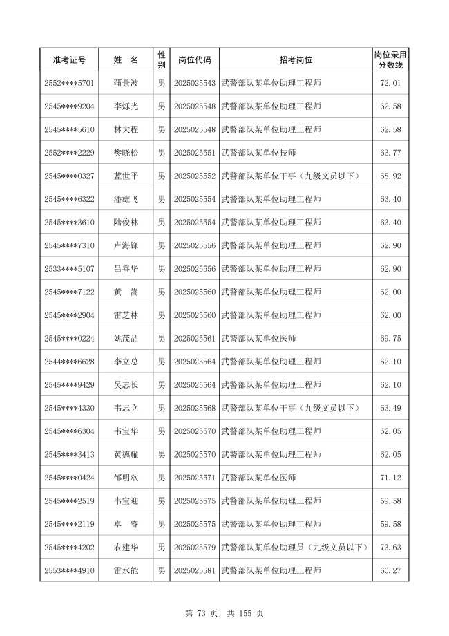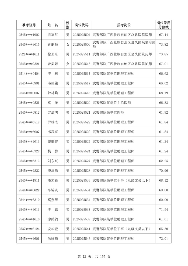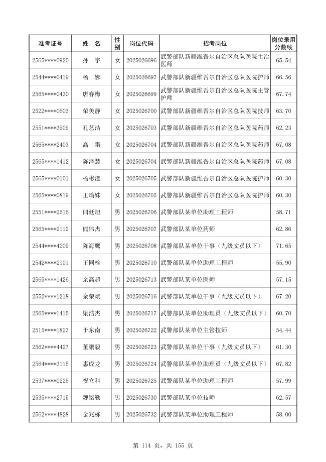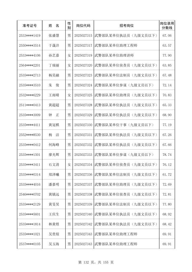 2025年武裝部文職人員擬錄用名單(含上岸分?jǐn)?shù)線) 2025-10-09