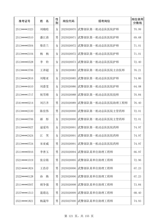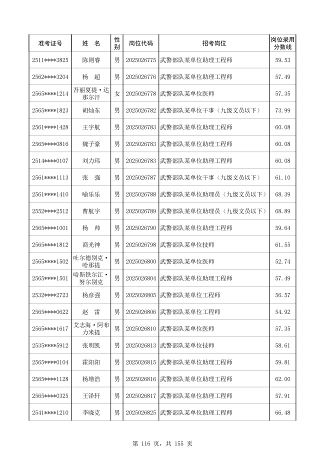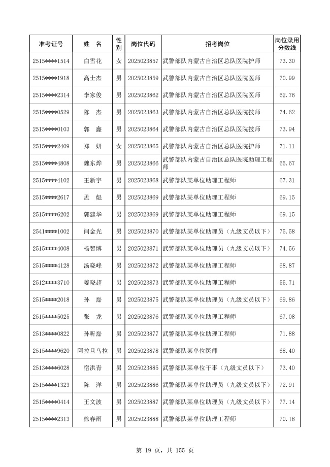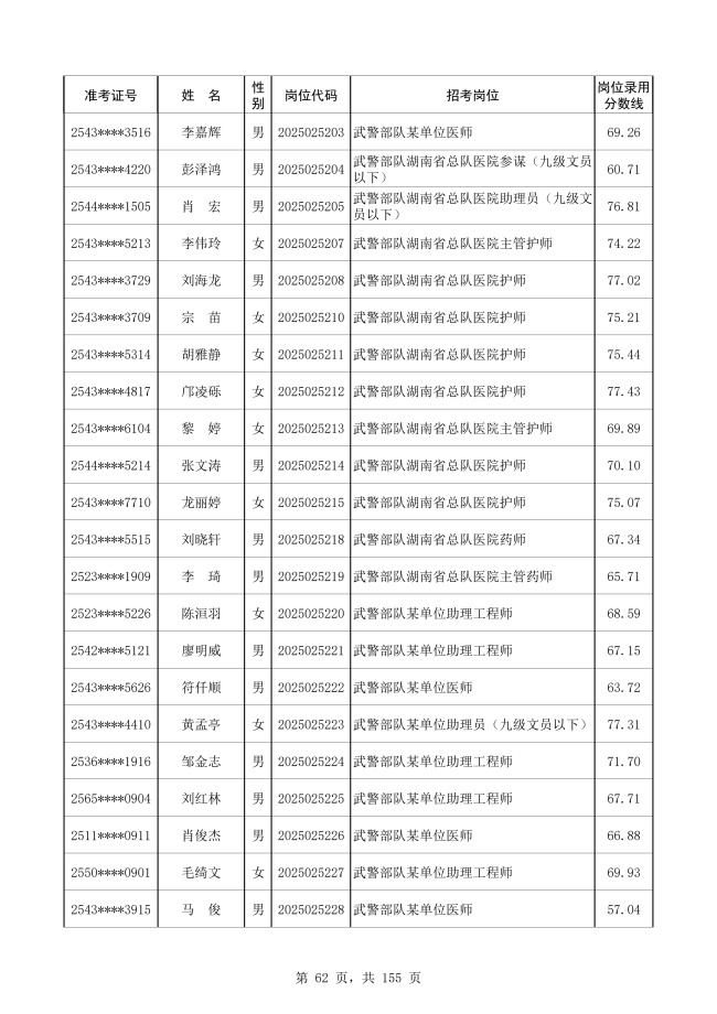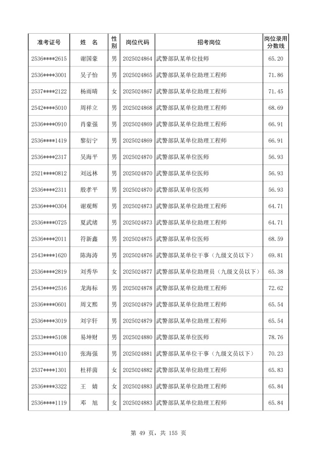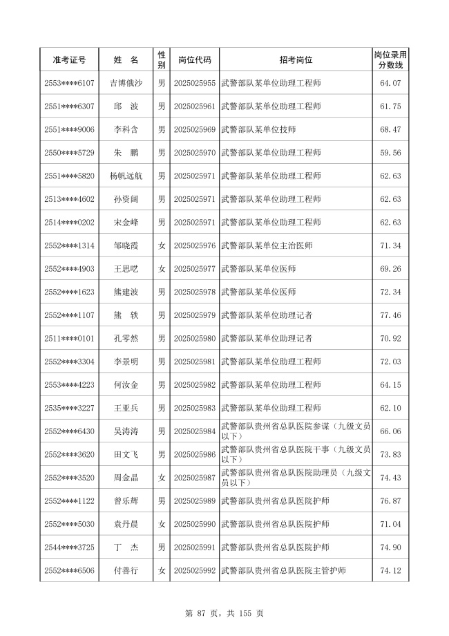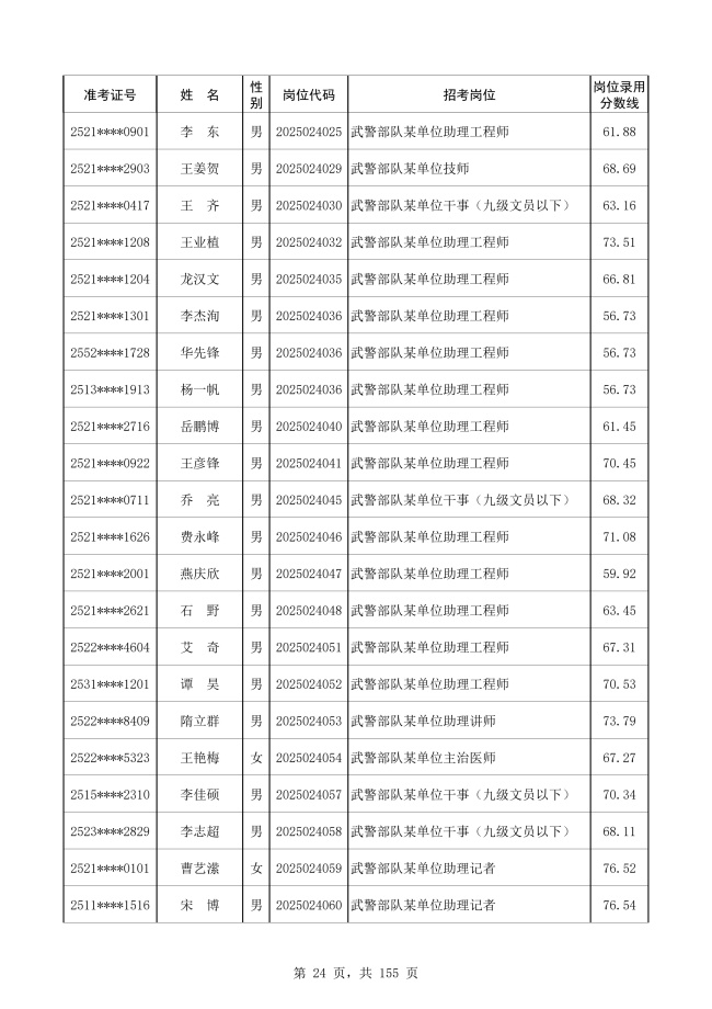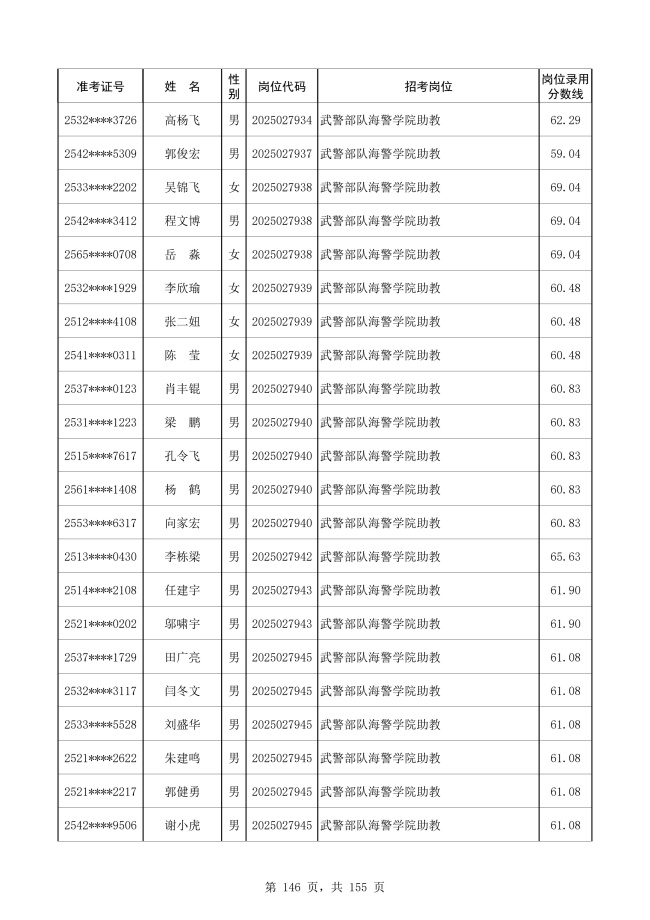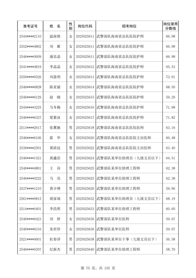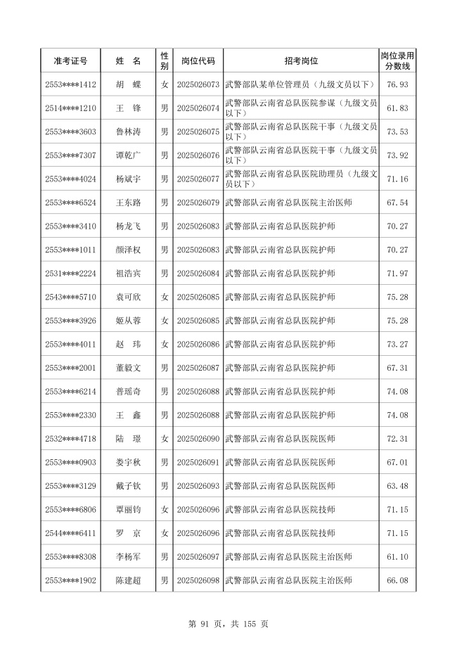 2025年武裝部文職人員擬錄用名單(含上岸分?jǐn)?shù)線) 2025-10-09