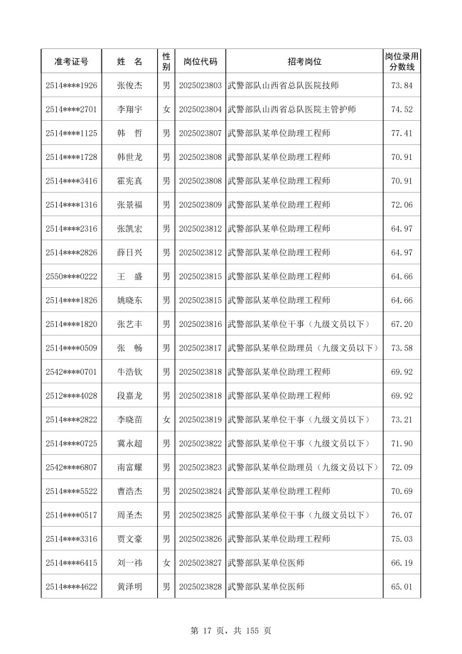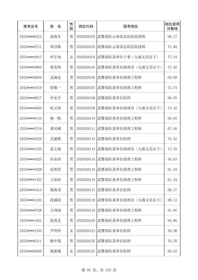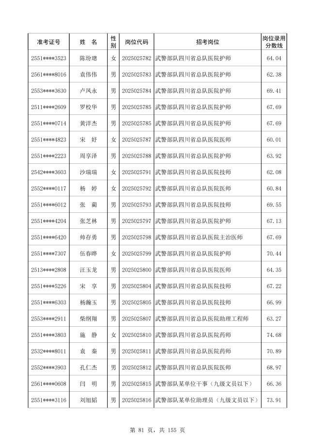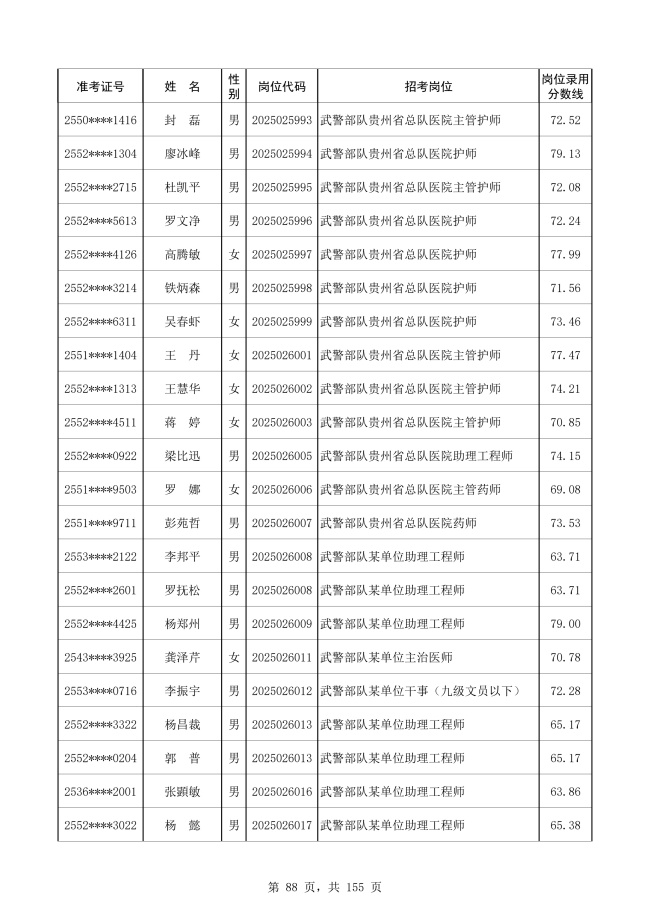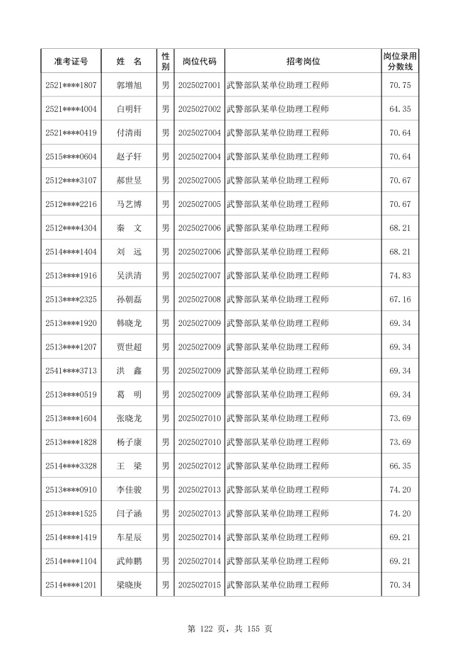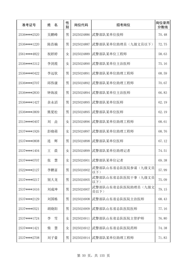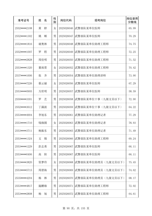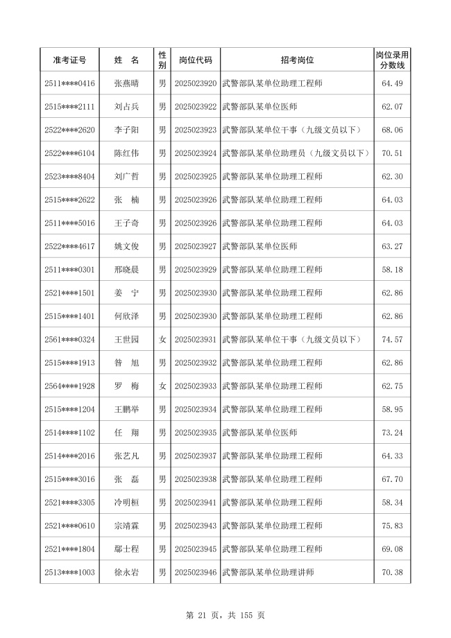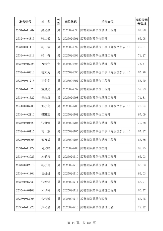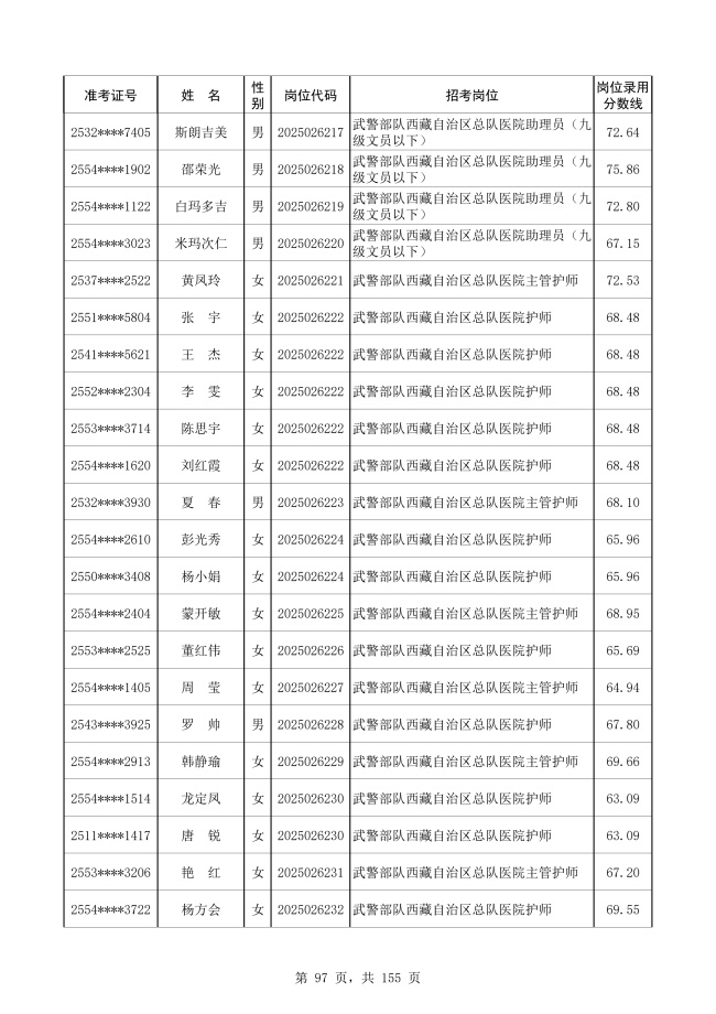 2025年武裝部文職人員擬錄用名單(含上岸分?jǐn)?shù)線) 2025-10-09