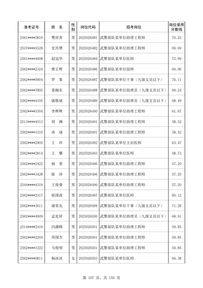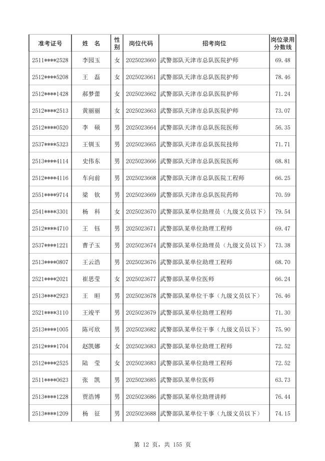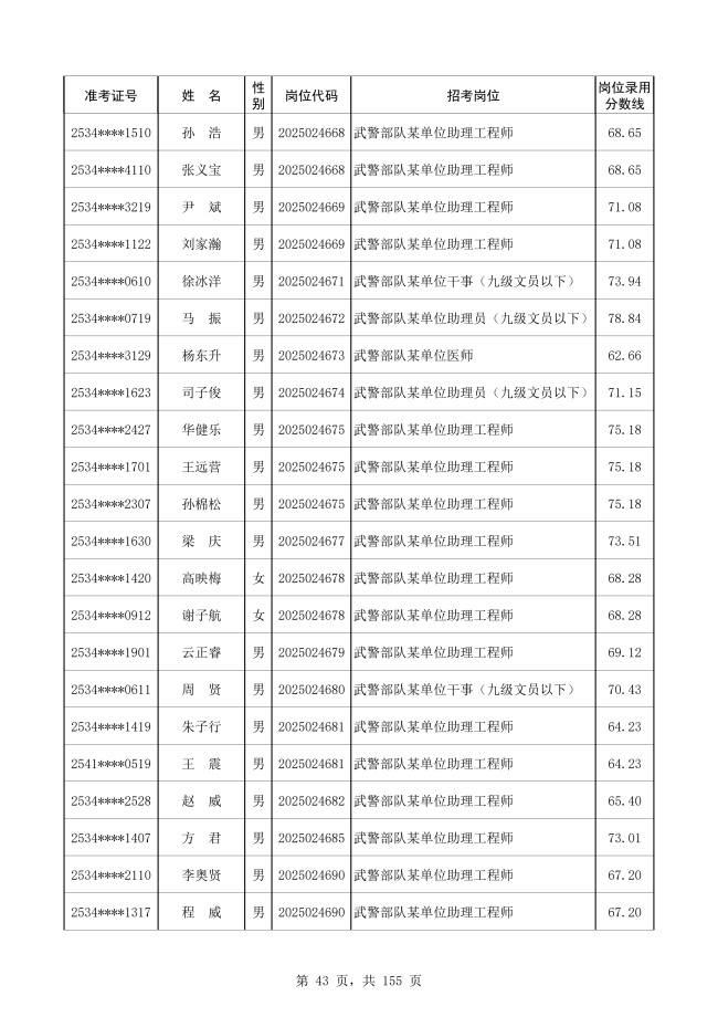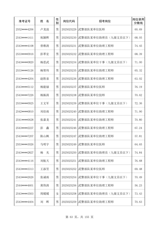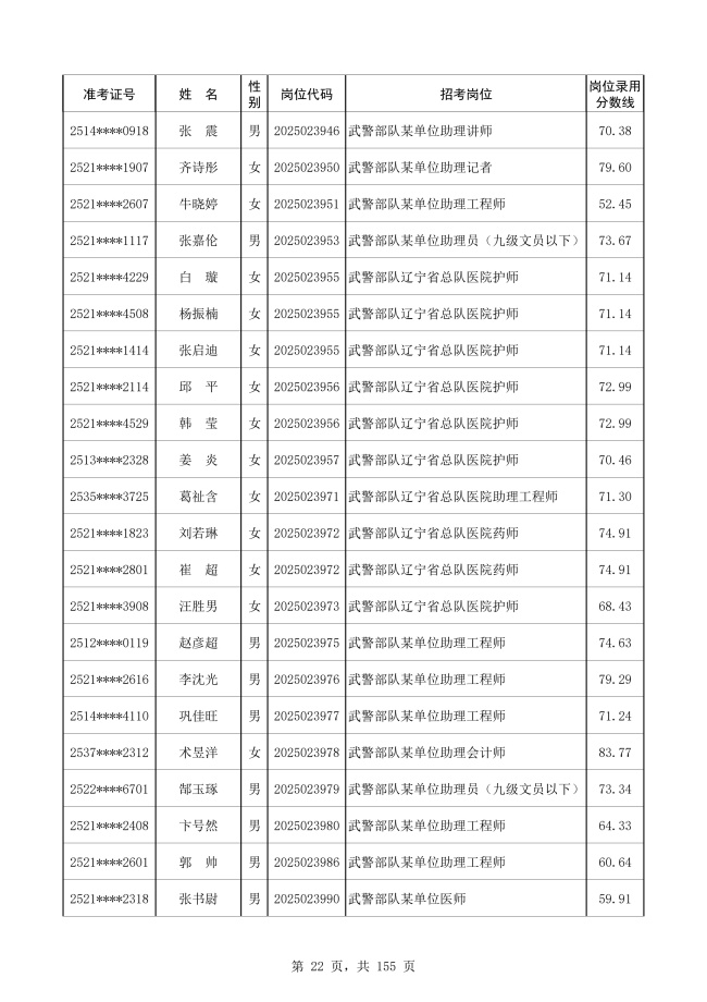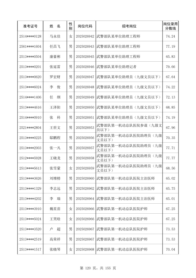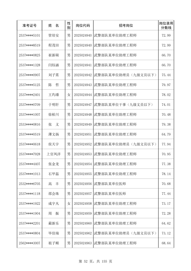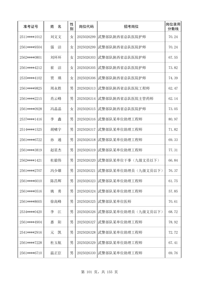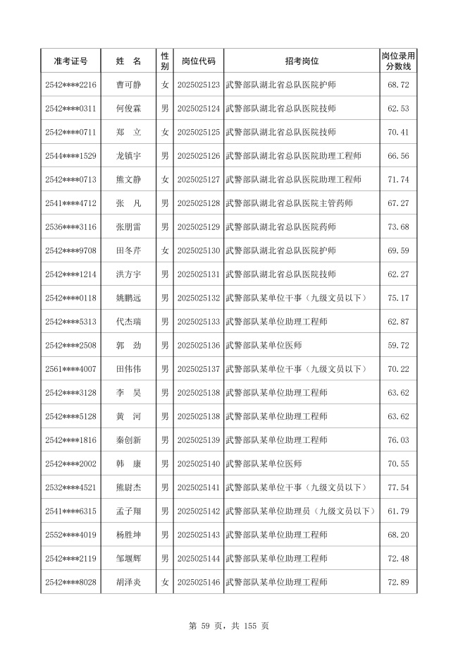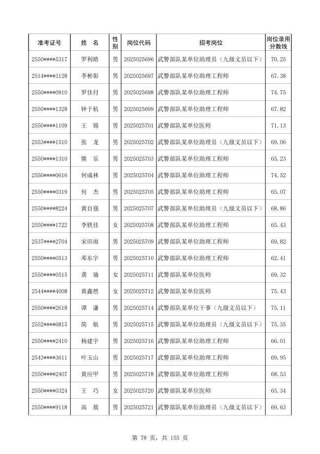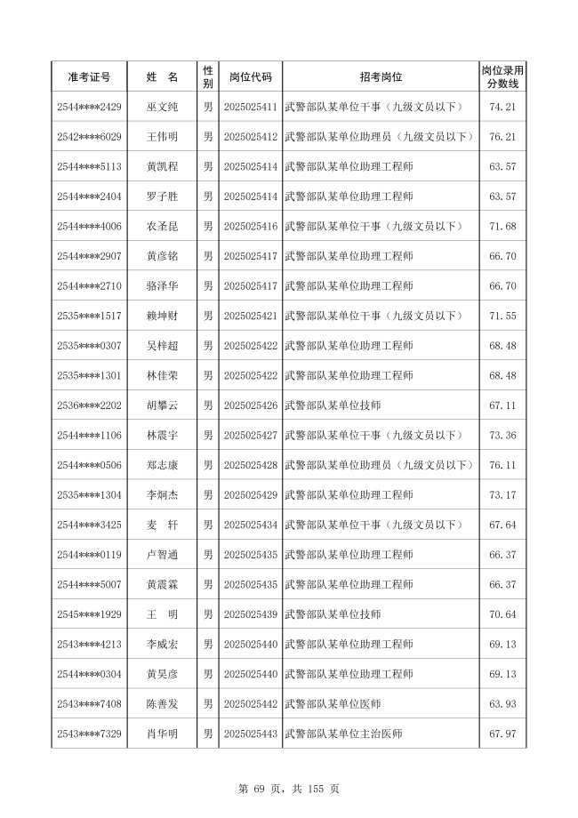 2025年武裝部文職人員擬錄用名單(含上岸分?jǐn)?shù)線) 2025-10-09