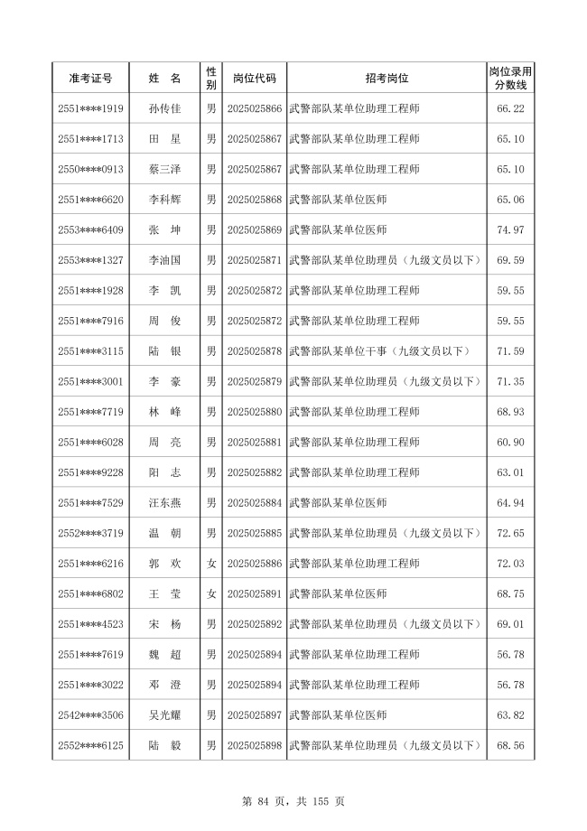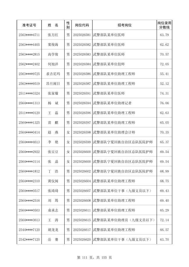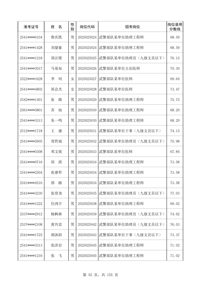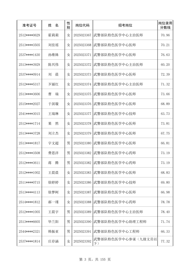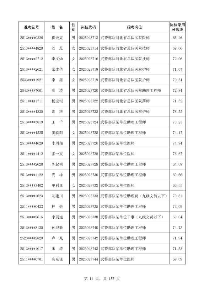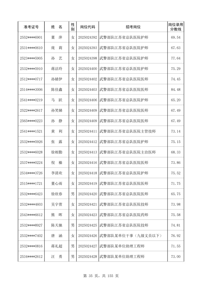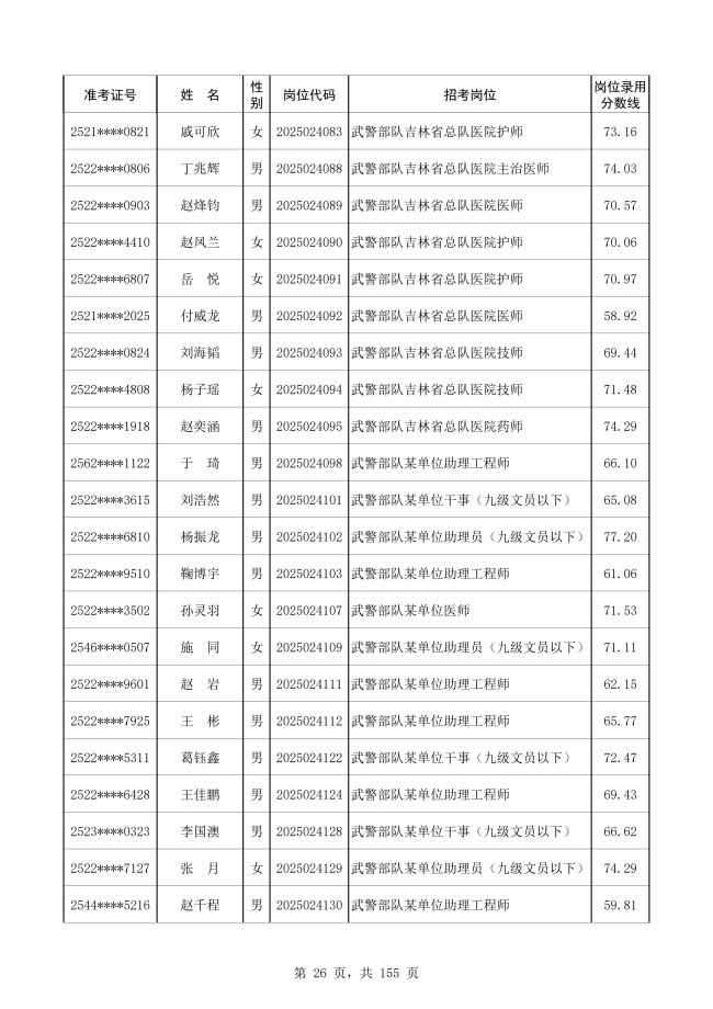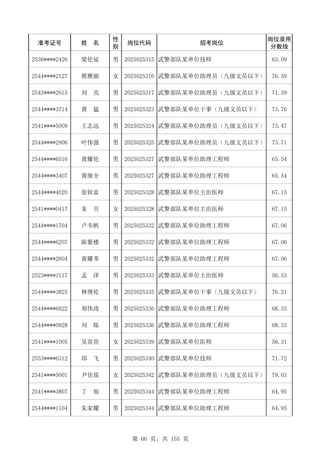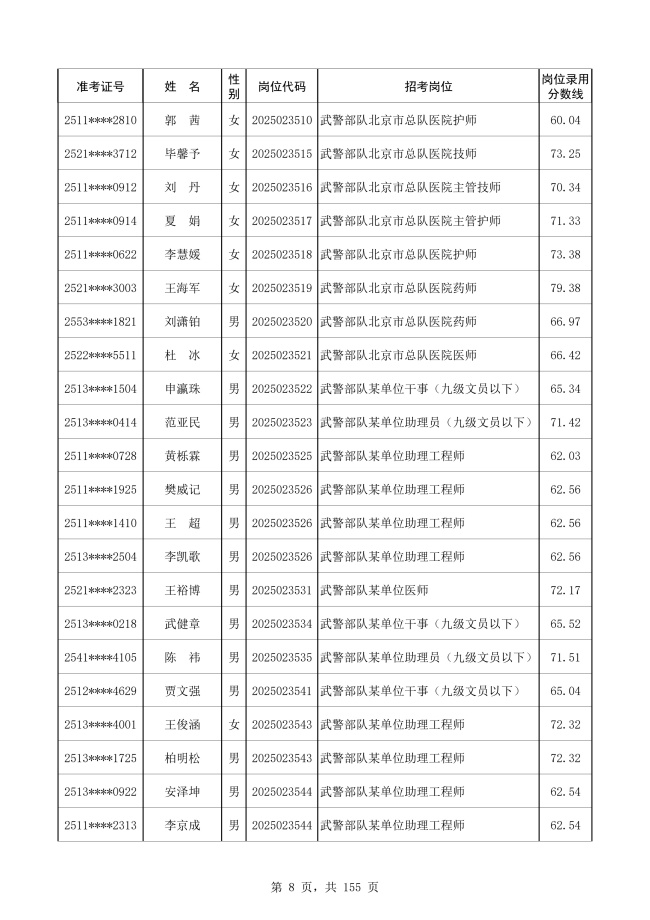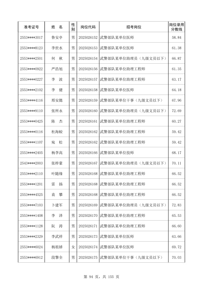 2025年武裝部文職人員擬錄用名單(含上岸分?jǐn)?shù)線) 2025-10-09