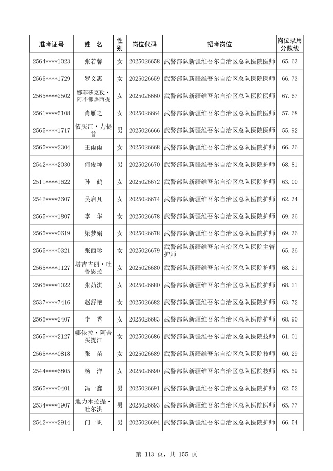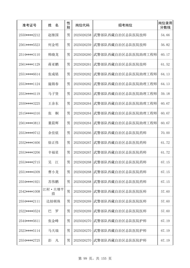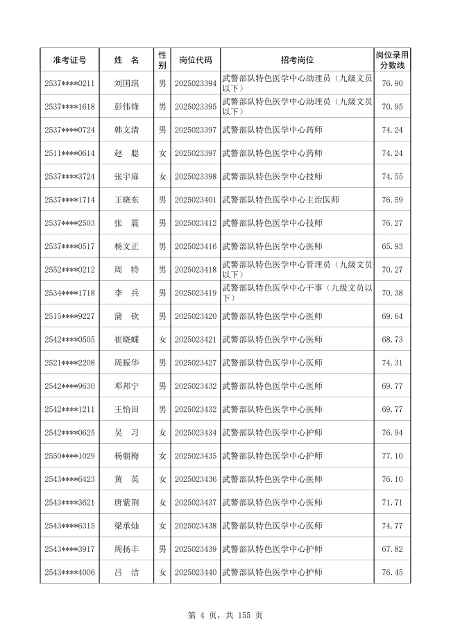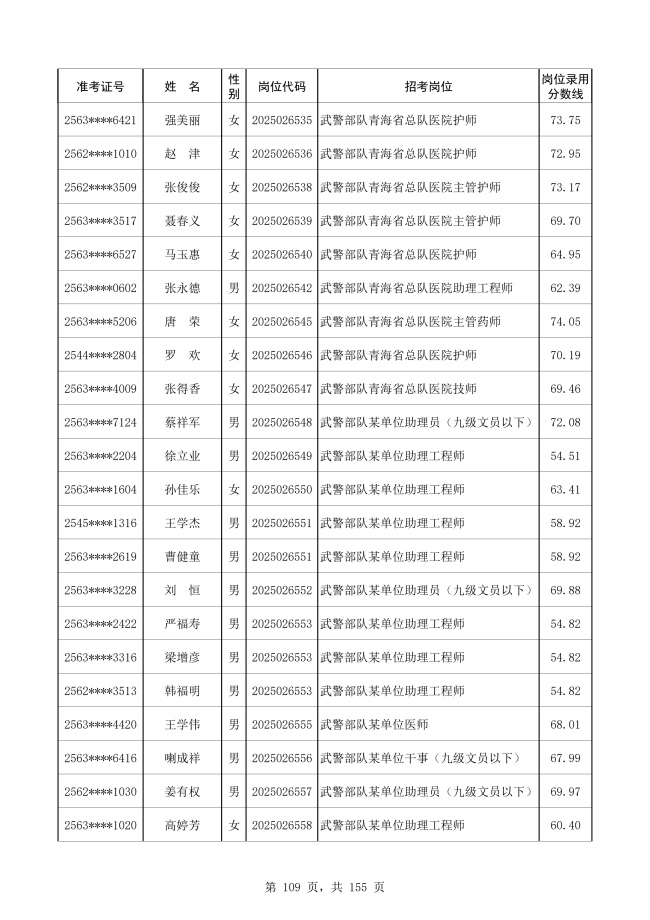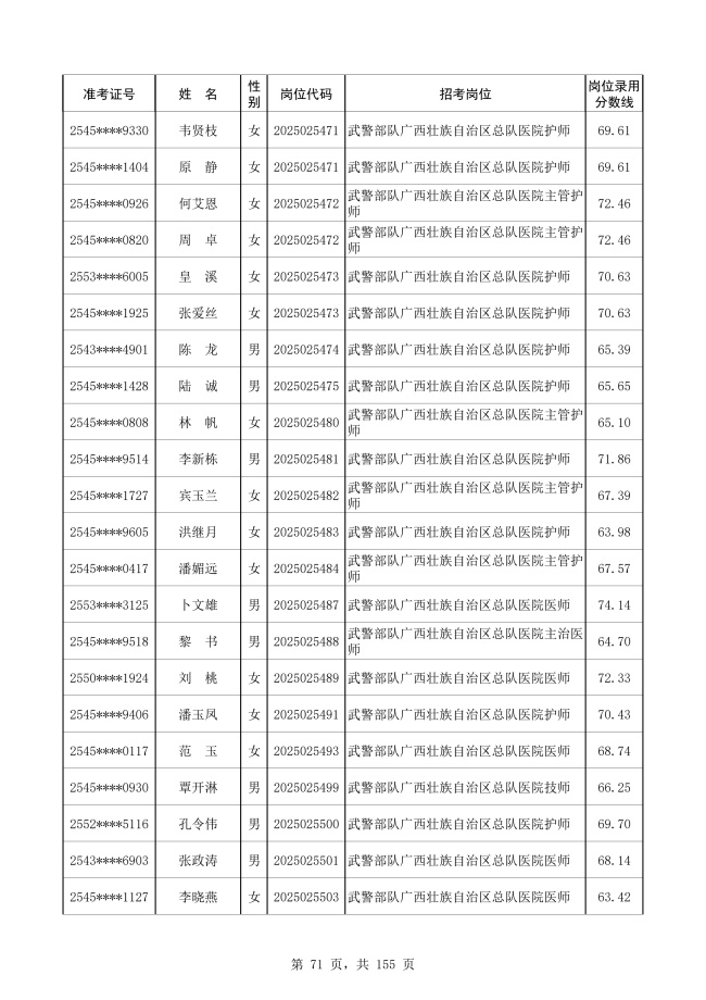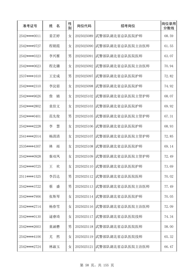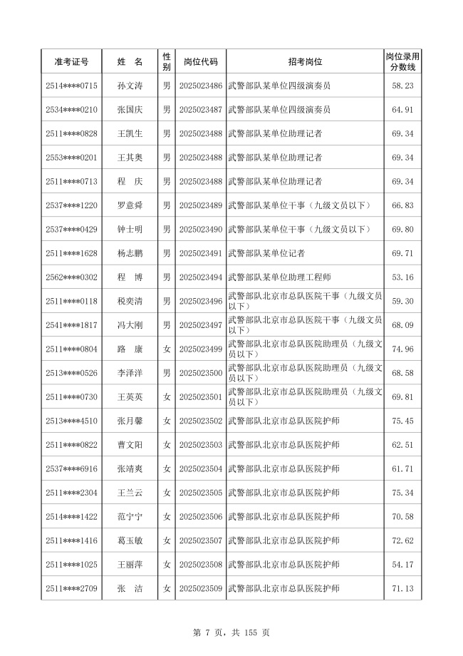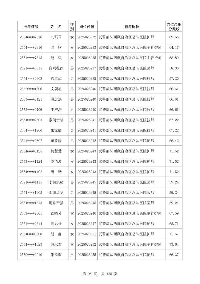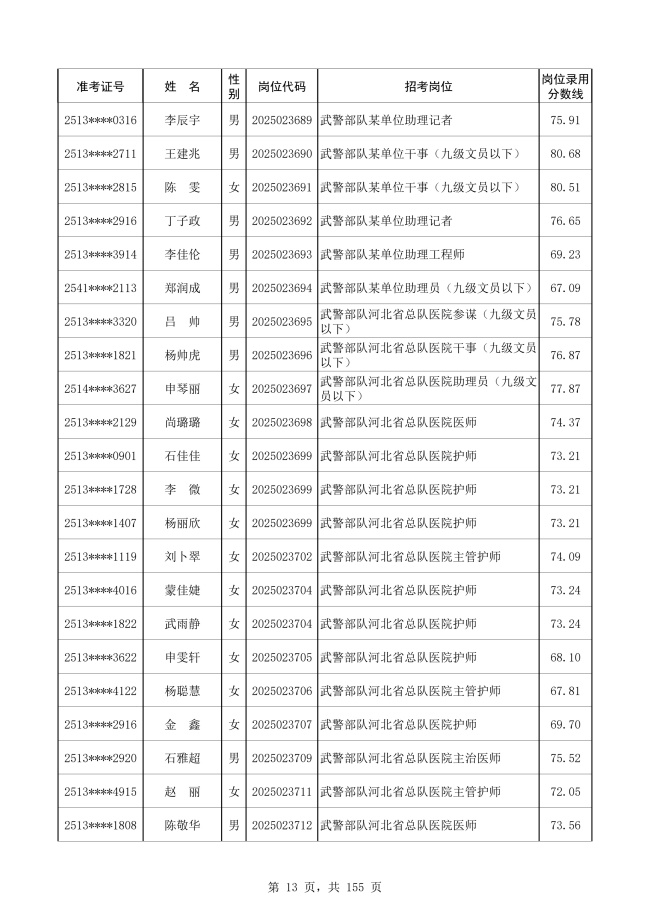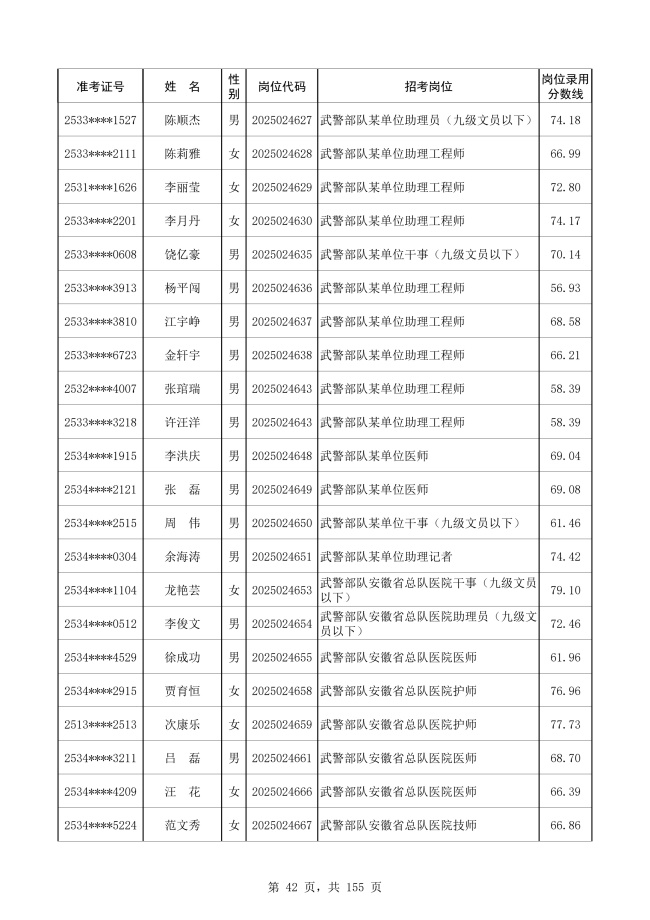 2025年武裝部文職人員擬錄用名單(含上岸分?jǐn)?shù)線) 2025-10-09