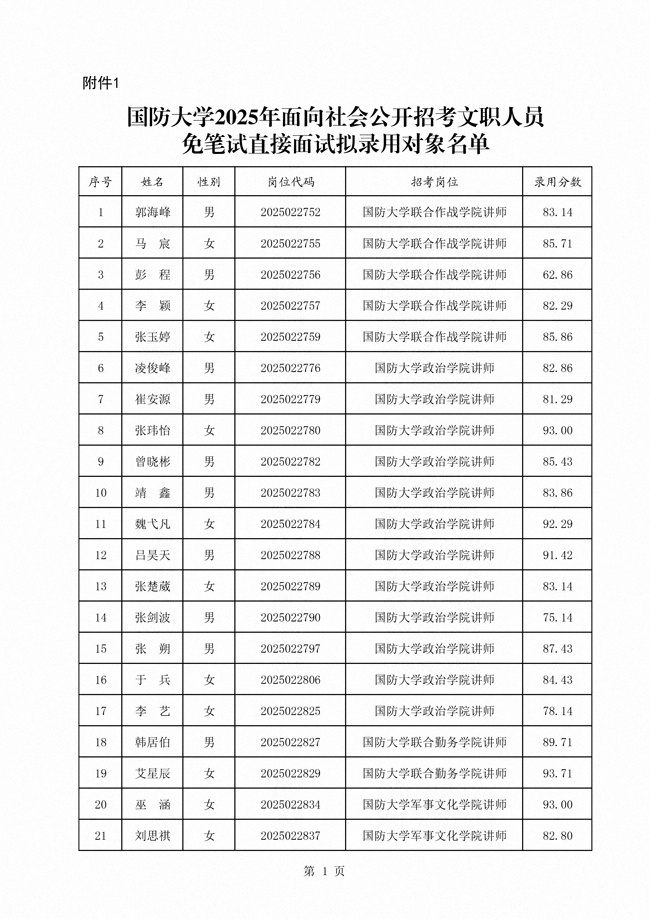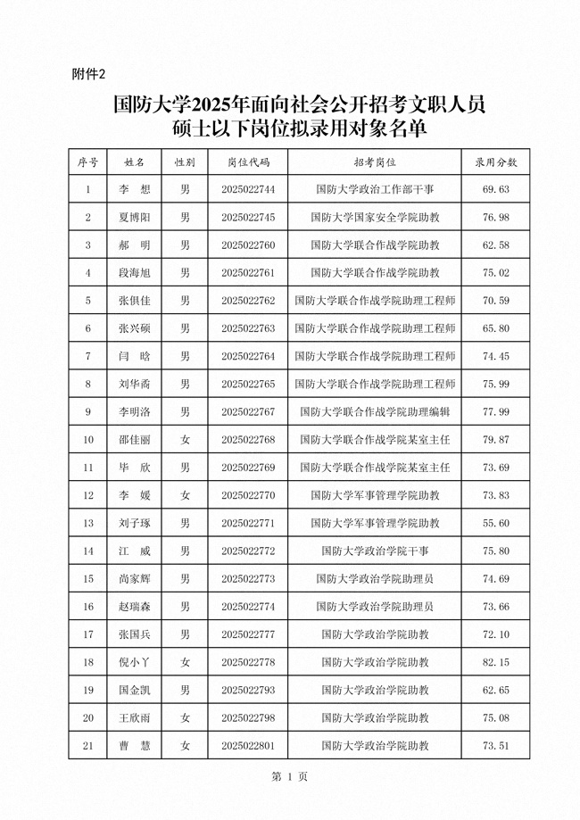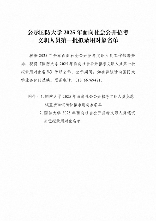 原文標(biāo)題:公示國防大學(xué)2025年面向社會(huì)公開招考文職人員第一批擬錄用對(duì)象名單