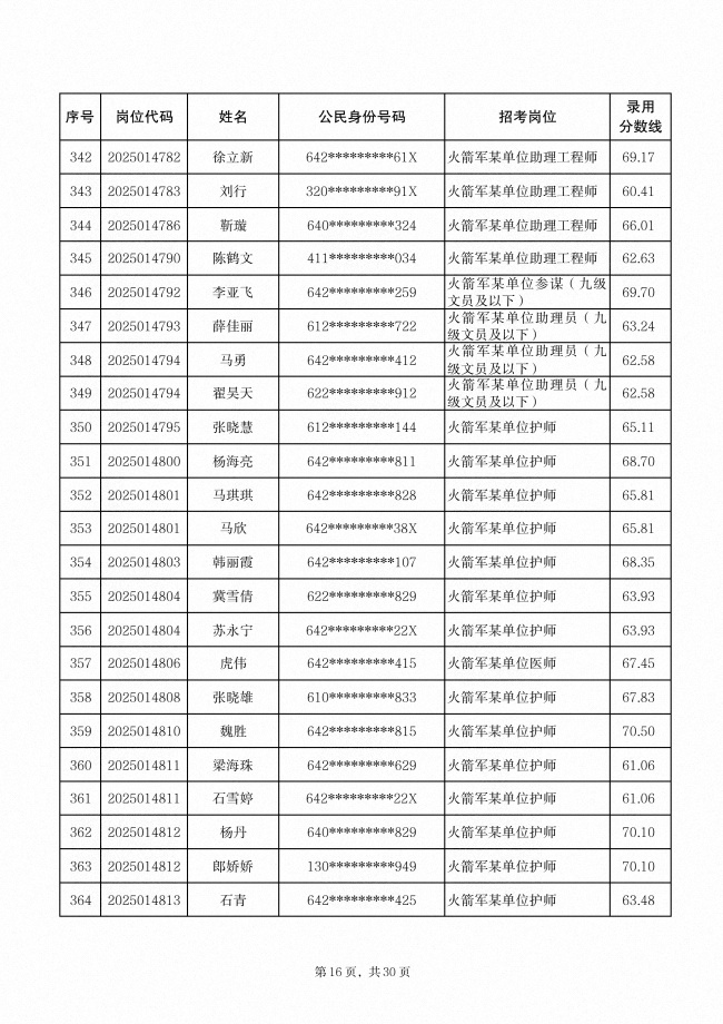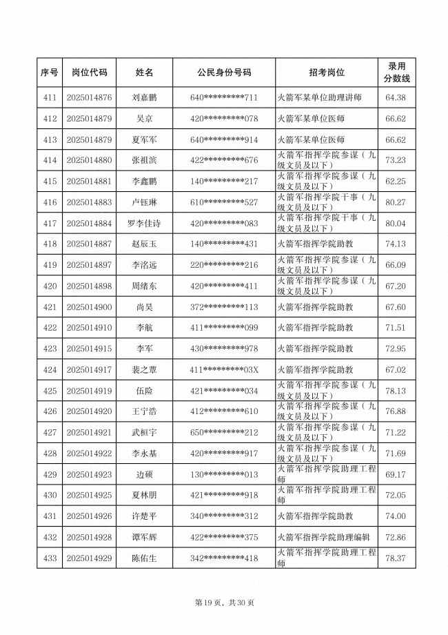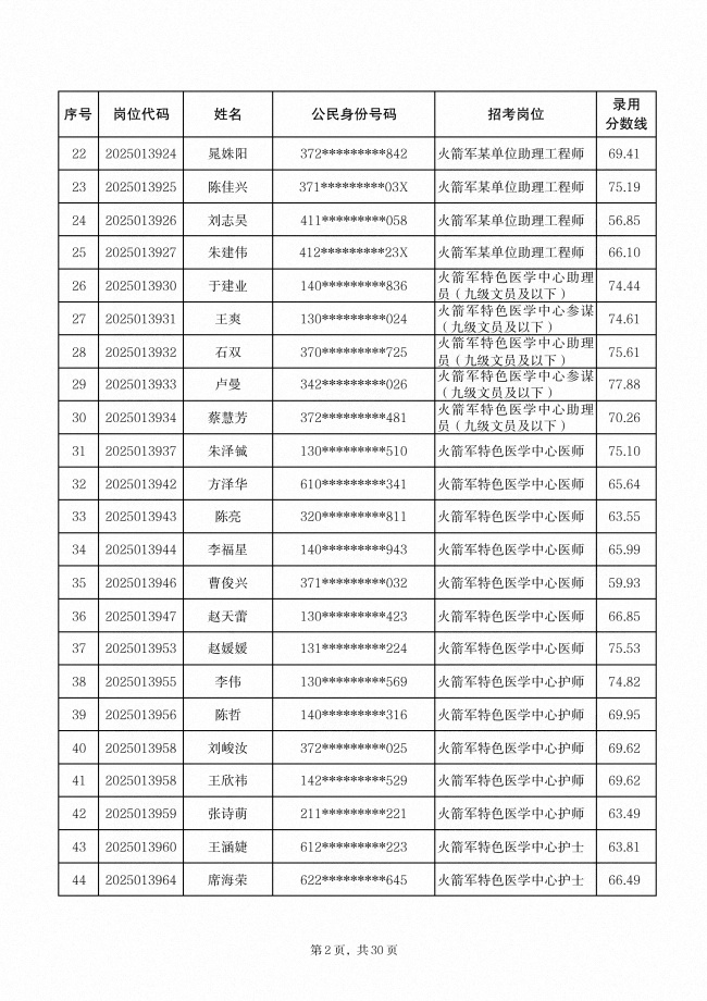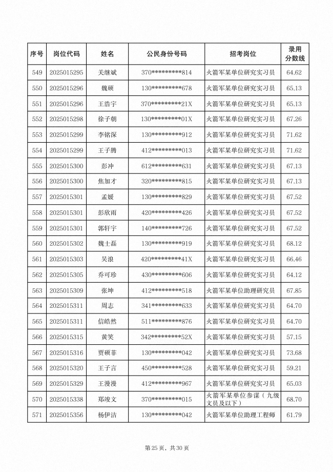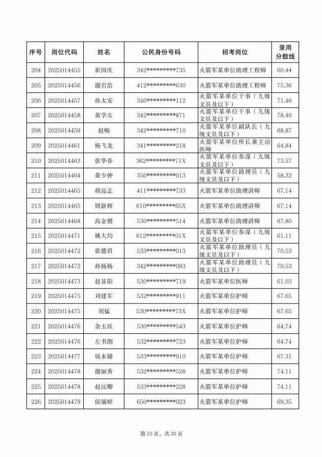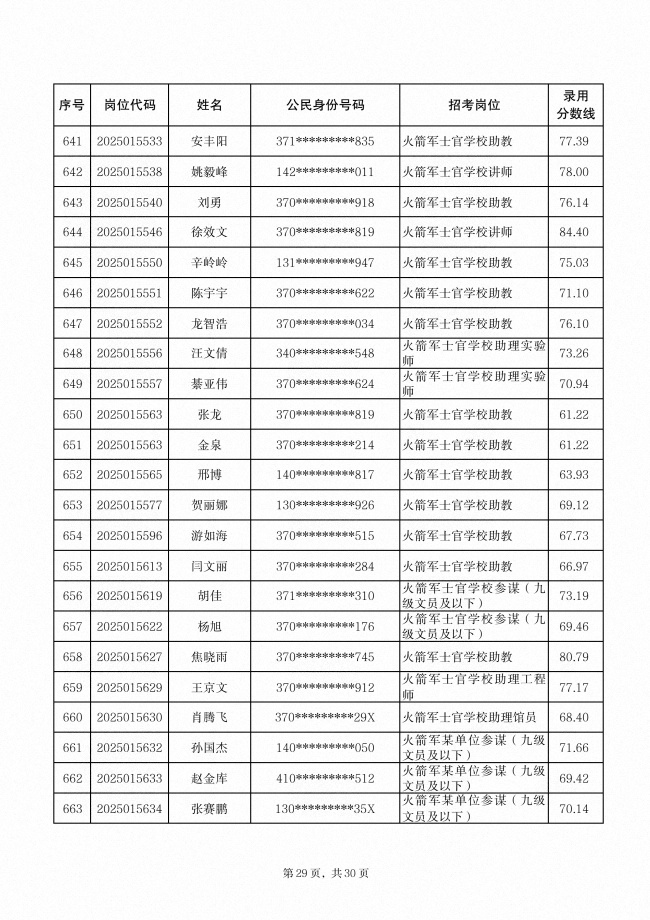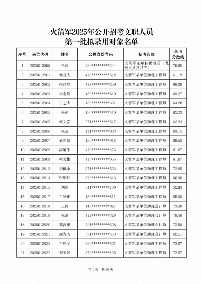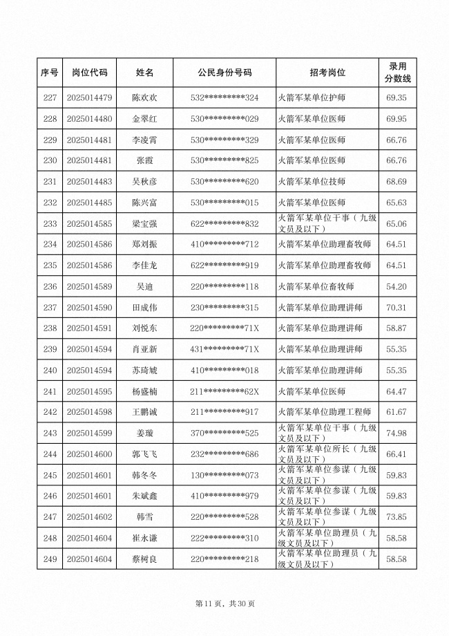 2025年武裝部文職人員擬錄用名單(含上岸分數(shù)線) 2025-10-09