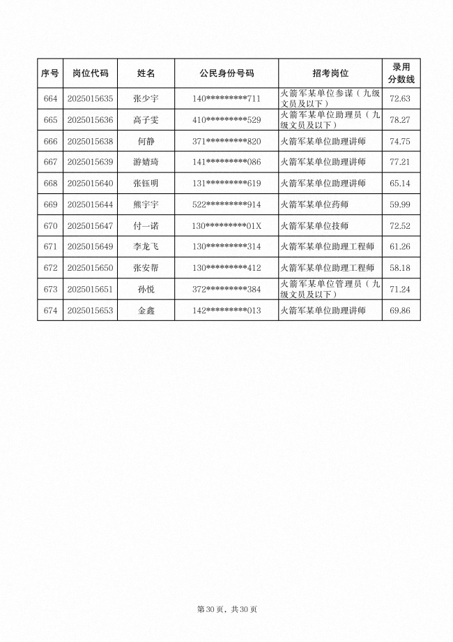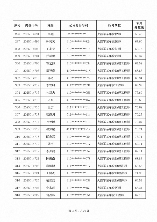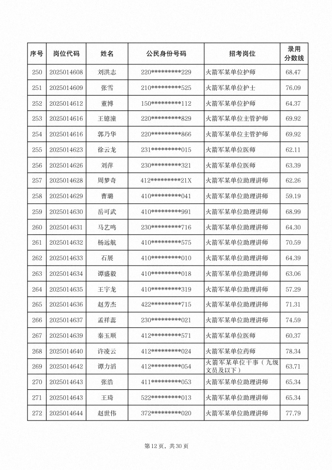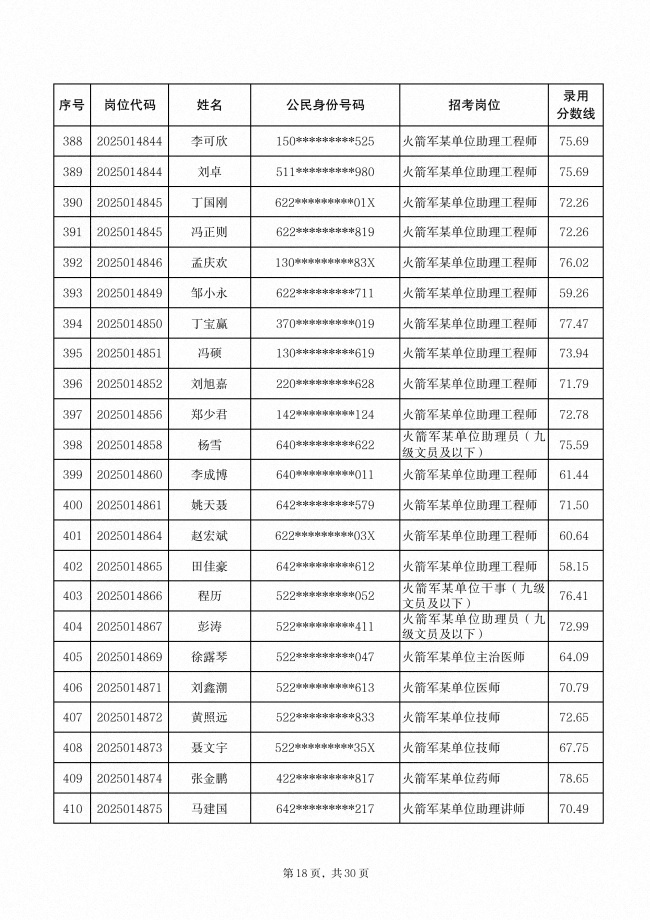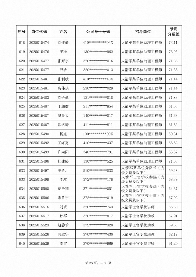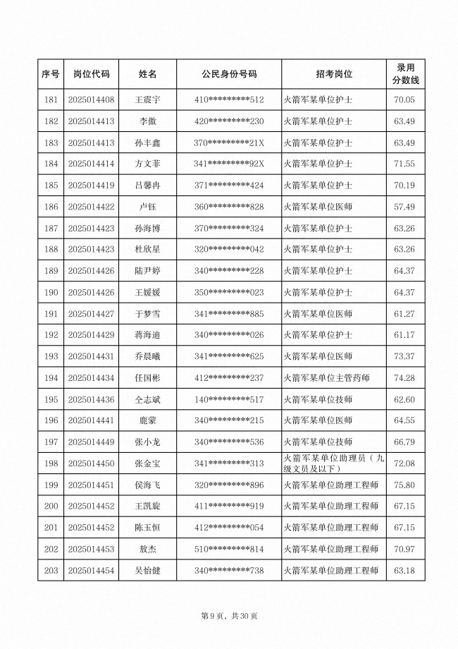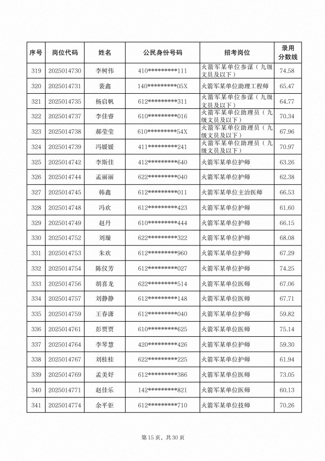 2025年武裝部文職人員擬錄用名單(含上岸分數(shù)線) 2025-10-09