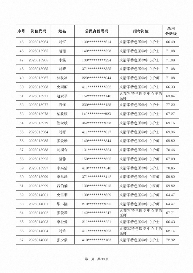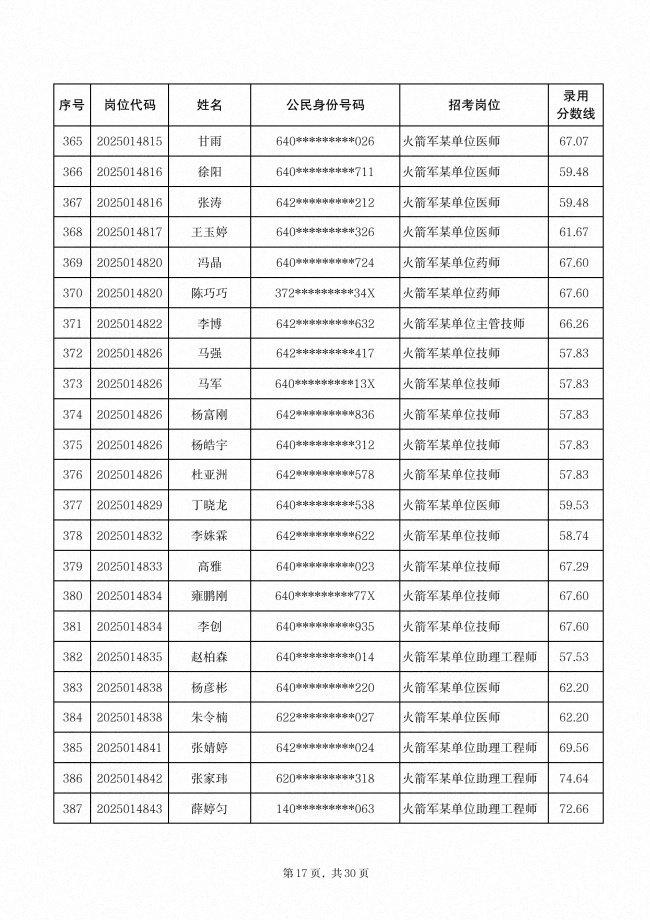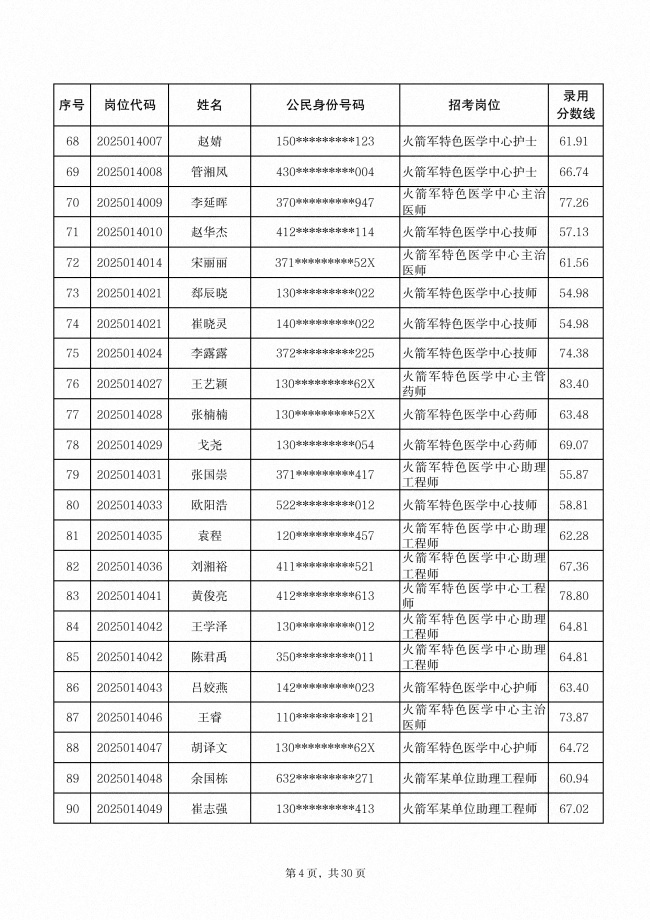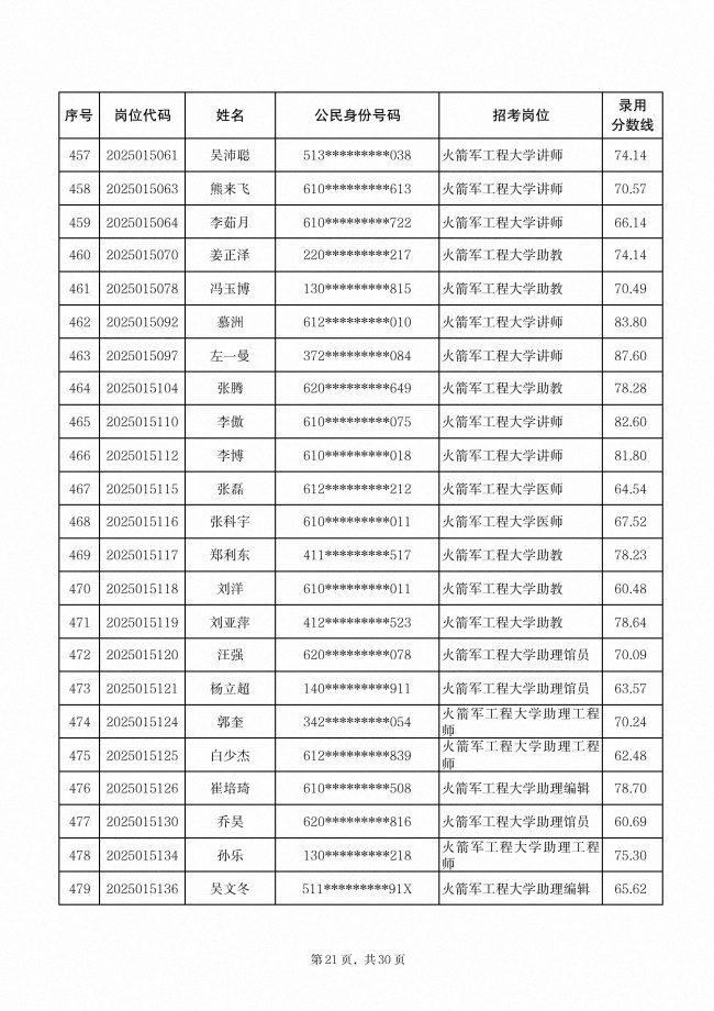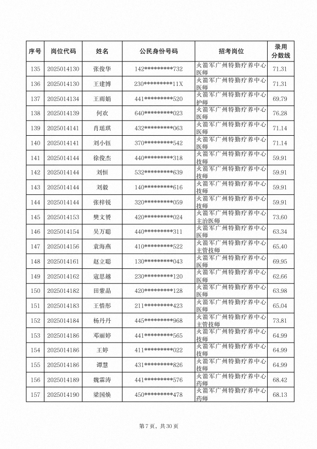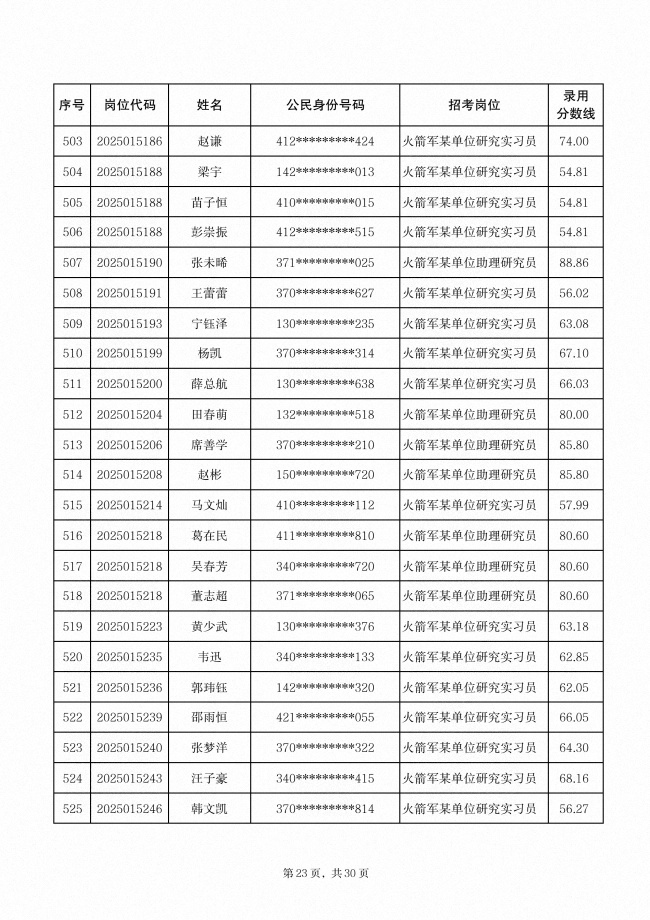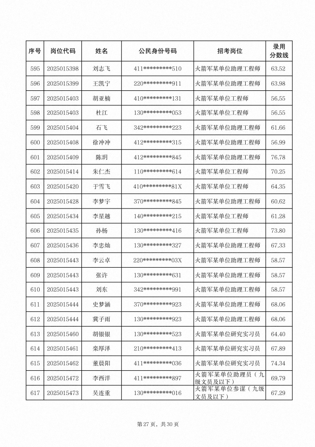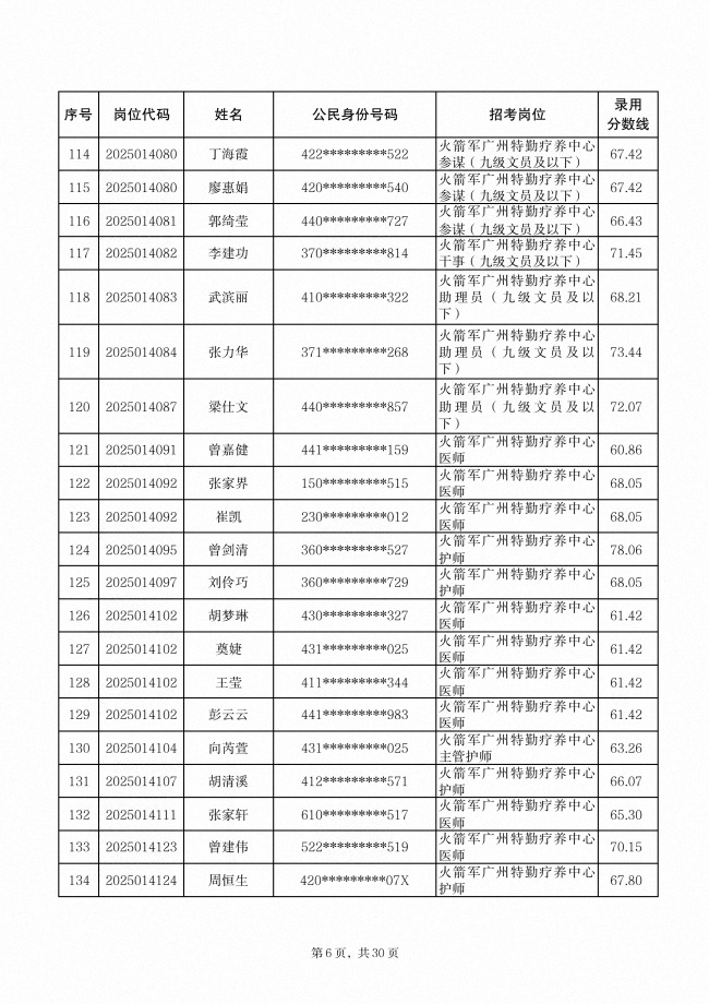 2025年武裝部文職人員擬錄用名單(含上岸分數(shù)線) 2025-10-09
