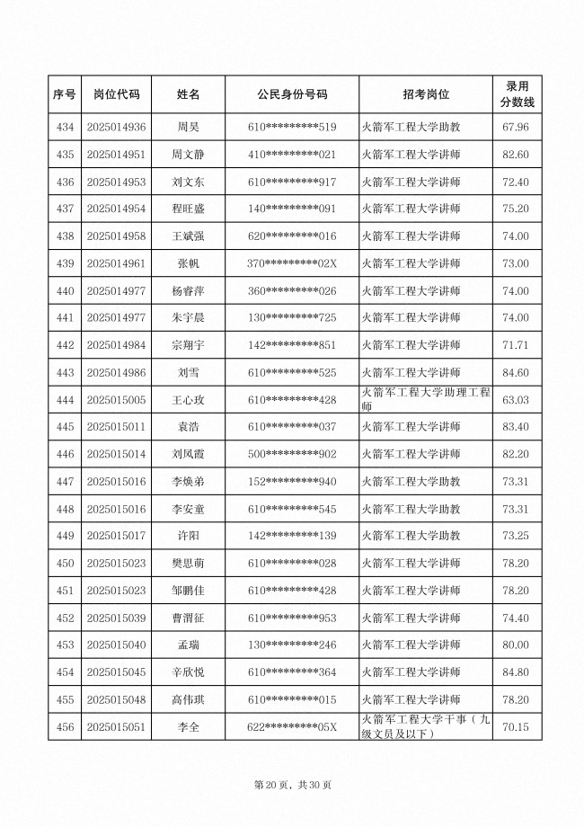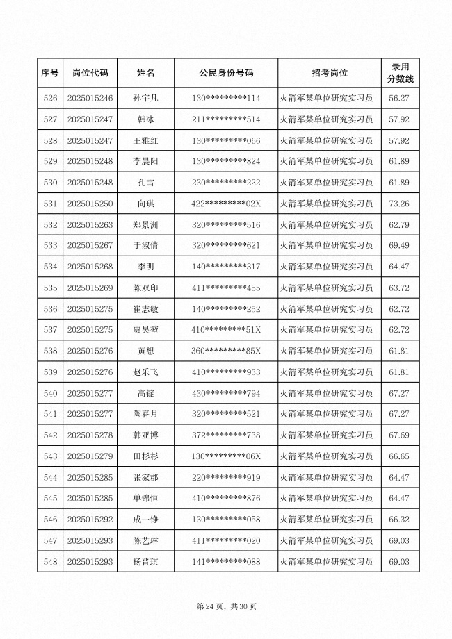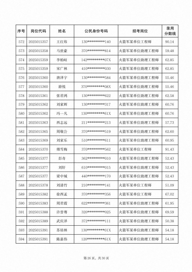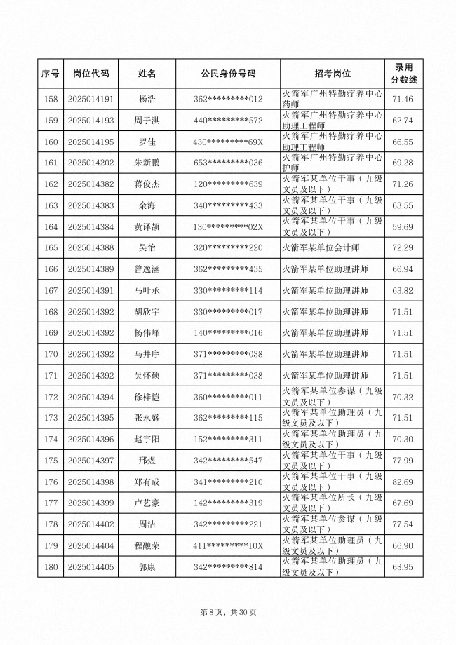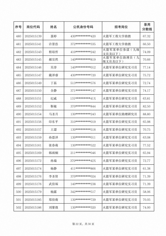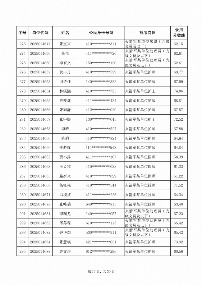 原文標題:公示火箭軍2025年公開招考文職人員第一批擬錄用對象名單