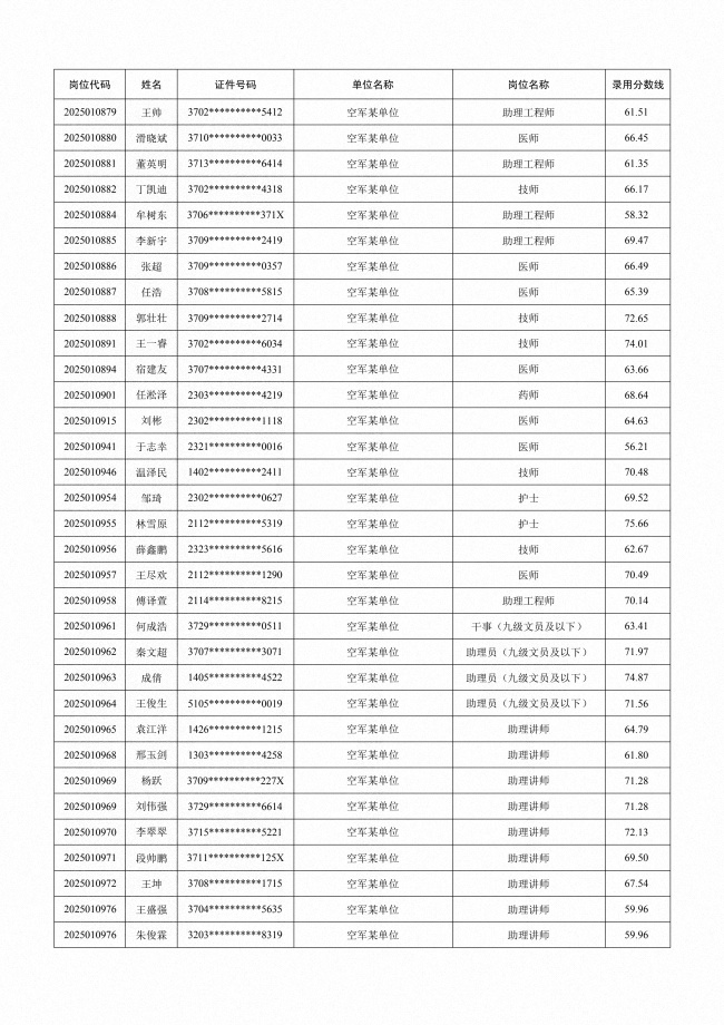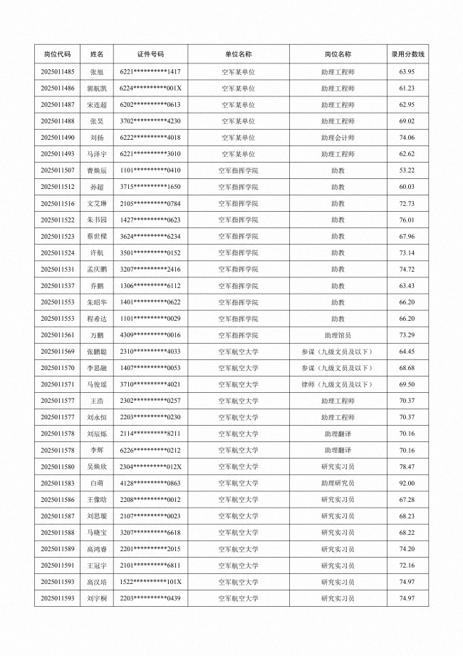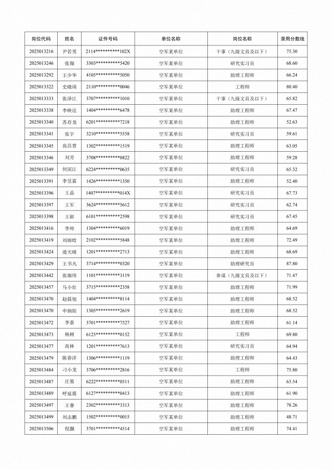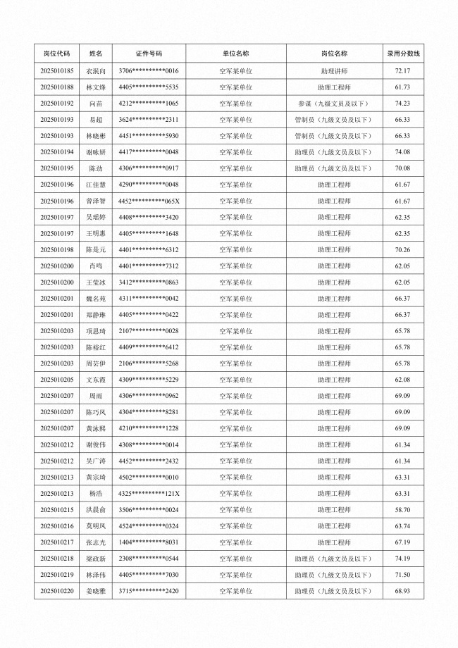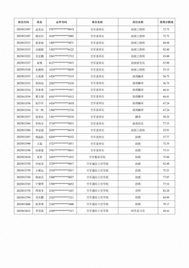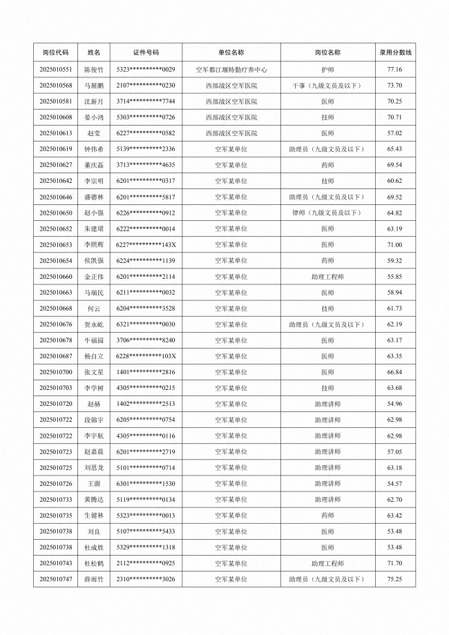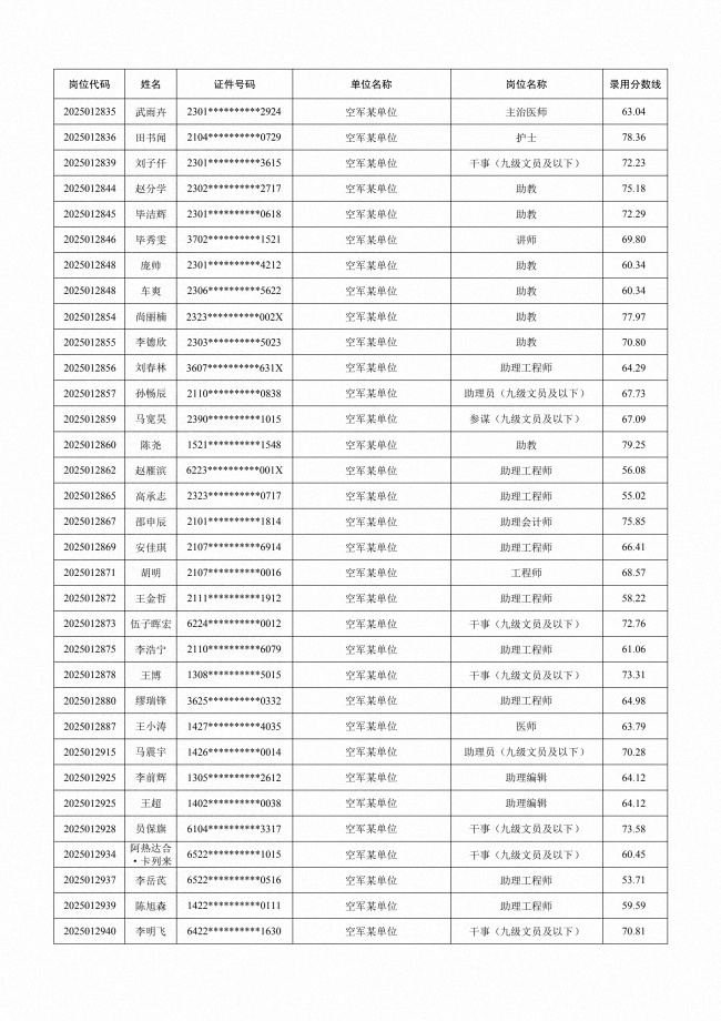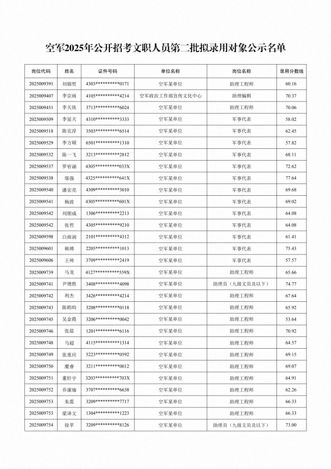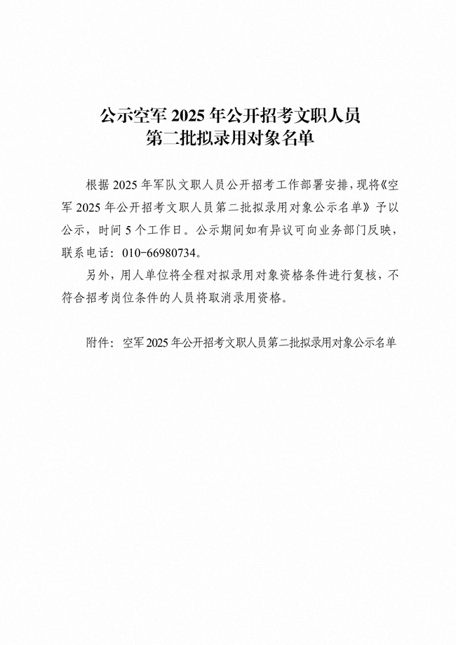 原文標題:公示空軍2025年公開招考文職人員第二批擬錄用對象名單