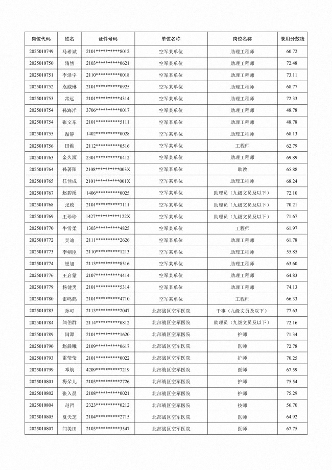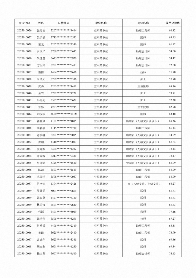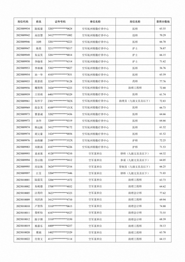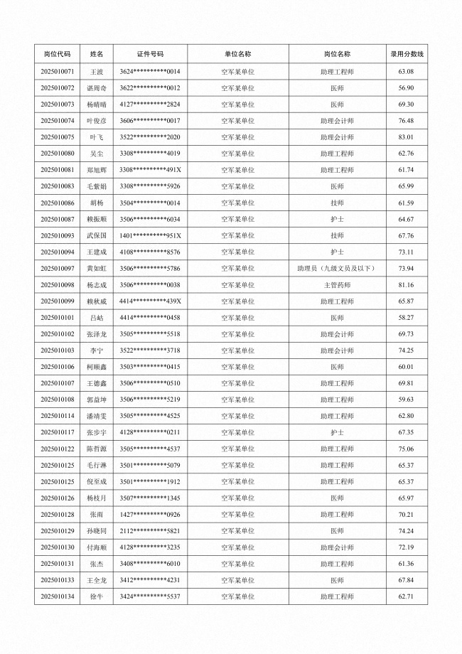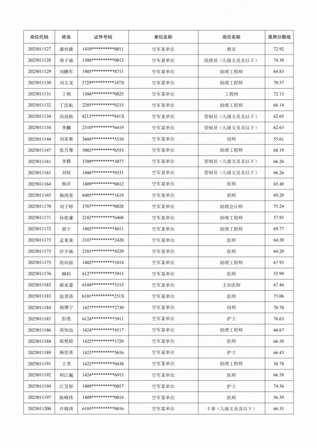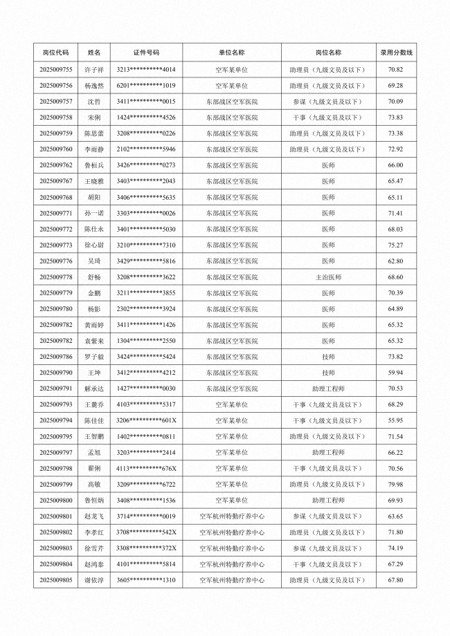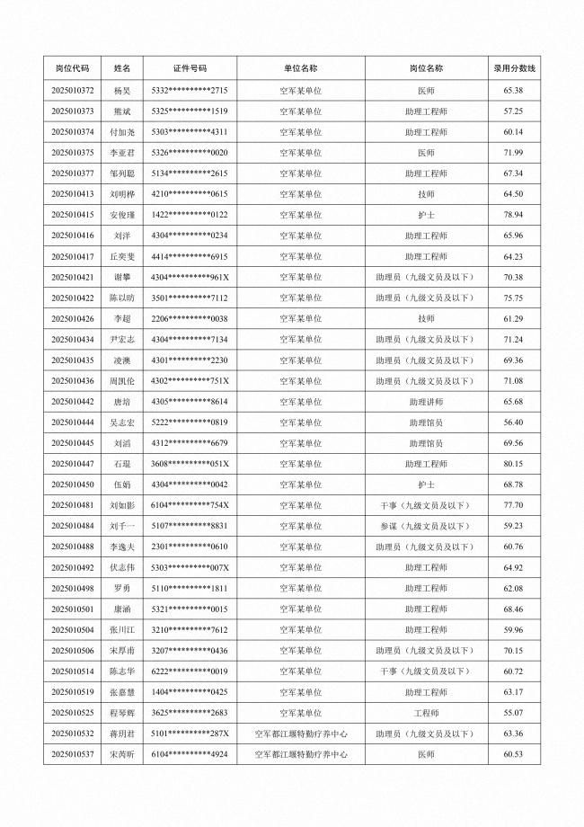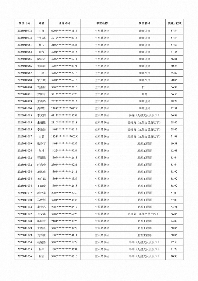 原文標題:公示空軍2025年公開招考文職人員第二批擬錄用對象名單
