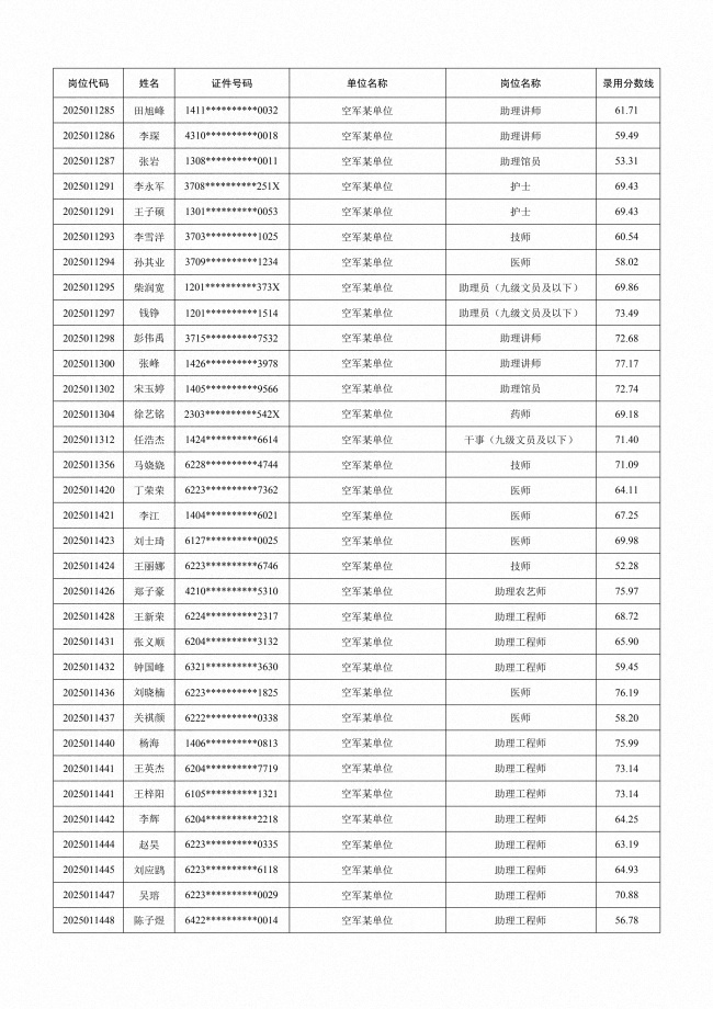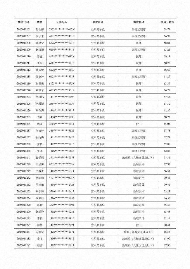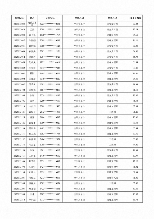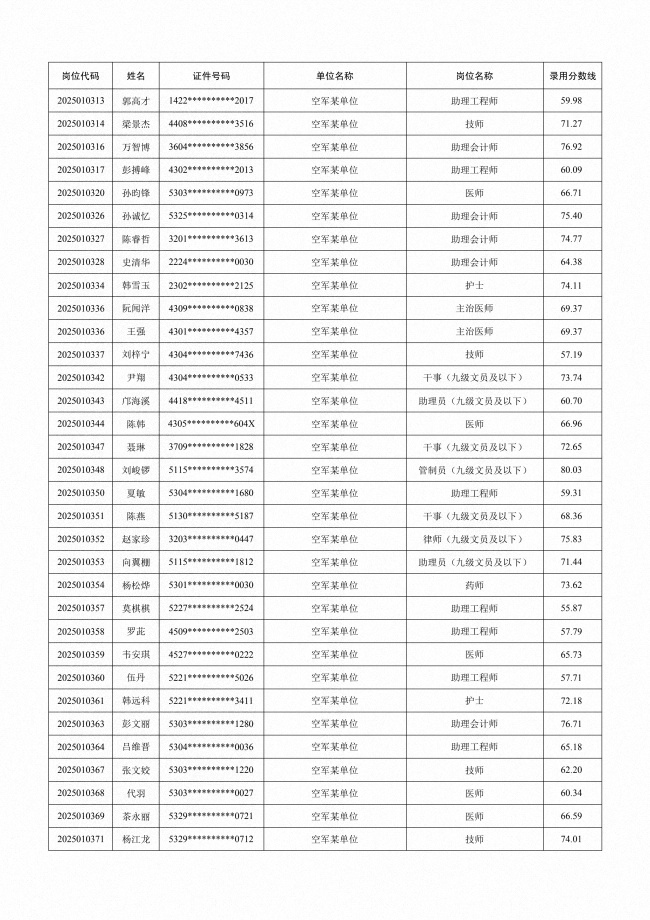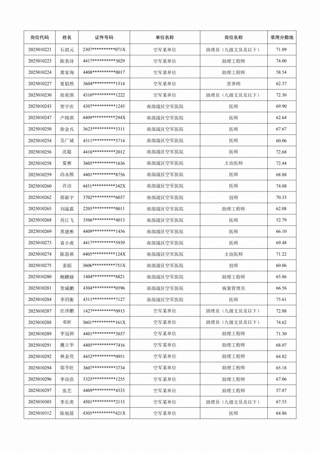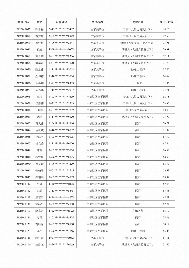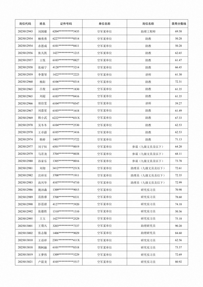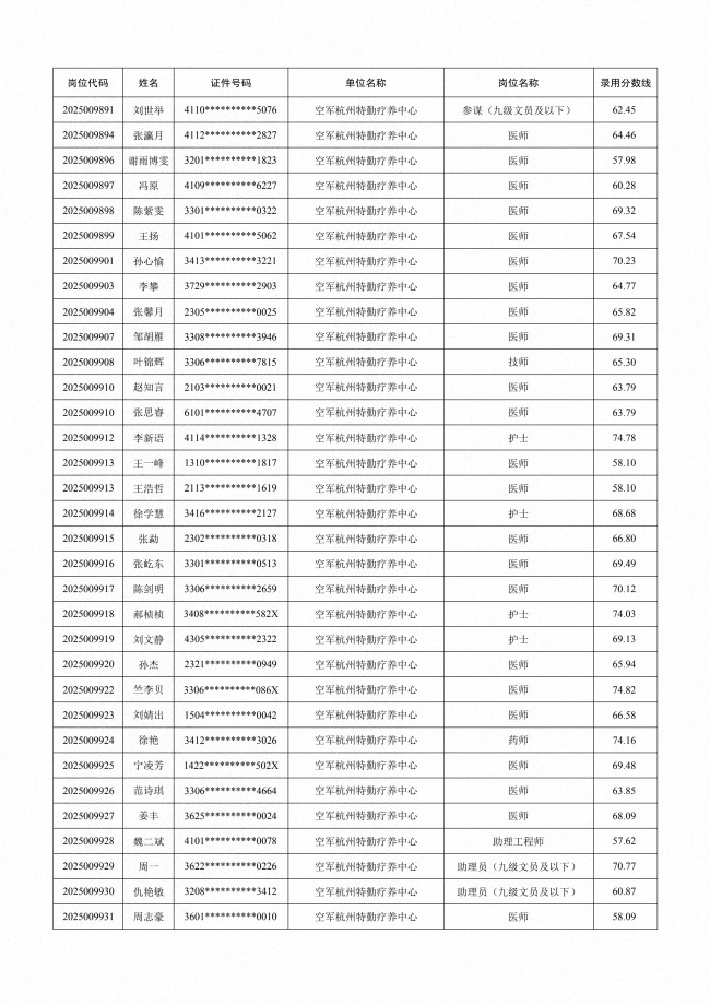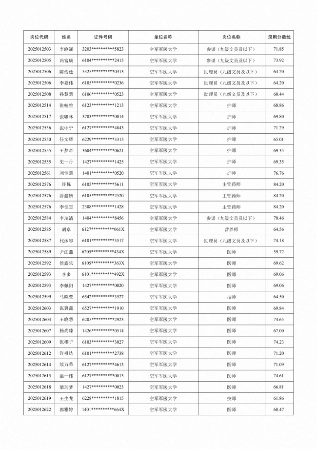 原文標題:公示空軍2025年公開招考文職人員第二批擬錄用對象名單