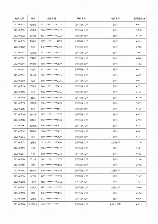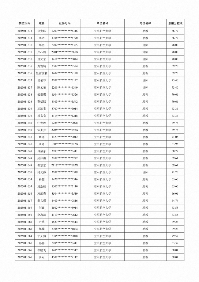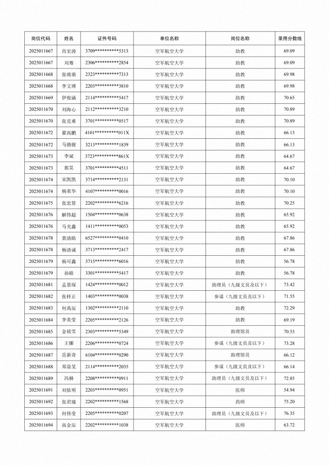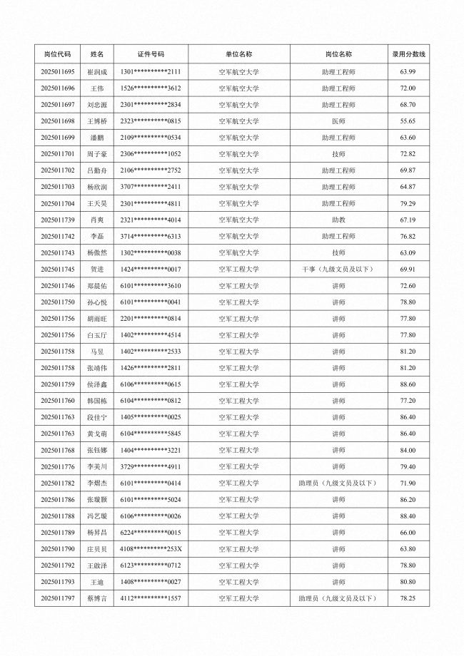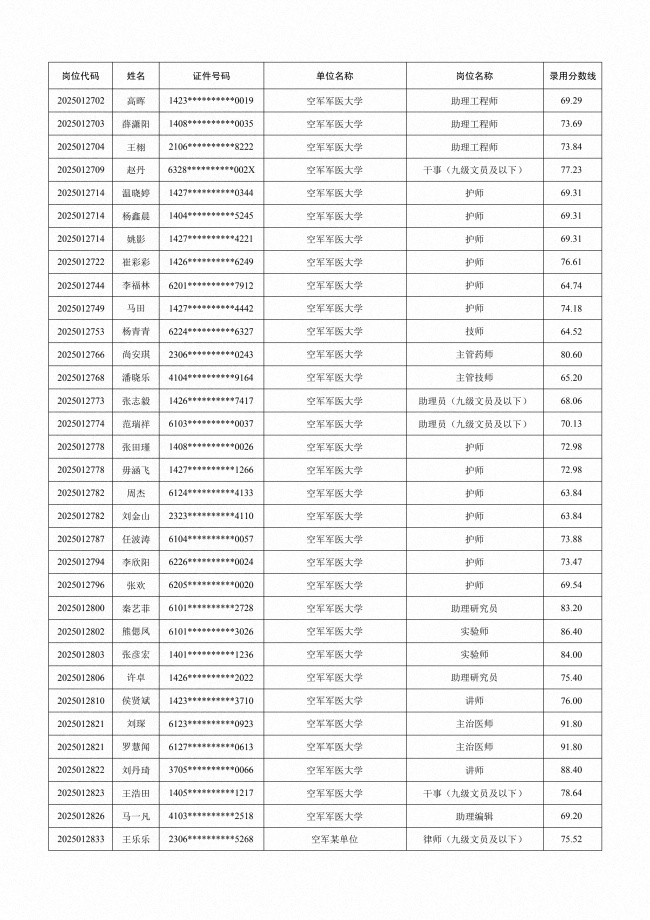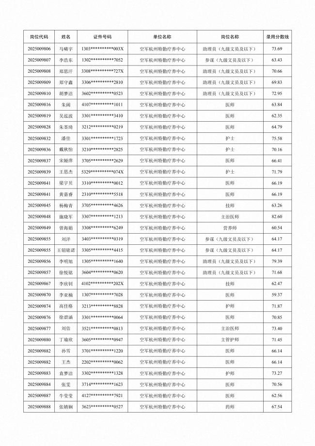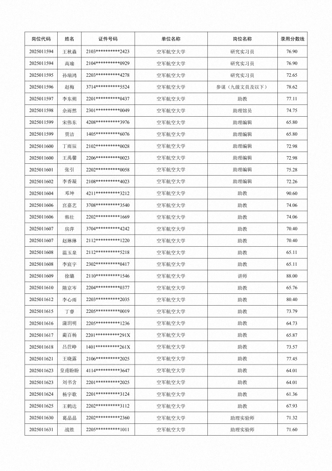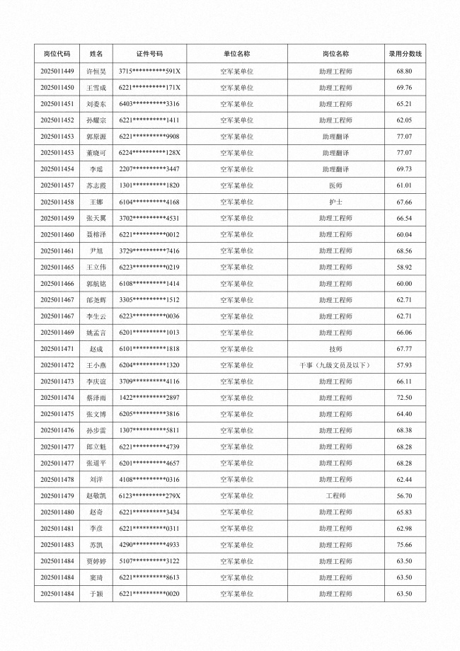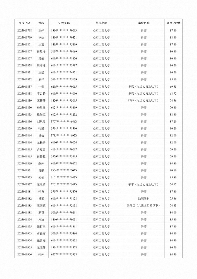 原文標題:公示空軍2025年公開招考文職人員第二批擬錄用對象名單