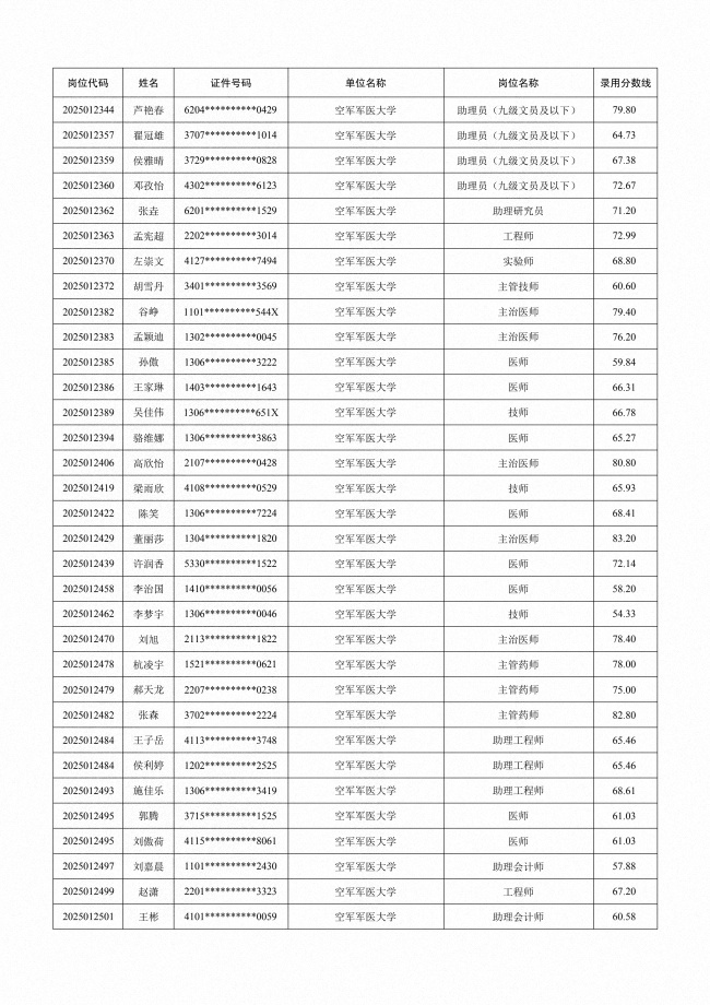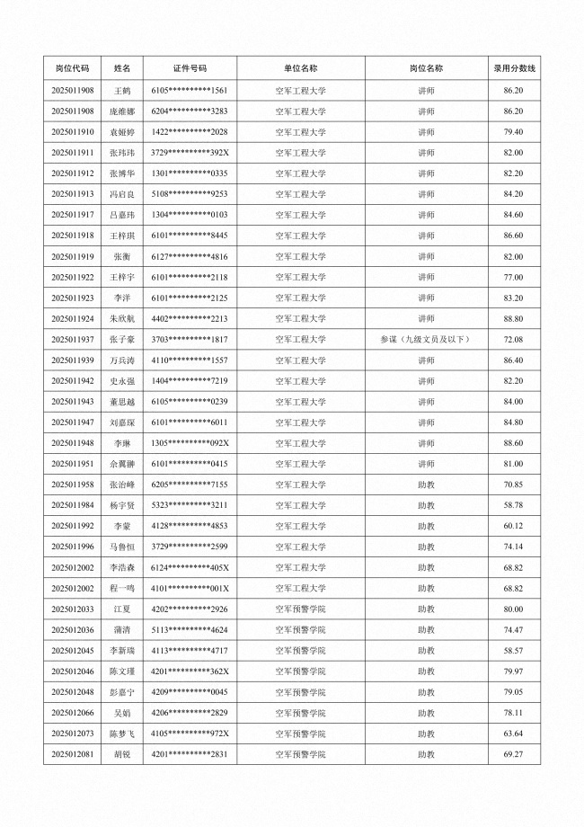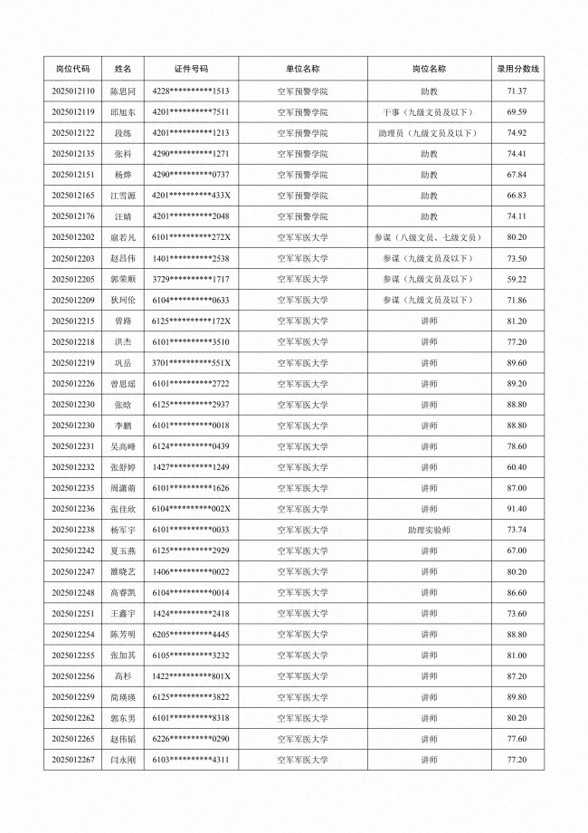 2025年武裝部文職人員擬錄用名單(含上岸分數(shù)線) 2025-10-09