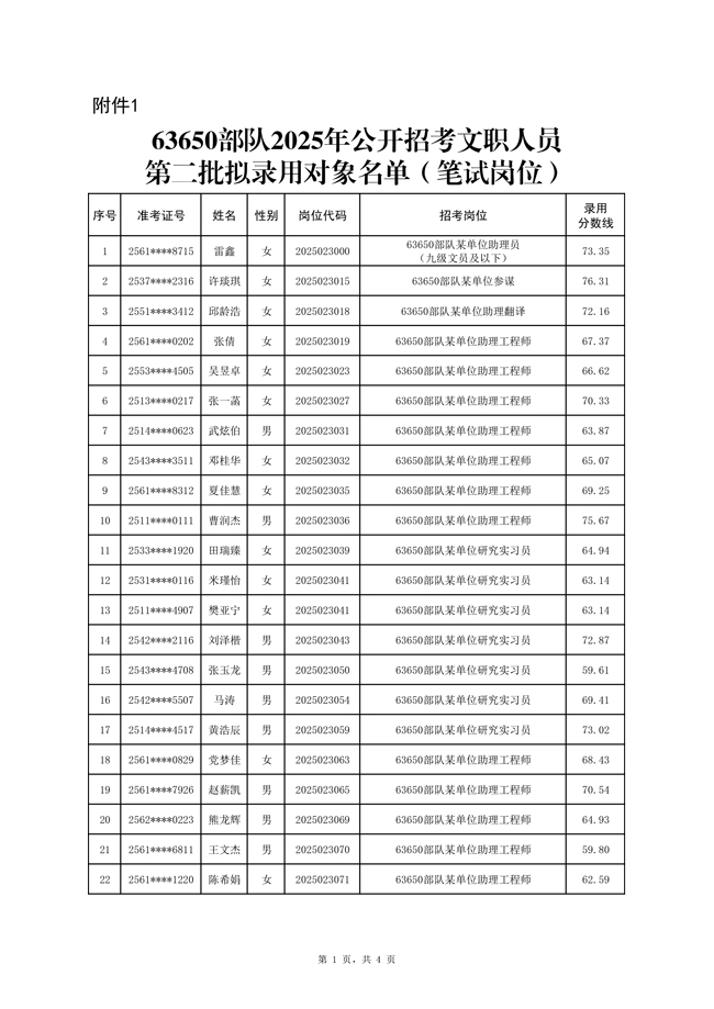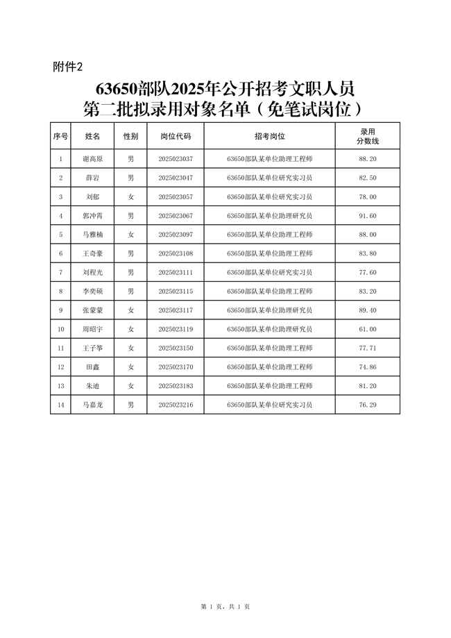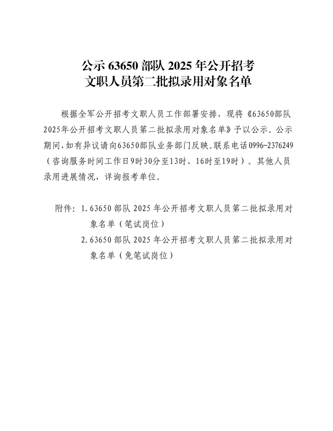 原文標(biāo)題:公示63650部隊(duì)2025年公開(kāi)招考文職人員第二批擬錄用對(duì)象名單
